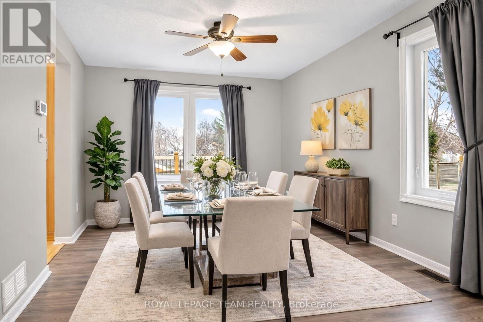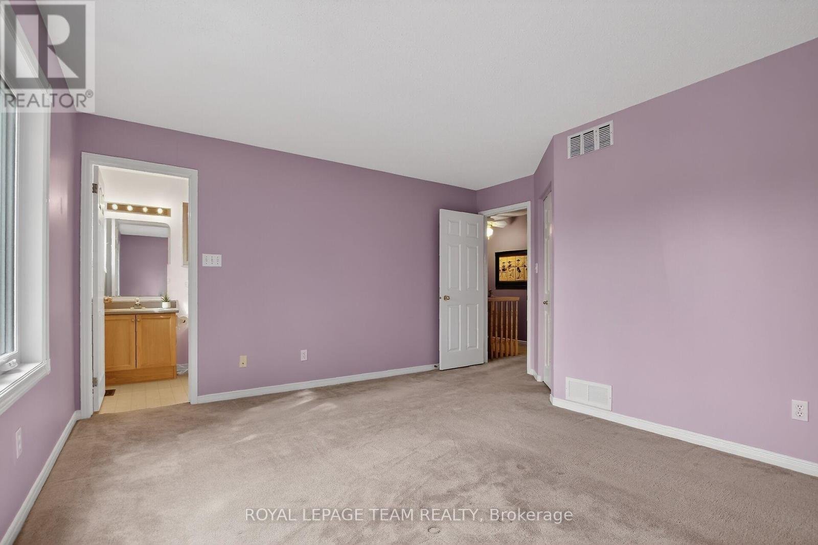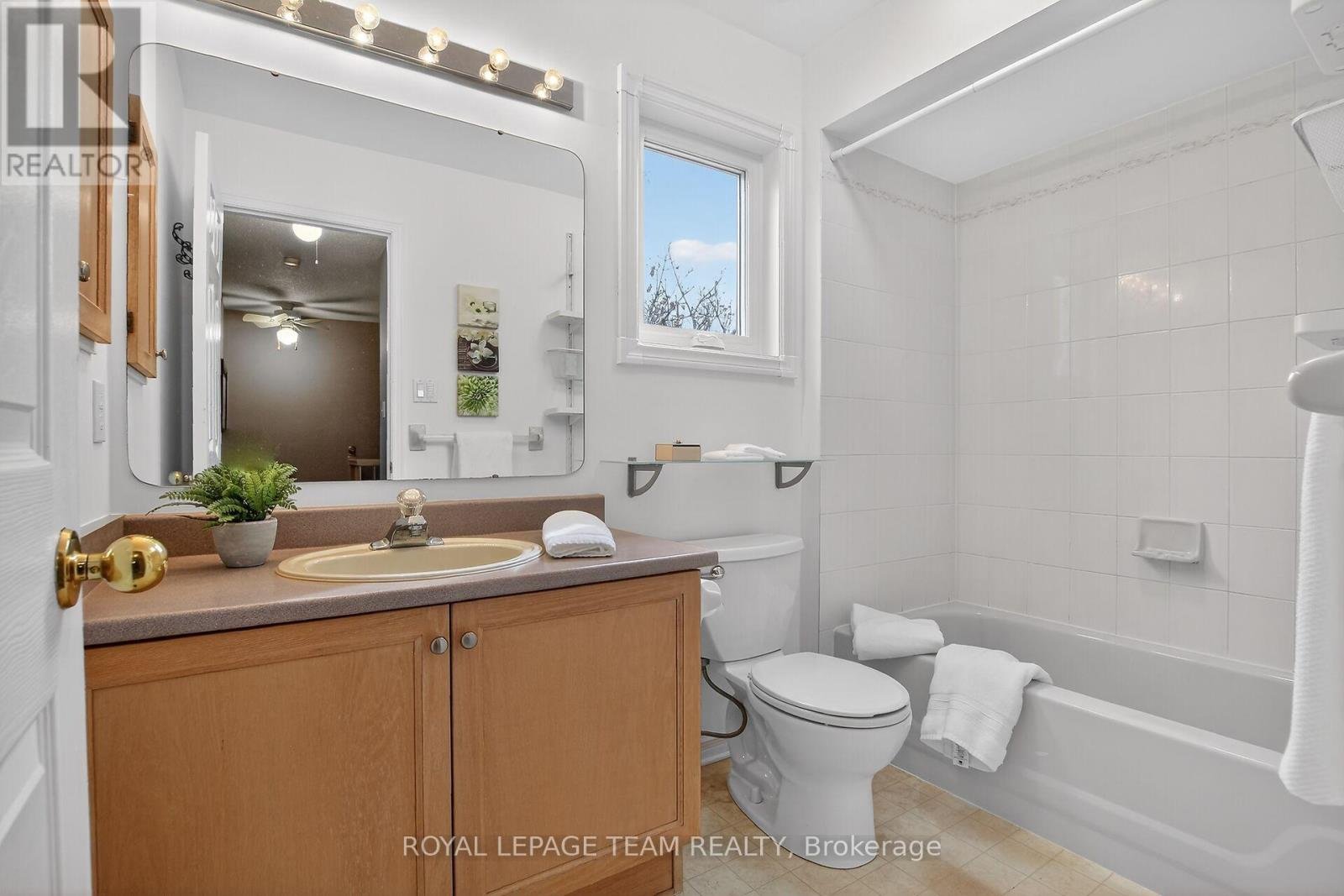 Lovely Holitzner built end unit townhome, located on a private court and on an amazing large lot with mature trees, in the central neighborhood of Katimavik. Three bedrooms, three baths, open plan living & dining room, eat-in kitchen with patio door to composite deck plus finished lower level with gas fireplace. Bonus free standing building/coach house (2022) used as an office, could also be a hobby room. Insulated, power, recessed lighting, engineered hardwood flooring (carpet tile on top).Private enlarged double driveway (4 car parking) with interlock near garage & interlock walkway to covered front porch. Tiled foyer and reception area, has a cut out with view of living room, double closet and entry to the garage is close by. Open living and dining room with updated laminate flooring and several updated windows, fantastic space for entertaining. Kitchen has many tall cabinets, tile backsplash, double stainless steel sink, updated faucet & appliances are included. Eating area in kitchen has vaulted ceiling and recessed lighting and beautiful views of yard. Patio door opens onto the composite deck, great for barbecues and relaxing. Powder room has newer vanity, sink and mirror. Second level with three good-sized bedrooms and two full baths. The primary bedroom has a big window with views of the court and a spacious walk-in closet. The ensuite bath has a vanity with sink, medicine cabinet, glass shelf and double shower with seat. Two more bedrooms with neutral decor, double closets, big windows and overhead lights. The linen closet and full bath is conveniently close by. The main bath has a combined tub and shower with tile surround and vanity with sink and medicine cabinet. Lower level with spacious family room, office area, plus a library area, laundry & utility room. Walk to many parks, schools, shops and Leisure Center. Minutes to bus on Castlefrank & convenient access to 417. Updated windows (2018), garage door & more. 24 hours irrevocable on all offers.