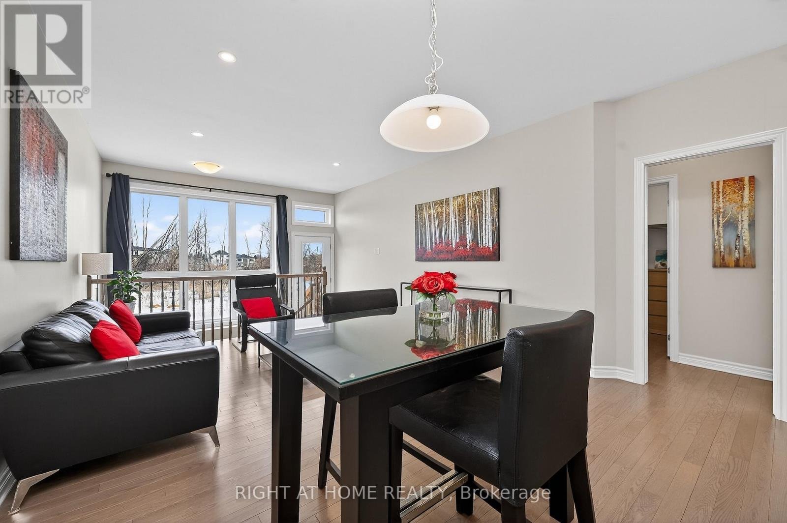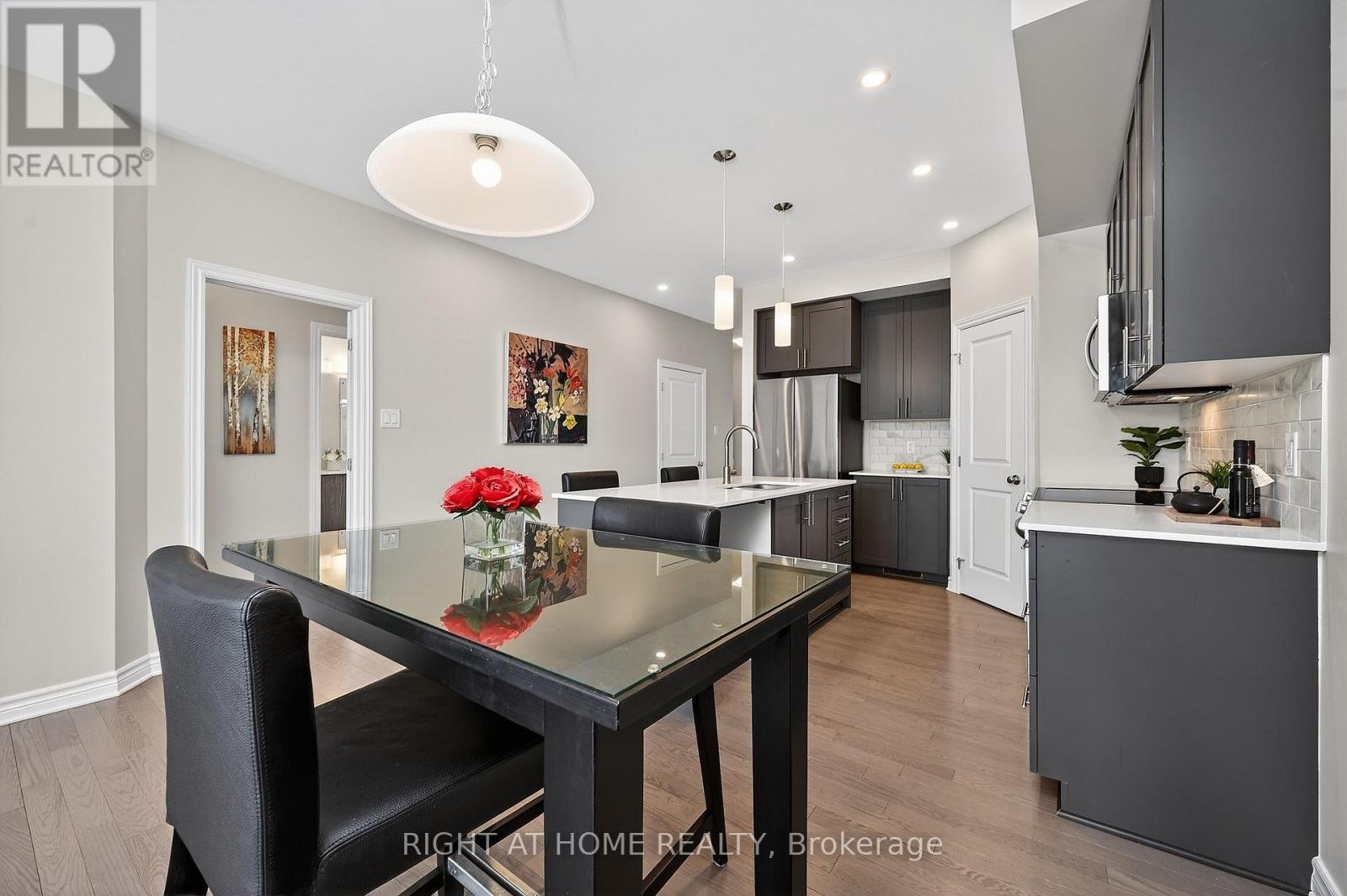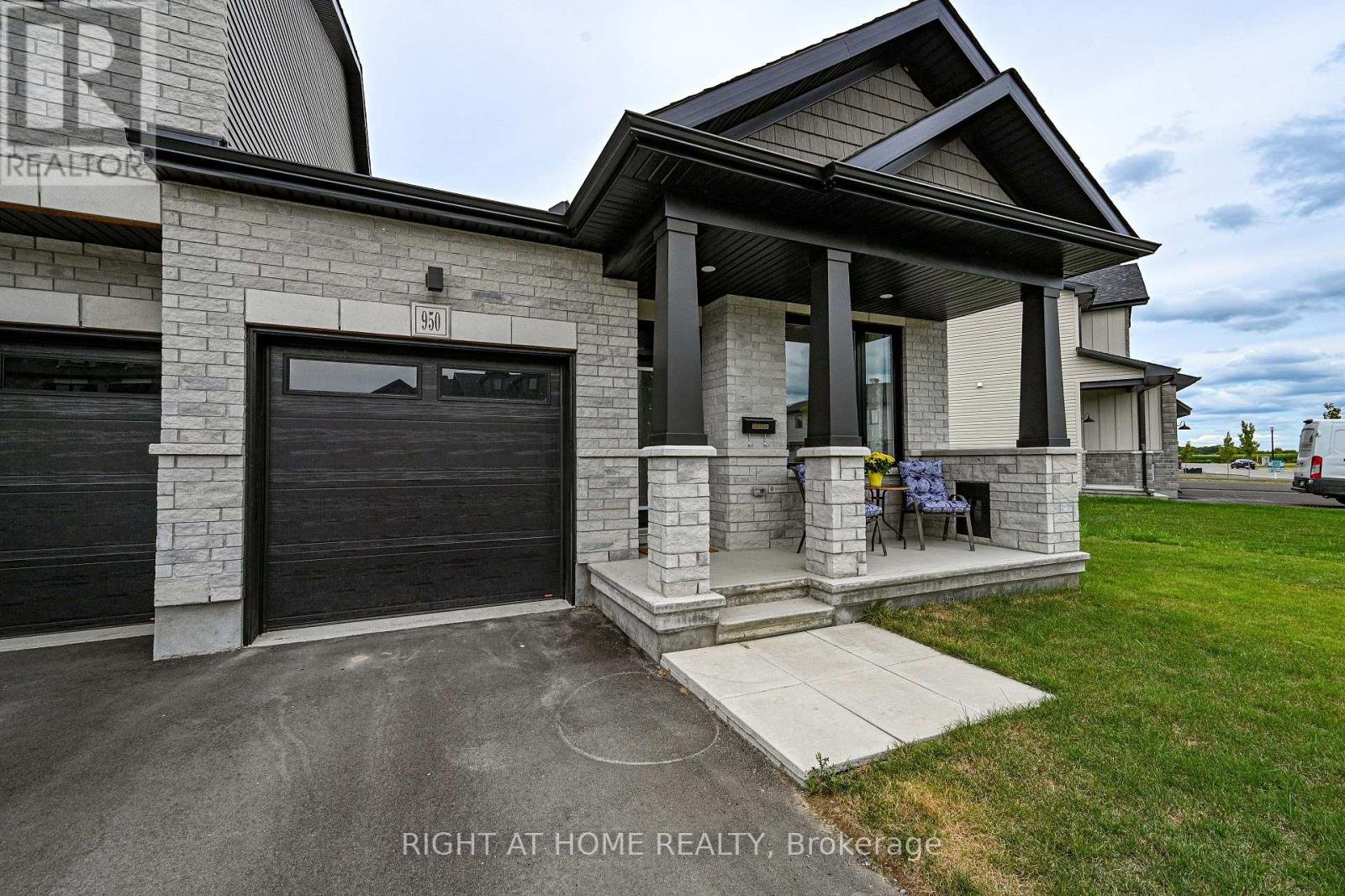 Welcome to 950 Cologne Street, bungalow living without the big bungalow price tag! This stunning end unit bungalow town provides privacy with only 1 attached neighbour and no rear neighbours, and a beautiful natural ravine setting in the backdrop. The welcoming front covered porch provides a great space to sit, relax, and take in the tranquil rural neighbourhood setting. Make your way inside to discover a spacious tiled sunken foyer. One of the bedrooms with beautiful hardwood flooring is off the foyer area, and next to a 4 piece full bathroom with window and large vanity. There is direct access to the attached garage, convenient main floor laundry, and the room unfolds into an open concept kitchen/dining/great room. The main floor offers upgraded oak engineered hardwood flooring throughout both bedrooms, the hallway, great room and kitchen. The modern kitchen has quartz counters, island breakfast bar, an abundance of cupboards with soft close drawers, and the sought after corner pantry! The Great room floods with natural light from the large picturesque windows looking into the yard and beyond. The good sized main floor primary bedroom comes with a 5 piece ensuite with walk-in shower, a soaker tub, dual sinks, window for daylight, and enjoy the spaciousness of the walk-in closet. As you make your way down the bright basement stairwell flooded with natural light, you are presented with an expansive and cozy carpeted family room with a modern gas fireplace. There is a great storage space under the stairs that comes enclosed by a door and handy light. The unfinished portion of the basement with bathroom rough-in offers a large amount of potential living space and is just waiting on your personal touch! Close to parks, schools, recreational facilities. This home has over $18,000 in upgrades from the base model. Several rooms come with cable channels to avoid those dangling cables! Taxes and measurements approximate and may not factor in jogs or angled walls.