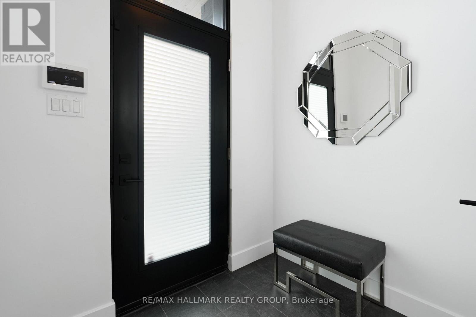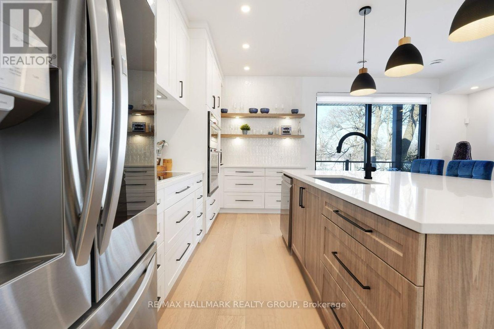 This exceptional 4-bedroom, 4-bathroom luxury residence with UNOBSTRUCTED OTTAWA RIVER VIEWS, and backing onto protected NCC parkland. Built in 2023 and R2000-certified, this exceptional home offers privacy, sweeping views of the Ottawa River and Gatineau Hills, and direct access to scenic riverfront pathways ideal for kayaking, cycling, running, and cross-country skiing. Striking architecture custom designed & curated finishes define the three-level layout. The open-concept main floor features a dramatic three-sided gas fireplace connecting the expansive living and dining areas, ideal for entertaining. The chef's kitchen with restaurant grade appliances (all stainless steel) also showcases a 5' x 8' quartz island, custom cabinetry blending sleek modern design with warm wood accents. Adjacent to the kitchen is the terrace for summer dining alfresco. The main level also has a convenient powder room with floating vanity and designer wave tile detailing. Upstairs, the serene primary suite offers breathtaking Gatineau Hills views and a spa-inspired ensuite with double glass steam shower, freestanding soaker tub, dual vanity (2 sinks), and superbly finished in imported porcelain tile. Two additional bedrooms share a beautifully appointed bathroom with custom neutral imported tile finishes, this level also has a well-designed laundry room featuring full-size appliances, folding counter + and hanging space. The rooftop terrace provides a private retreat with hot tub, sitting area, gas firepit surrounded by a glass railing so as not to obstruct the wonderful view of the westerly sunset. The walk-out lower level includes a 4th bedroom, full bath, and a generous media room with terrace doors to the patio + a fenced garden, and private gate to NCC parkland. Don't forget storage as this home has a full basement for storage. The garage is generous and has a seperate storage room for additional storage. A truly rare riverside offering.
