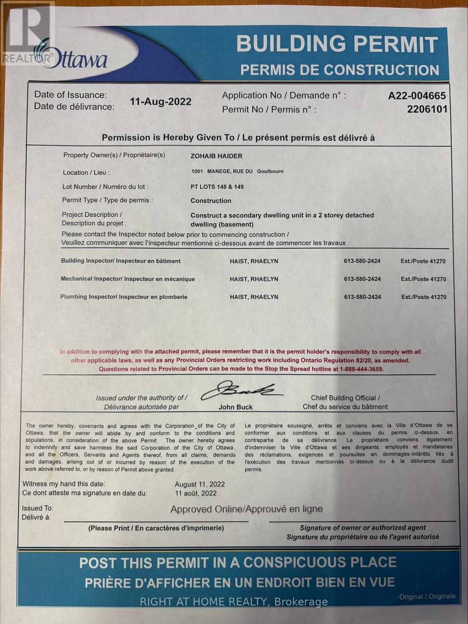 Meticulously maintained and beautifully presented, this 4-bedroom, 3-bathroom home with a double-car garage sits on a premium corner lot in the highly desirable community of Stittsville South. Thoughtfully designed for modern living, this impressive residence offers the perfect blend of comfort, style, and functionality, with a city-approved secondary dwelling unit permit for the basement. The home features four generously sized bedrooms on the upper level, a main-floor office, and a bright breakfast nook off the kitchen, creating distinct yet seamlessly connected living spaces ideal for both everyday life and entertaining. The main floor is enhanced with rich hardwood flooring and oversized windows, allowing natural light to fill the home and create a warm, welcoming atmosphere. At the heart of the home is the beautifully appointed kitchen, complete with quartz countertops, stainless steel appliances, abundant cabinetry, and a well-designed layout that flows effortlessly into the dining and living areas. Upstairs, the spacious primary suite offers a peaceful retreat, featuring a walk-in closet and a luxurious five-piece en-suite with a double vanity, glass shower, and relaxing soaker tub. Three additional bedrooms provide plenty of room for family or guests, while the convenient second-floor laundry room adds everyday practicality. A major highlight of this property is the approved permit for a secondary dwelling unit in the basement, including plans for a self-contained unit with its own living space, kitchen, bedroom, bathroom, and separate entrance configuration, offering excellent potential for rental income, multi-generational living, or future investment value. Located just minutes from parks, schools, shopping, transit, and major commuter routes, this home offers the perfect balance of peaceful suburban living and convenient access to everything Stittsville has to offer. Don't miss this rare opportunity to own a home with an approved 2nd dwelling basement.