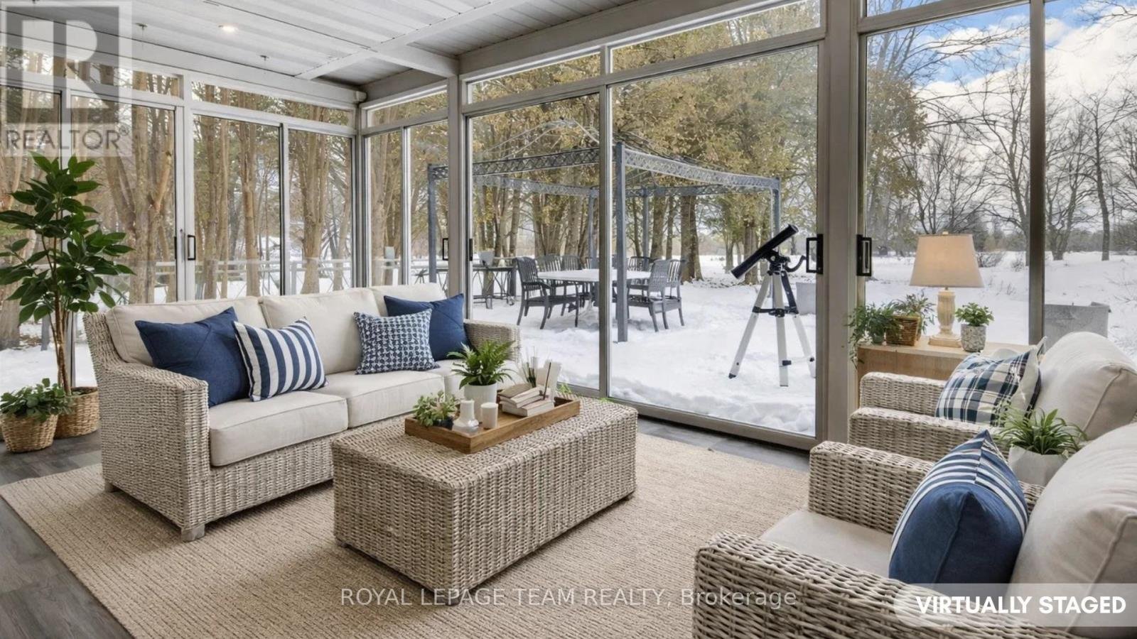 LOCATION, GOLF & LIFESTYLE. Completely renovated & elevated to a whole new level , Gorgeous vaulted ceilings & open concept this stunning 2+2 bedrooms, 3 ensuites 2 are cheaters. This beautifully renovated bungalow sits in one of the area's most coveted settings. With no front or rear neighbours, the home backs onto the first hole of the Carleton Golf Club and fronts onto a picturesque stretch of the Rideau River.Move right into this like-new home and add your own personal touches. Designed with space and comfort in mind, it offers a bright, spacious living room anchored by a striking stone wood fireplace attached to main floor is a spacious Sunroom to enjoy those summer evenings in outdoor setting. The primary suite is a true retreat with a beautiful ensuite & an impressive walk-in closet. A second main-floor bedroom features a convenient cheater bath.Enjoy the three-season sunroom, plus a large fully finished basement with a full bathroom and two additional bedrooms both featuring oversized windows & bonus family rooms. additional updates since 2015 include: R50 attic insulation, 200-amp electrical panel, air conditioning, two sump pumps with marine battery backup, & full basement foundation waterproofing..