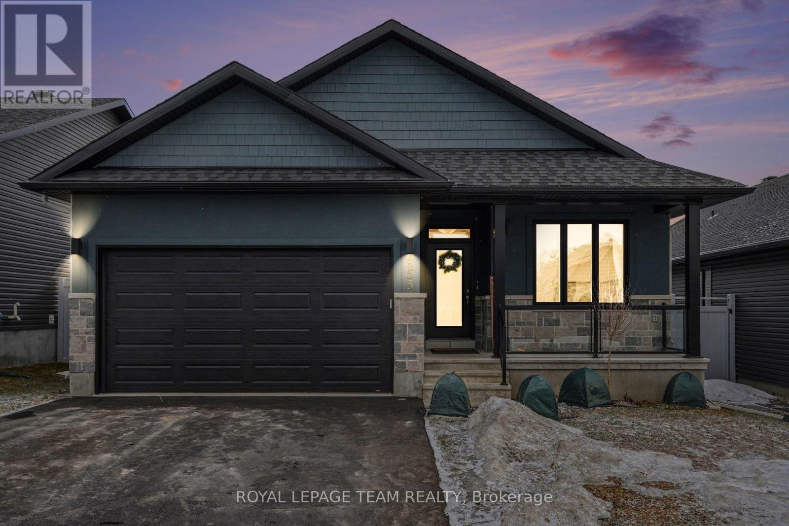Stunning 5-year-old bungalow in the highly sought-after Almonte area, perfectly blending small-town charm with modern luxury. This bright 2+1 bedroom home features an expansive open-concept kitchen, living, and dining area highlighted by dramatic vaulted ceilings and a custom-built fireplace. The kitchen boasts a large walk-in pantry, ideal for organization. Step out from the main level onto a brand-new deck, perfect for outdoor entertaining. The fully finished basement is a versatile retreat, offering a huge recreation space, a dedicated workshop for hobbyists, and two substantial storage rooms. With three full bathrooms and a double garage ( total parking for six cars with the driveway) this home is as functional as it is beautiful. Enjoy being minutes from Almonte's vibrant amenities and charm. A move- in ready must-see home.