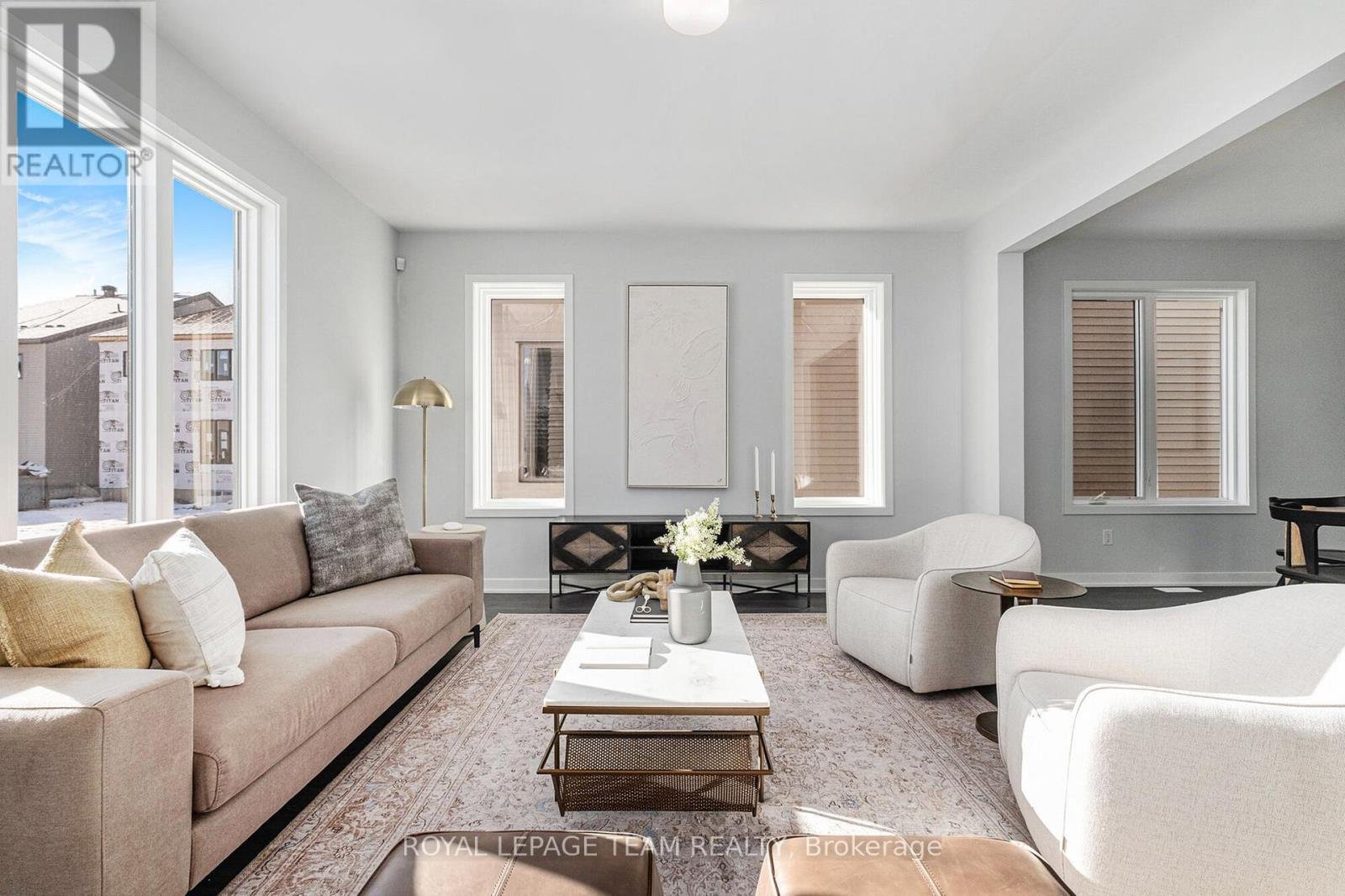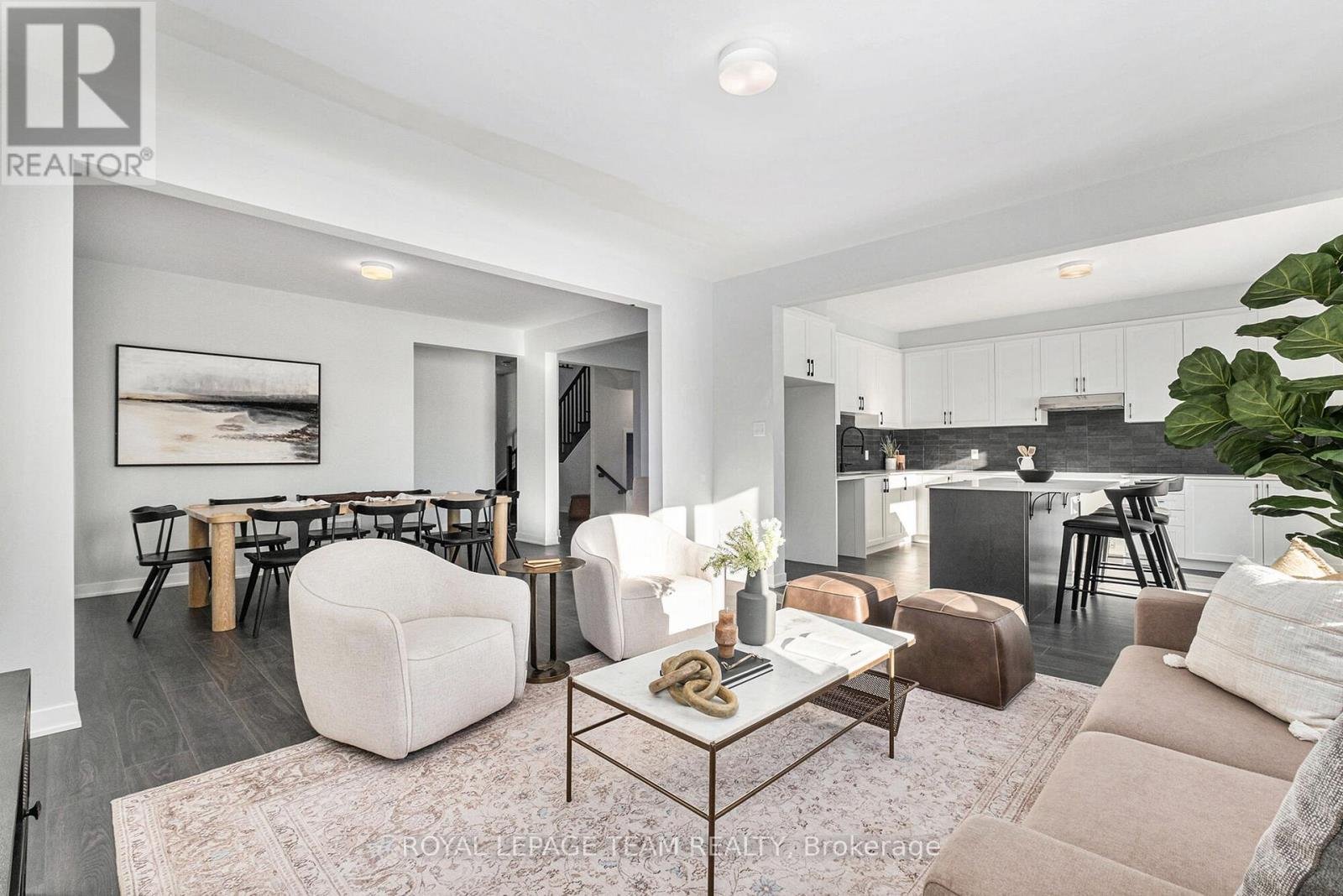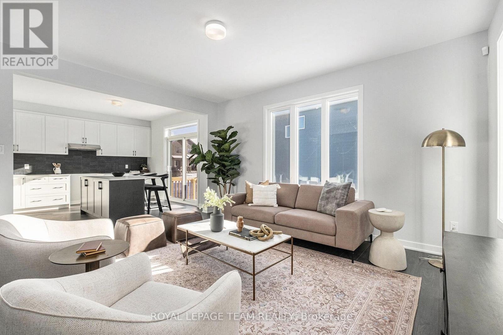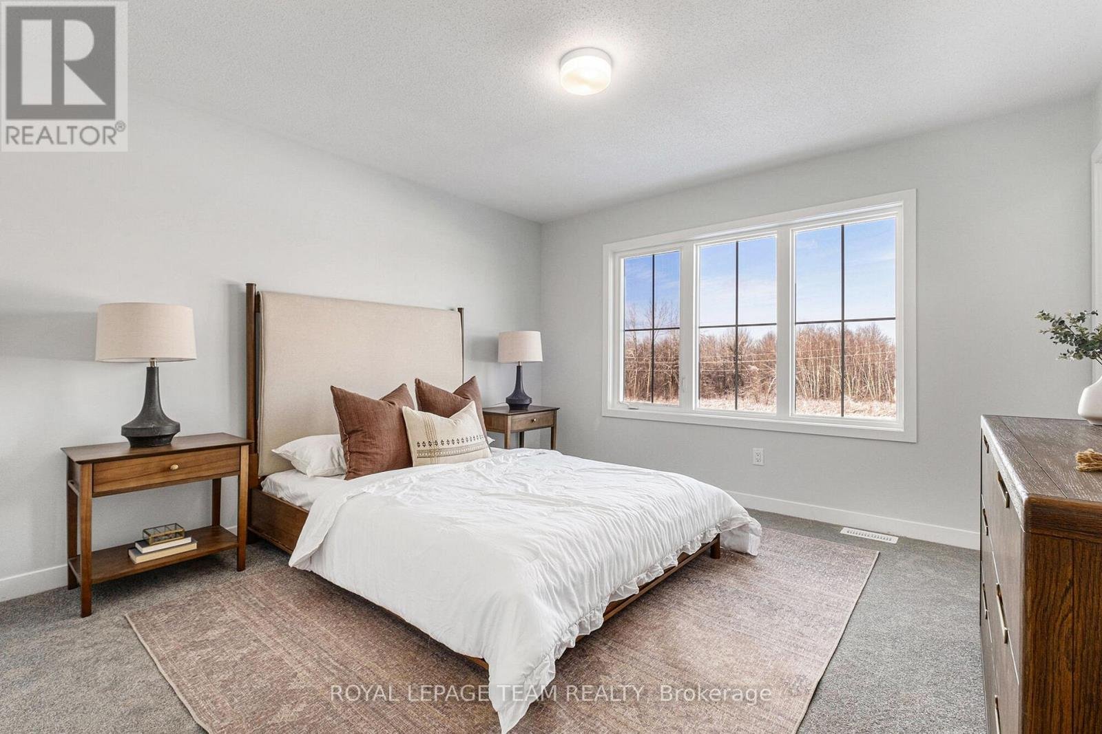 Welcome to the stunning Radiant Model in the heart of Oxford Village in Kemptville. This beautiful new-build two-storey home offers 2,542 sq. ft. of thoughtfully designed living space, featuring 4 bedrooms, 2.5 bathrooms, and a double-car garage. Step inside to a welcoming foyer complete with a convenient closet and powder room. Just down the hall, you'll find a practical mudroom with walkout access to the garage and a spacious walk-in closet, perfect for keeping everyday essentials organized. The main floor also features a charming and cozy den, ideal for a home office or quiet retreat. The home opens up into a beautifully designed open-concept living space, where the large dining room flows seamlessly into the expansive great room, creating an inviting atmosphere perfect for entertaining. The chef-inspired kitchen is the centerpiece, showcasing floor-to-ceiling cabinetry, quartz countertops, a ceramic backsplash, and a generous breakfast bar. Patio doors lead directly to the backyard, making al fresco dining and outdoor gatherings effortless. Upstairs, the spacious primary bedroom offers a private retreat complete with a large ensuite bathroom and walk-in closet. A second bedroom with a walk-in closet is conveniently located near the laundry room, along with two additional generously sized bedrooms. The second floor also boasts a large loft area, perfect for a reading nook or home office, along with a good size family bathroom. The finished basement features a spacious recreation area, ideal for movie nights, games, or a home gym. Plumbing is already rough-in for a future three-piece bathroom, offering excellent potential to customize the space to your needs. This exceptional home combines modern design, functional living spaces, and everyday comfort, the perfect place to call home. BONUS: $30,000 Design Credit! Buyers still have time to choose colours and upgrades, making it a standout living experience. Photos provided are to showcase builder finishes only.