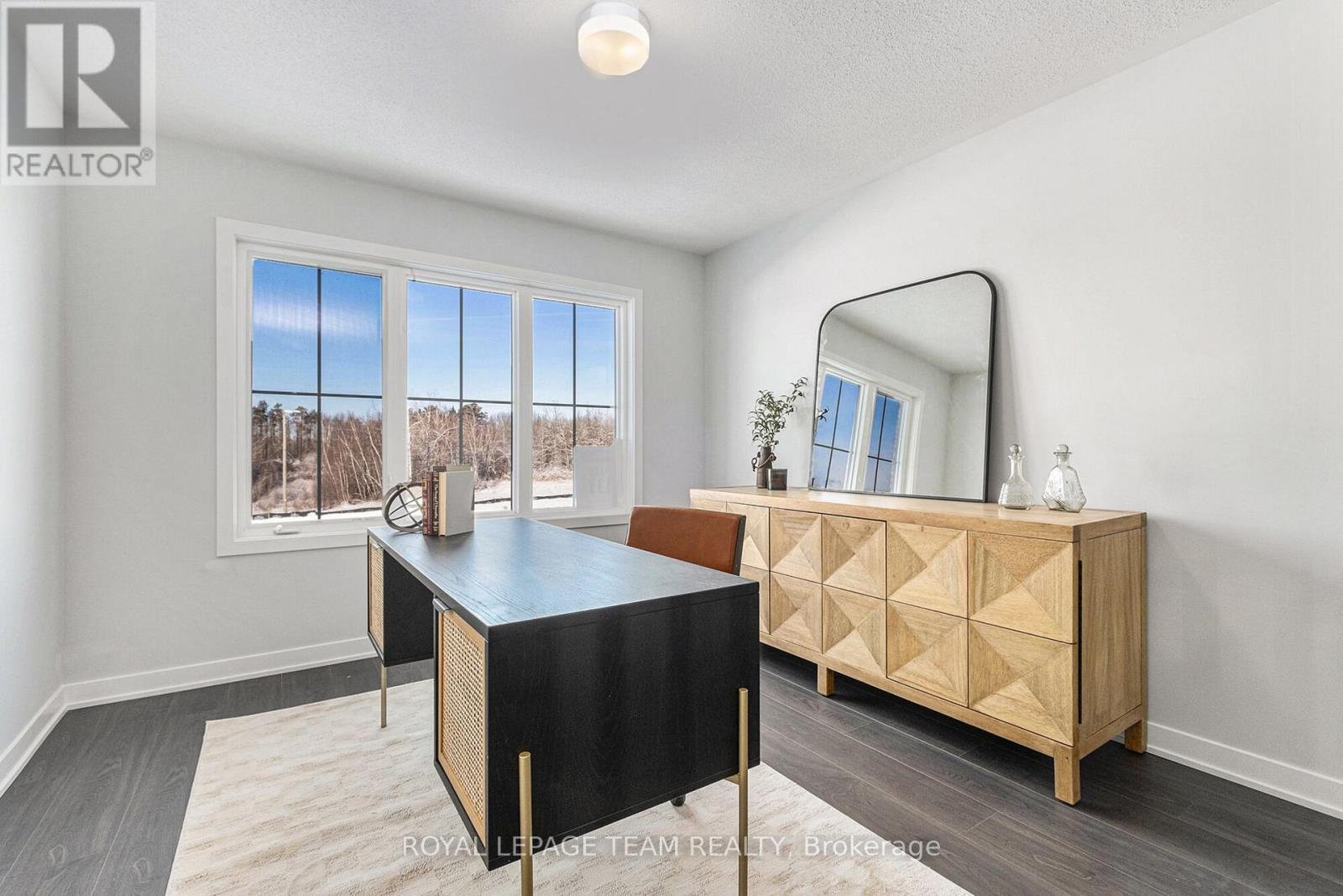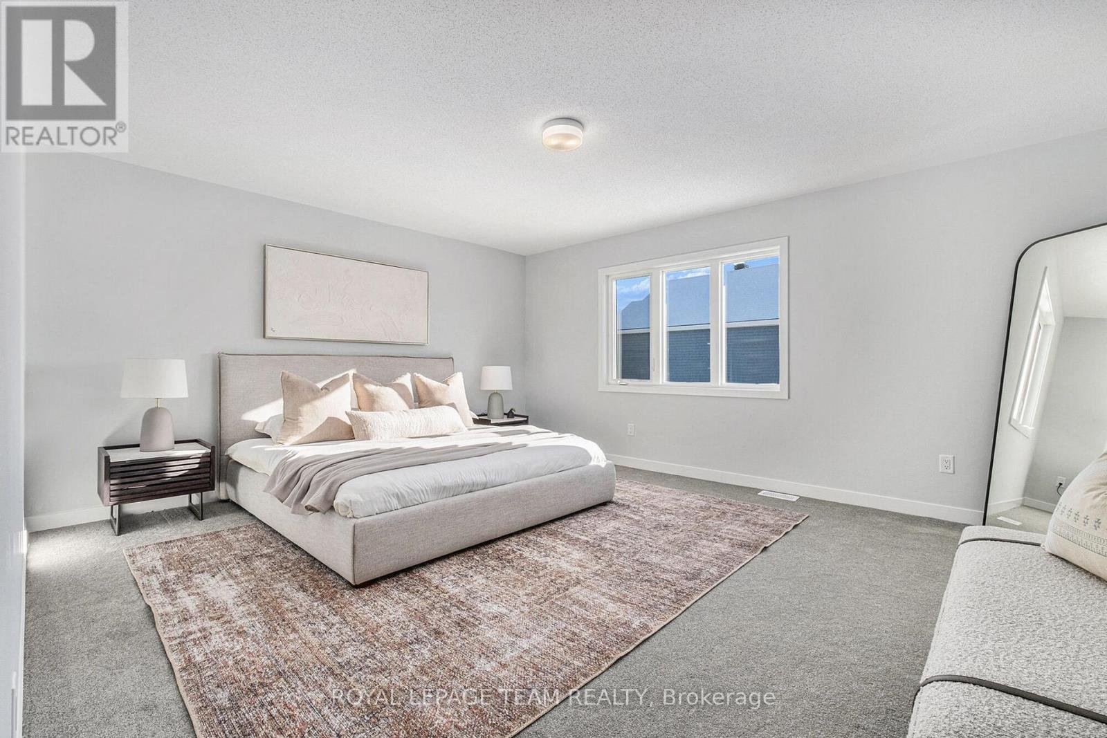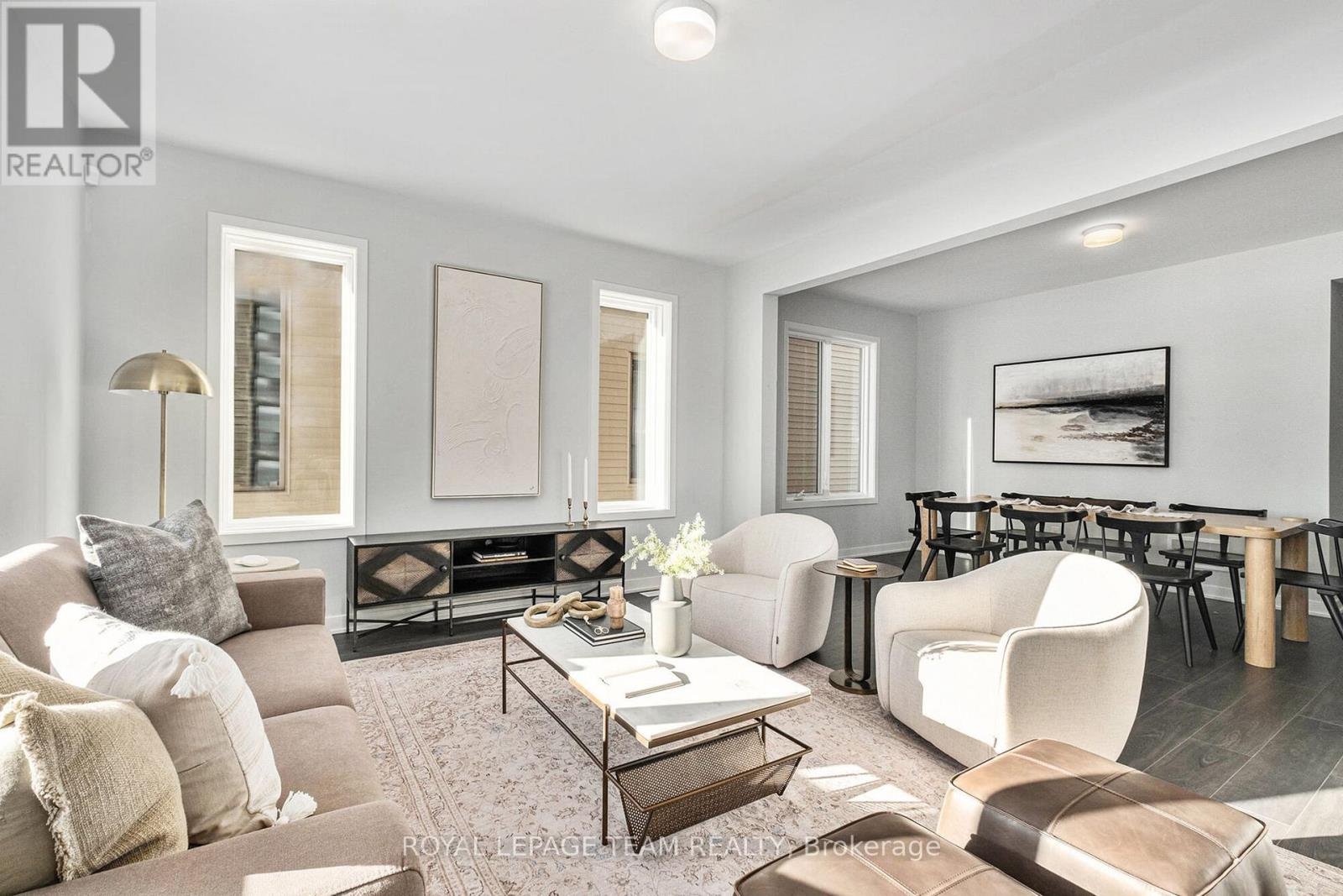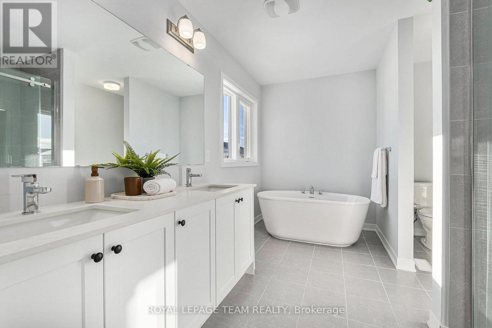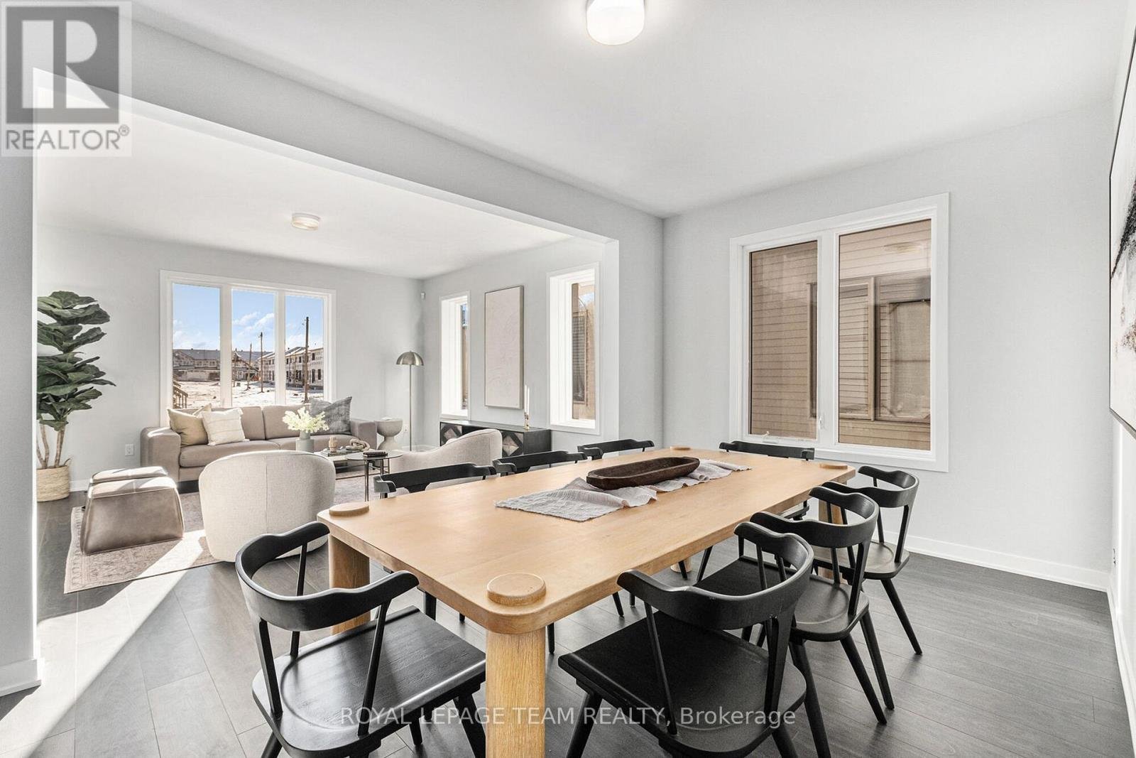 Welcome to the stunning Radiant Model in the heart of Oxford Village in Kemptville. This beautiful new-build two-storey home offers 2,542 sq. ft. of thoughtfully designed living space, featuring 4 bedrooms, 2.5 bathrooms, and a double-car garage. Step inside to a welcoming foyer complete with a convenient closet and powder room. Just down the hall, you'll find a practical mudroom with walkout access to the garage and a spacious walk-in closet, perfect for keeping everyday essentials organized. The main floor also features a charming and cozy den, ideal for a home office or quiet retreat. The home opens up into a beautifully designed open-concept living space, where the large dining room flows seamlessly into the expansive great room, creating an inviting atmosphere perfect for entertaining. The chef-inspired kitchen is the centerpiece, showcasing floor-to-ceiling cabinetry, quartz countertops, a ceramic backsplash, and a generous breakfast bar. Patio doors lead directly to the backyard, making al fresco dining and outdoor gatherings effortless. Upstairs, the spacious primary bedroom offers a private retreat complete with a large ensuite bathroom and walk-in closet. A second bedroom with a walk-in closet is conveniently located near the laundry room, along with two additional generously sized bedrooms. The second floor also boasts a large loft area, perfect for a reading nook or home office, along with a good size family bathroom. The finished basement features a spacious recreation area, ideal for movie nights, games, or a home gym. Plumbing is already rough-in for a future three-piece bathroom, offering excellent potential to customize the space to your needs. This exceptional home combines modern design, functional living spaces, and everyday comfort, the perfect place to call home. BONUS: $30,000 Design Credit! Buyers still have time to choose colours and upgrades, making it a standout living experience. Photos provided are to showcase builder finishes only.
