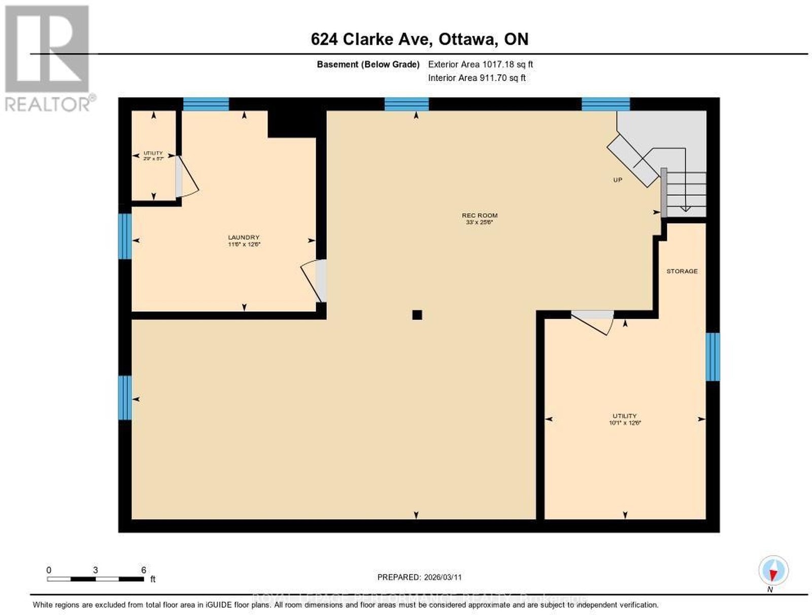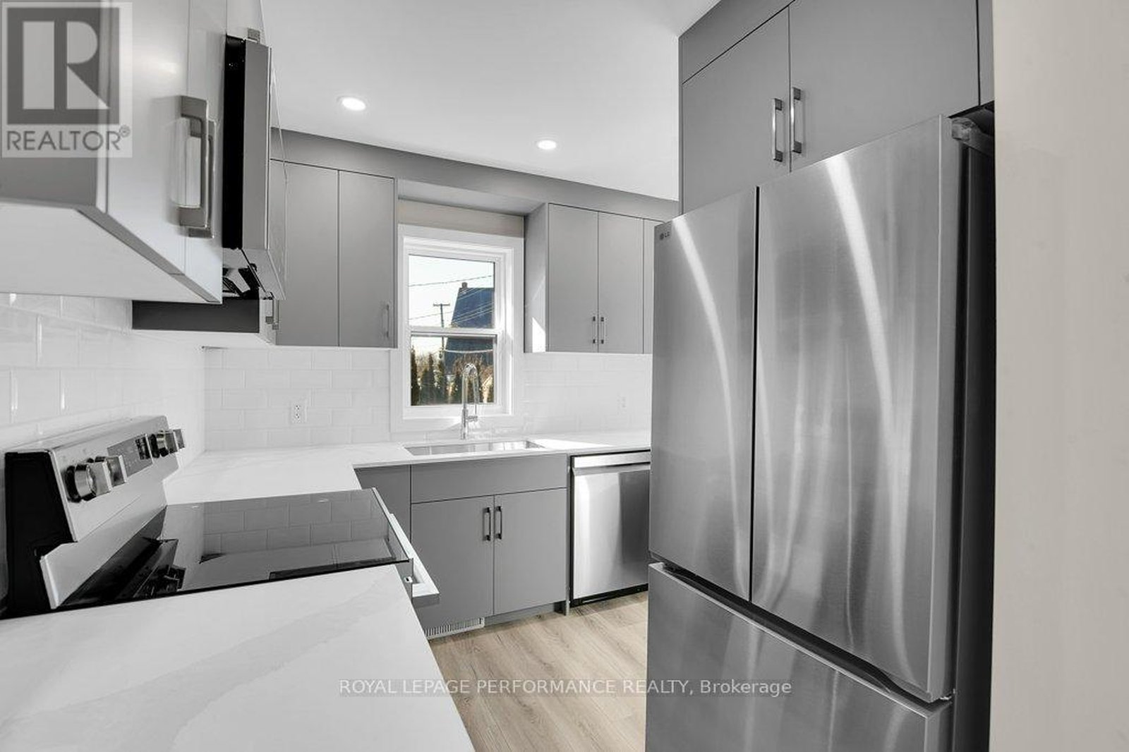Welcome to 624 Clarke Avenue, a thoughtfully rebuilt bungalow in Ottawa's established Overbrook/Castle Heights neighbourhood. This home has been extensively refurbished from the studs up, offering modern systems and finishes within a mature community setting. The main level provides approximately 1,000 sq ft of living space with three bedrooms and one full bathroom. Recent improvements include new drywall, electrical wiring, plumbing, lighting fixtures, interior and exterior doors, windows, and flooring. Vinyl plank flooring runs throughout the main level, complemented by pot lighting in most rooms. The updated kitchen features stone countertops and brand new appliances, providing a practical and modern workspace. Major mechanical systems have also been replaced, including a gas furnace, central air conditioning, and air filtration system. The fully finished lower level offers additional living space with broadloom flooring through most areas, a laundry area with new washer and dryer, and a bathroom rough-in for future potential. Situated on a corner lot, the property includes an attached garage connected by a covered breezeway. The home was refurbished following a fire, with renovation work completed and inspections and approvals available. Conveniently located near schools, transit, shopping, St. Laurent Boulevard, Montreal Road, NCC pathways, and downtown Ottawa. Vacant and available for immediate possession.