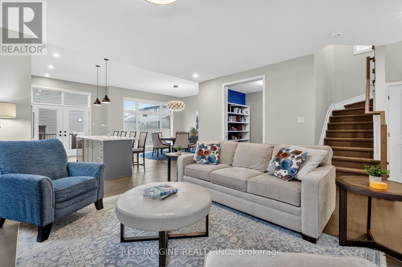 Situated between the vibrant communities of Stittsville & Kanata, Bradley Commons offers the perfect balance of tranquility and convenience. This immaculate Urbandale Westport-Pacific Series home sits on a deep 100' lot on a quiet street overlooking Bradley-Craig Park. Thoughtfully upgraded throughout, the home features a well-designed open layout with the rare addition of two home offices; one on the main floor, another in the lower level. The welcoming entrance includes a mudroom and powder room, while the spacious living room is highlighted by a gas fireplace flanked by floor-to-ceiling windows. Bright and airy, the home boasts soaring 10 ft ceilings, stylish lighting, and gleaming Oak hardwood flooring throughout the mail level. The modern kitchen features a generous island, quartz countertops & quality appliances. Upstairs, the spacious primary suite offers a walk-in closet, Ensuite bath, and beautiful western views over the park. Two additional bedrooms, one with a walk-in closet, a full 4 pc. bath, and a convenient laundry room complete the upper level. The builder-finished basement features oversized windows, a large family room, home office, exercise area, 3 pc bath, with the option to convert the office into a 4th bedroom. An unfinished section provides abundant storage space. Enjoy nearly maintenance-free landscaping! Interlock patio stone extends along both sides of the double driveway, providing easy access to the fully fenced backyard, where you'll find a deck and patio area beautifully framed by decorative stone. Residents enjoy access to excellent schools, convenient shopping & entertainment, and quick connections to the highway & public transit. Outdoor enthusiasts will appreciate walking along the scenic Trans Canada or Terry Fox Pond Trails, while nearby amenities include Canadian Tire Centre, the CRC, and Walter Baker Sports Park. An ideal setting for families seeking an active lifestyle in a welcoming, well-supported community.