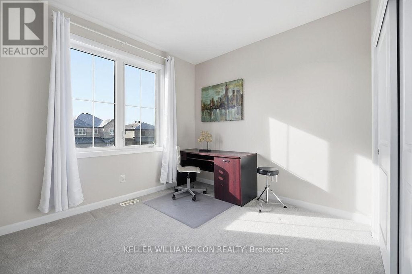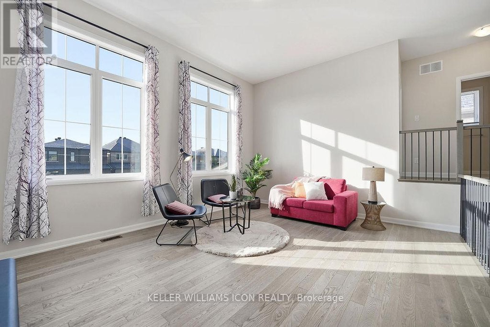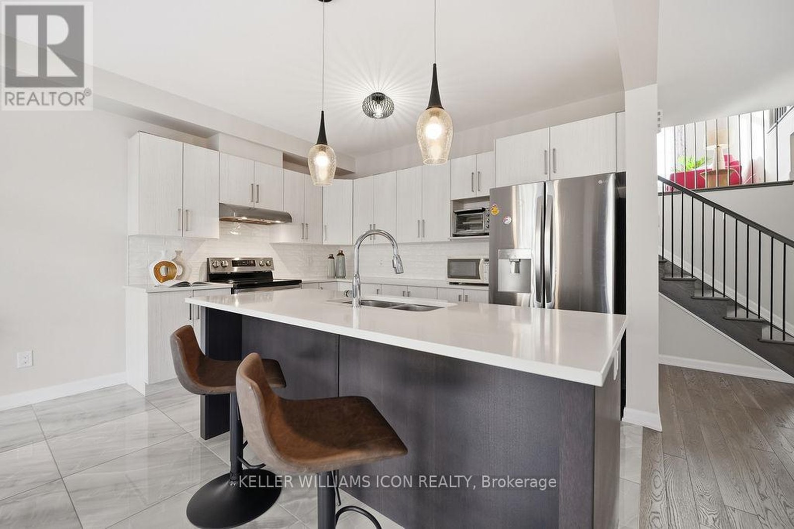 This 3-bedroom single-family home in Quinn's Pointe features 9-ft ceilings on both the main and second floors and a striking 15-ft ceiling in the loft-style family room, creating a bright and airy living space with impressive architectural appeal. The home offers a functional layout with spacious living and dining areas and a well-designed kitchen with a large island and breakfast bar, ideal for everyday living and entertaining. The sun-filled loft overlooking the main floor provides a perfect space for a lounge or media area. Upstairs includes three well-sized bedrooms, including a primary bedroom with walk-in closet and ensuite. The fully fenced backyard is great for outdoor enjoyment, and the unfinished basement offers ample storage and future potential. Conveniently located near Strandherd Dr and Greenbank Rd, close to parks, trails, rivers, the Minto Recreation Complex, and excellent schools.