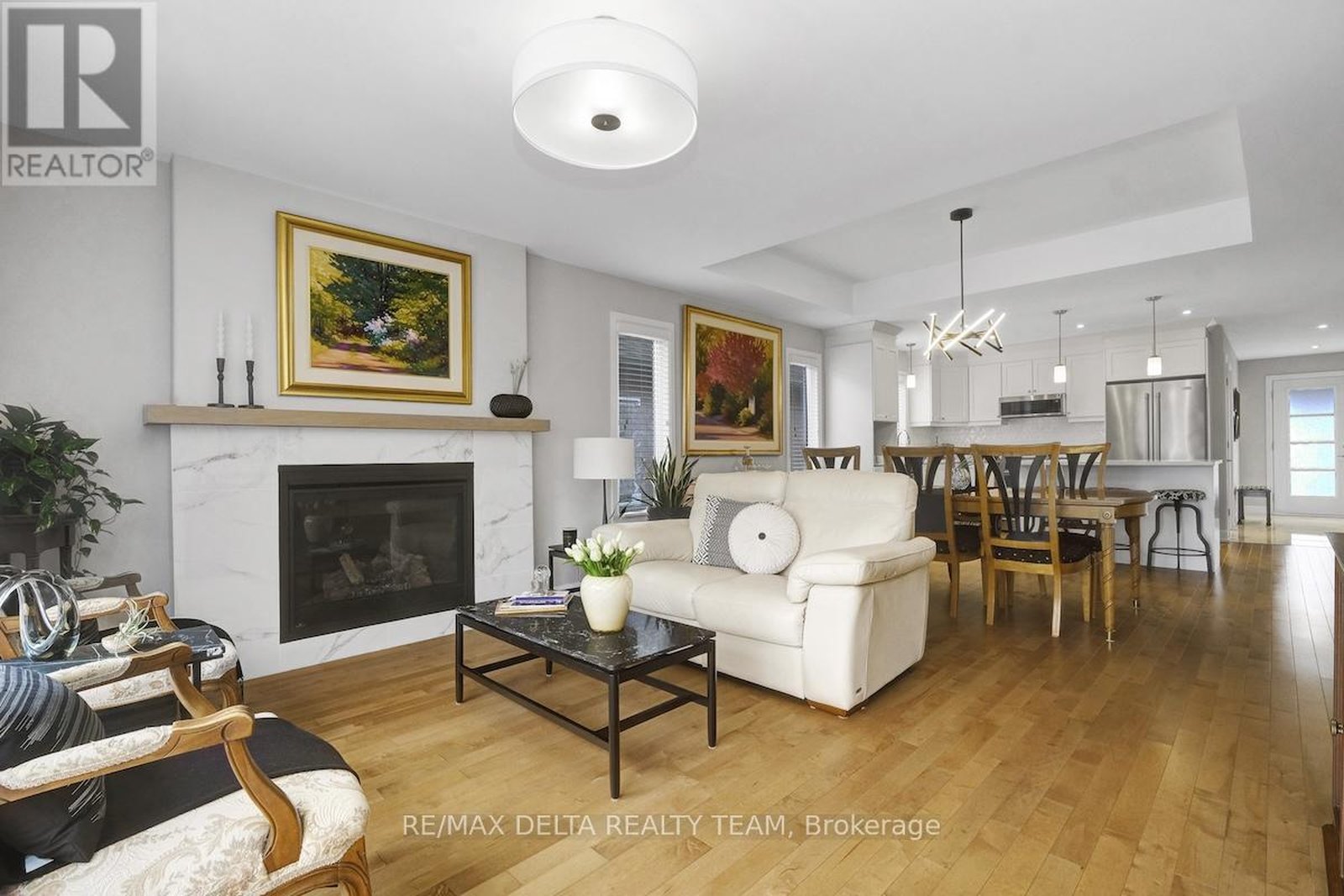 Prepare to fall in love! Stunning and modern semi-detached bungalow in the desirable community of Sunset Flats in Russell, just minutes to amenities, top-rated schools, steps away from the New York Central Fitness Trail, surrounded by walking and biking paths ! Built in 2020 by Melanie Construction (Cambrai I option B model, floor plan in attachments), this spacious bungalow is filled with natural light and boasts a functional layout throughout and it is loaded with quality builder upgrades (over $55,000 in upgrades, which included a REDESIGNED main floor plan). Gorgeous open concept main level with gleaming hardwood flooring and smooth ceilings, that boasts a large entrance with porcelain tiles, a dining room with coffered ceilings, a spacious family room with large natural gas fireplace, a stunning kitchen with tons of cabinets and quartz counter space, upgraded backsplash, an oversized centre island, ideal for family gatherings. Also equipped with stainless steel appliances and a coffee station. Spacious primary bedroom on main level with a large 3 pc ensuite bath. The other main floor bedroom (currently used as office and music room) is also generous in size with a large window that sunlight bathes the room creating a bright, warm and inviting space. There is also a 3 pc modern full bath on the main level, as well as main floor laundry with lots of shelving for added convenience. Fully finished basement (by the builder) has quality laminate flooring, smooth ceilings and it is equipped with a large rec room with bar sink, 1 additional spacious bedroom and a large 3 piece bathroom, plus tons and tons of storage space. Fully fenced landscaped backyard with stone walkways and private sitting area is perfect for entertaining. Oversized 1 car garage and driveway with an additional parking space. Book your showing now!