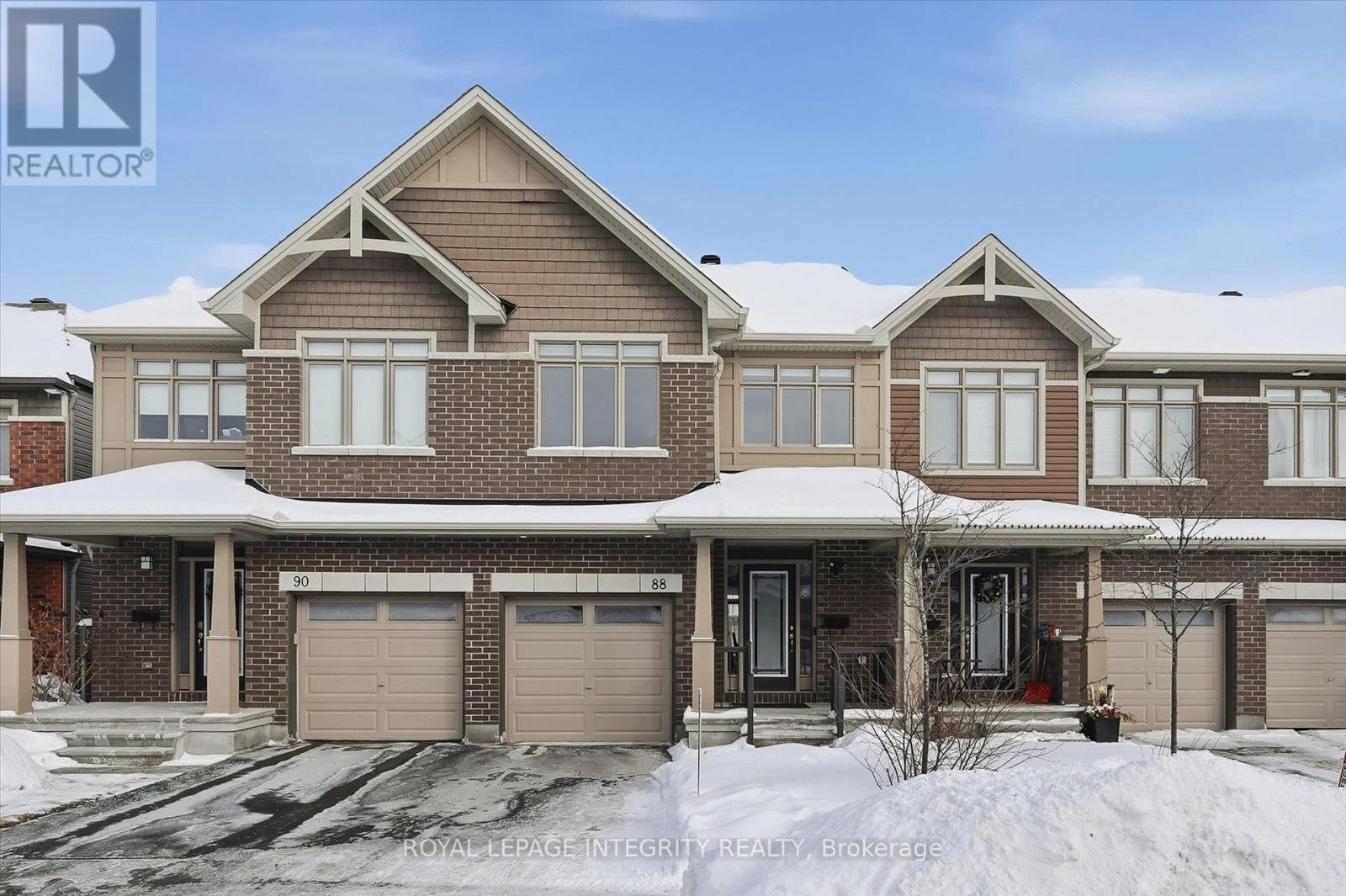 Welcome to 88 Chevron Place, located on a quiet cul-de-sac in a growing, family-friendly neighbourhood! This stylish 3-bedroom, 3-bathroom Energy Efficient certified Claridge Summit townhome offers over 2,300 sq ft of living space (1,869 sq ft above grade plus the finished basement) and is sure to impress. Pull into the driveway with space for two vehicles before stepping into the welcoming foyer featuring a large closet and convenient powder room. Pass by the mudroom with additional storage and inside access to the garage before entering the open-concept main living space highlighted by hardwood and tile flooring. The beautiful kitchen features dark cabinetry, stainless steel appliances, abundant cabinet and counter space, upgraded 42" cabinets, and a stylish brick-pattern backsplash, all overlooking the dedicated dining area and the sun-filled living room complete with a cozy gas fireplace and access to the fully fenced backyard. Upstairs, you'll find the sleeping quarters consisting of a spacious primary bedroom with walk-in closet and a luxurious 5-piece ensuite with dual vanity, glass shower, and separate soaker tub. Two generously sized secondary bedrooms, a full bathroom also featuring a dual vanity, convenient laundry area, and large linen closet complete the level. The finished basement provides a versatile recreation room along with ample storage space. Ideally located close to public transportation, several schools with a new elementary school planned nearby, surrounded by nature and Prescott-Russell walking trails, and just minutes to shopping and all necessary amenities. Book your showing today!