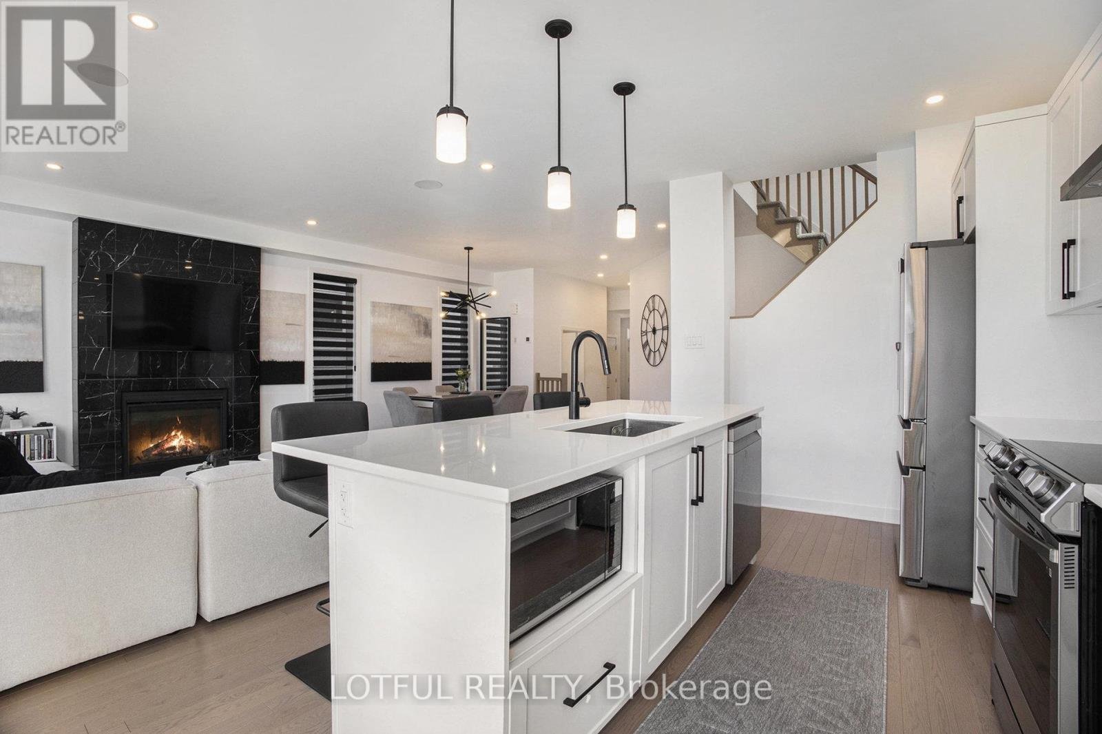 Step into this exceptional 3-bedroom home, where modern elegance meets thoughtful design. Nestled on a quiet, family-friendly street near top-rated schools, this residence offers the perfect blend of comfort, style, and convenience. The spacious, open-concept main floor is ideal for entertaining, featuring a chef-inspired kitchen with quartz countertops, a large island, and a cozy gas fireplace in the living room that adds warmth and charm. A bright and impressive foyer welcomes guests, while the powder room and inside access to the double garage enhance everyday convenience. Upstairs, the primary suite is a true retreat, featuring a beautiful accent wall, a luxurious ensuite with a soaker tub and his-and-her sinks, and a walk-in closet. Two additional bedrooms and convenient second-floor laundry make daily living effortless for families. The fully finished basement offers a spacious family room, full bathroom, and ample storage, perfect for movie nights, playtime, or hosting guests. Just minutes from parks, schools, the Orléans Health Hub, and major transit routes, this home seamlessly combines style, comfort, and convenience.