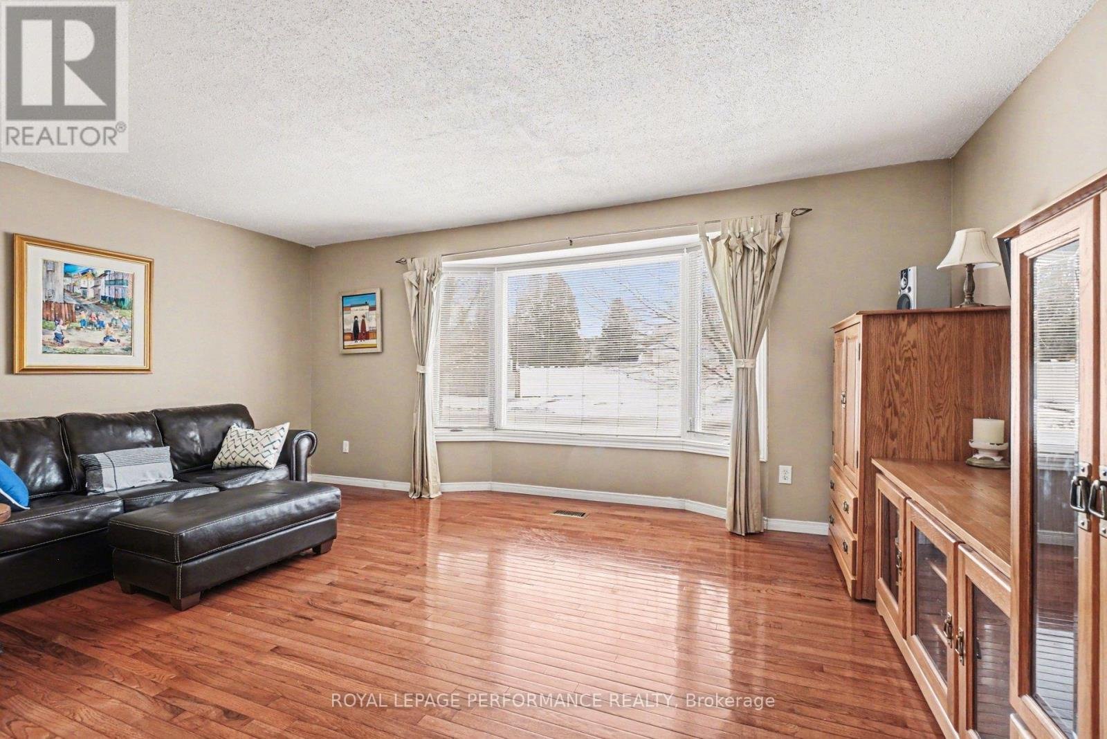 Welcome to this well-maintained 2-storey SEMI-DETACHED home with NO REAR NEIGHBOURS ideally located in one of Orléans' most sought-after areas, BACKING DIRECTLY ONTO A PARK AND WALKING PATH! This prime location offers a rare blend of privacy and convenience-just minutes to everyday amenities, schools, shopping, and quick access to scenic walking and bike paths along the Ottawa River. The main level features gleaming HARDWOOD floors and a bright, inviting living room highlighted by a bay window that fills the space with natural light. A separate dining room provides an excellent setting for entertaining, complete with patio doors leading to the backyard. The kitchen offers ample cabinetry, generous counter space, and plenty of natural light, making it both functional and comfortable for daily use. Upstairs, you will find HARDWOOD FLOORING & a spacious primary bedroom with double wall closets, along with two additional well-sized bedrooms and a full 4-piece main bathroom. The finished lower level adds valuable living space with a recreation/family room featuring laminate flooring, a 3-piece bathroom with shower, and a storage/laundry area. Step outside to a fully fenced backyard featuring extensive INTERLOCK stone, landscaped garden beds, and two garden sheds-perfect for outdoor enjoyment with direct access to the park and walking path behind. Updates include: windows (Fenex) replaced between 04-06, front door (06), roof (06 but shingles that were blown away from tornado in 2019 were replaced), backyard awning (06), PVC fence (09), driveway (09), interlock (11), and Furnace (2018). An excellent opportunity to own a home in a quiet, family-friendly setting with no rear neighbours and exceptional access to nature trails while remaining close to all amenities.