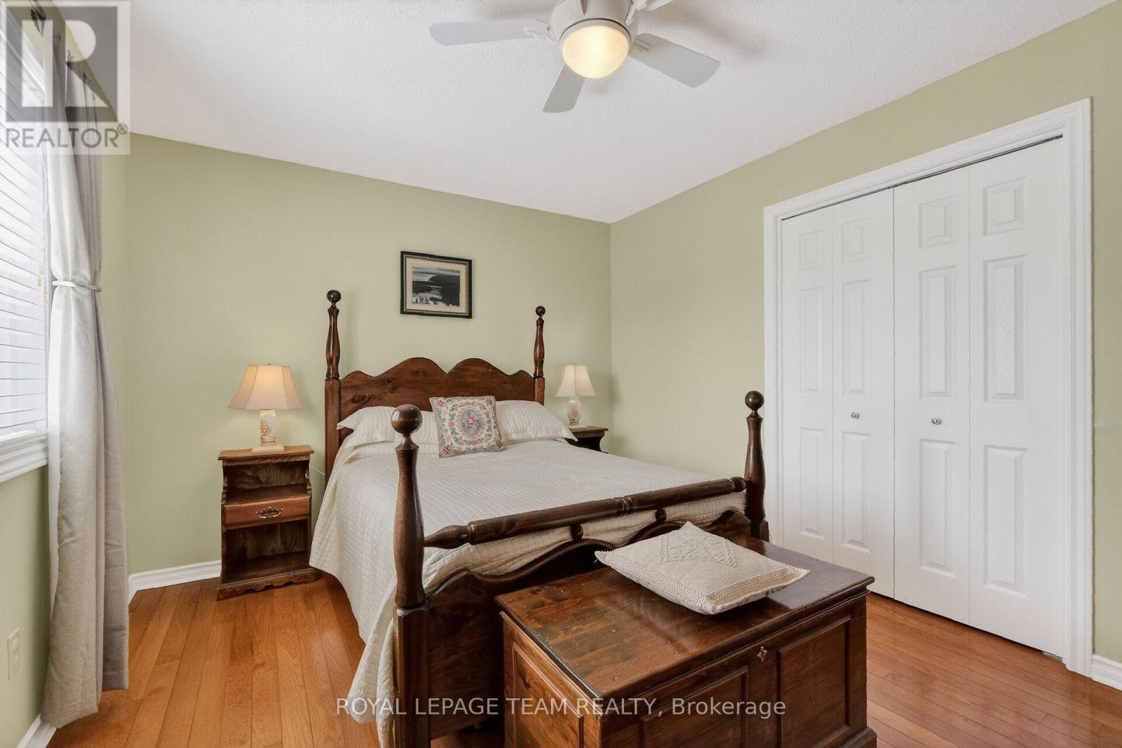 Wonderfully updated & maintained, this mostly brick home is located on a private street in the Bridlewood community of Kanata. Fantastic for families with 4 bedrooms, 3 baths, expansive finished lower level & private 50+ ft wide backyard with interlock patio & southern exposure. Almost 2,700 sqft above grade with entertaining size living & dining room, kitchen with eating area opens to spacious family room with sliding door to patio & yard. Many upgrades throughout the home including: hardwood & tile flooring on first & 2nd levels & stairs, updated kitchen & baths, windows & doors, landscaping, roof, & more. Interlock walkway welcomes you to the covered front porch & wider front door with pretty inset window. Tiled foyer has a double closet with updated doors. Entertaining size living & dining room with tall windows, chandelier & room for a buffet. Bright kitchen has many cabinets, pantry cupboards, pot drawers, subway tile backsplash, granite counters & updated sink & faucet & S/S appliances. Spacious eating area has views of the backyard & family room with gas fireplace. Enlarged patio door, 2 side windows bring natural light into the room. Handy laundry & mudroom has tall closets & side door to interlock walkway to backyard & entry to double garage. Elegant curved staircase to the 2nd level. Primary suite has room for a 2 dressers & a king size bed. Walk-in closet has built-in shelving plus a window. Spa-like ensuite bath has updated tiled flooring, upgraded counters, 2 sinks, big tiled shower, tub & extra cabinets for linen. Secondary bedrooms have neutral decor, big windows & double closets. Main bath has quartz counters, updated vanity doors, tile flooring & tub surround. Prof. finished basement offers tremendous space for a home theatre with built-ins & electric fireplace. Plus room for hobbies, gym & office areas. Separate room with a workshop, storage & utility areas. Walk to several parks,Trans Canada Trail, schools & shops. 24 hours irrevocable on offers.