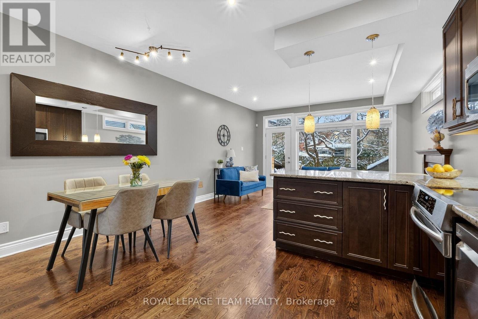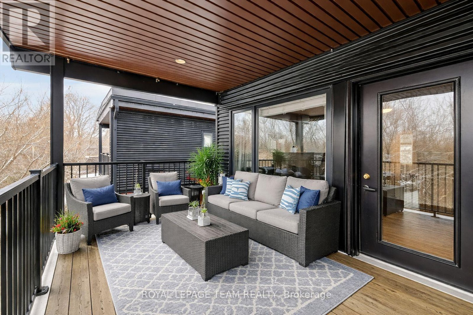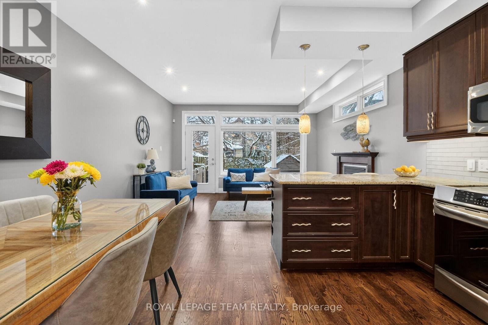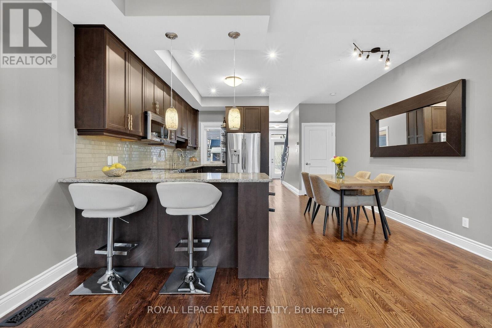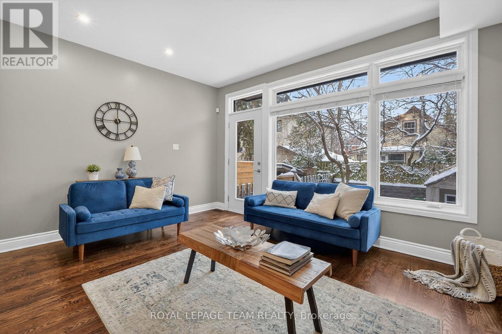 Welcome to a truly special home designed for modern urban living. This award-winning Hamel-designed semi-detached offers the perfect blend of striking architecture, natural light, and thoughtful design-just minutes from downtown Ottawa. Step inside and immediately feel the warmth of the sun-filled open concept main level, where 9-foot ceilings, rich hardwood floors, and expansive windows create an inviting and elegant space for everyday living and entertaining. The beautifully appointed chef's kitchen features granite countertops, stainless steel appliances, an undermount sink, and a generous breakfast bar, seamlessly connecting to the dining and living areas. The living room's cozy gas fireplace provides the perfect backdrop for relaxing evenings, while the patio door opens to a private backyard retreat ideal for summer gatherings. The second level offers exceptional versatility with two spacious bedrooms, a full bath, and a bright multi-purpose den that easily serves as a home office, workout space, or creative studio. Step onto the balcony and enjoy peaceful views of the surrounding neighborhood. The entire top floor is dedicated to a luxurious primary suite sanctuary. Wake up to abundant natural light, enjoy a spa-inspired ensuite bath, and unwind on your private covered terrace with a retractable sun-shade-a rare feature that creates a perfect outdoor escape above the city. The fully finished lower level adds even more flexibility with a large family room or potential fourth bedroom, a full bathroom, and a bar area, making it ideal for guests, entertaining, or future in-law suite potential. Short walk to Tremblay LRT and VIA Rail, downtown Ottawa, Rideau River pathways, Rideau Sports Centre, University of Ottawa, Overbrook Community Centre, sports fields, Sens Rink of Dreams, and dog park. A rare opportunity to own a beautifully designed home in one of Ottawa's most connected and evolving urban communities. This is more than a home-it's a lifestyle.
