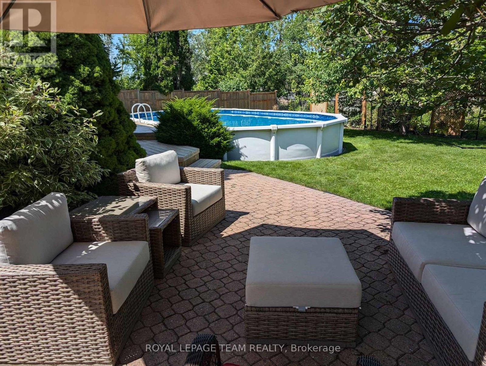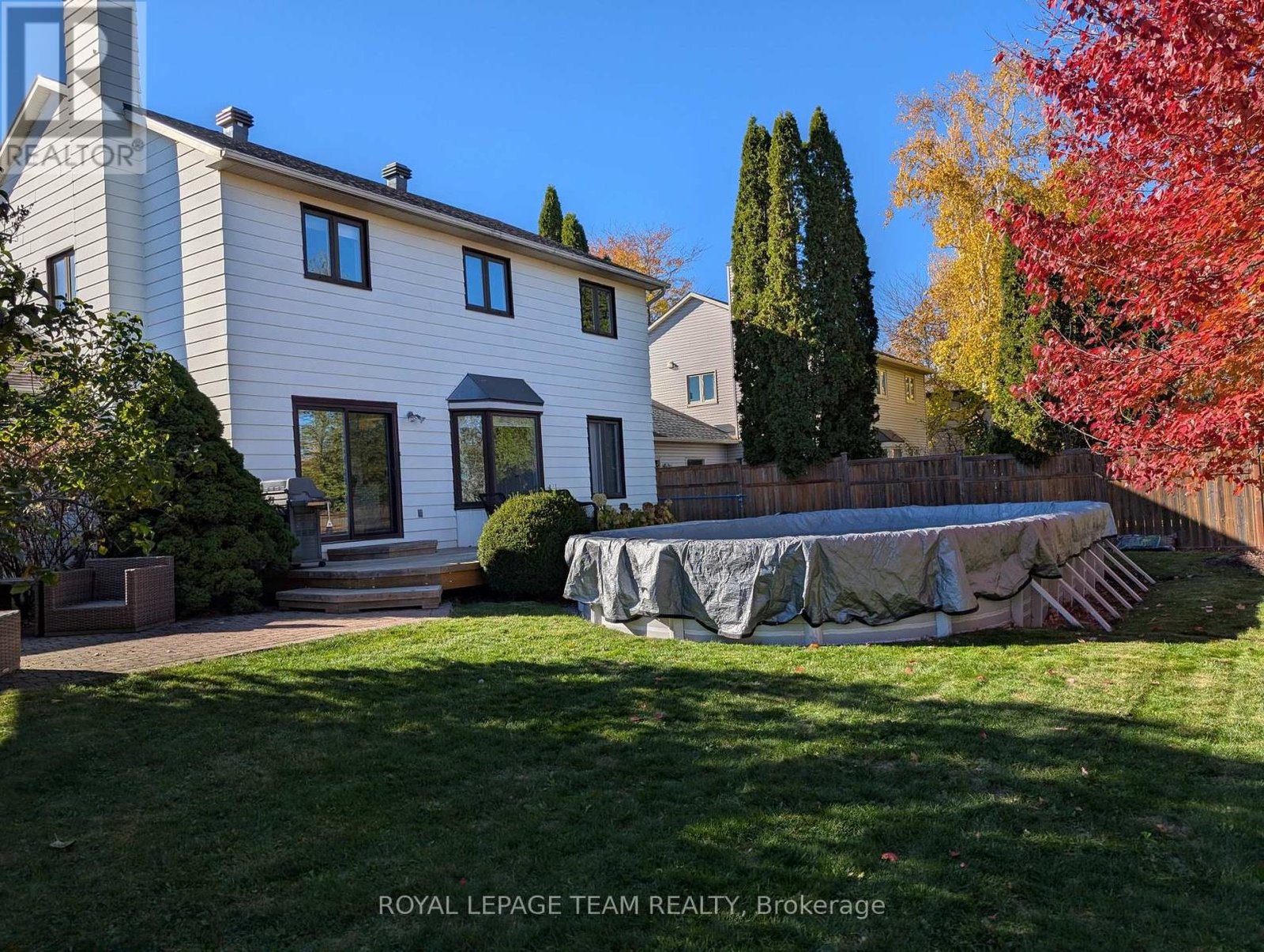 318 Liard Street. Premium location backing a linear park with mature trees. Beautifully updated and upgraded. Porcelain tile through the kitchen, front hallway, powder room and laundry room. Hardwood flooring in the living room, dining room and main floor family room with a wood burning fireplace. Kitchen renovated in 2015 with white shaker style cabinetry, Quartz counter tops, LED pot lighting, glass tile backsplash, soft close doors & drawers, built in microwave and stainless steel appliances. Note the moveable island. Updated powder room and convenient, bright main floor laundry with access to the garage. Double door entry to the primary bedroom with his and hers closets and a renovated luxury ensuite bathroom. Main bathroom has also been completely renovated. Note all door hardware has been updated and the carpeting on the second level was installed in 2025 with high quality 58oz and new underpadding. Lower level offers a recreation room with a gas fireplace, home office, powder room and plenty of storage. Private, fenced rear yard has a 32 x 16 above ground pool installed in 1995. (new liner & 2 speed pump 2018) New fencing 2019. Deck upgraded with pressure treated planks 2019. High efficiency furnace 2010, 18 Seer central air unit 2010, HRV added 2009, commercial grade hwt (owned) 2021, roof shingles replaced 2021 with new vents, New thermostat-controlled gas fireplace in rec room 2025. Large utility room with workshop potential. Central vacuum included. Exceptionally well maintained home by long time owners. Flexible possession available.