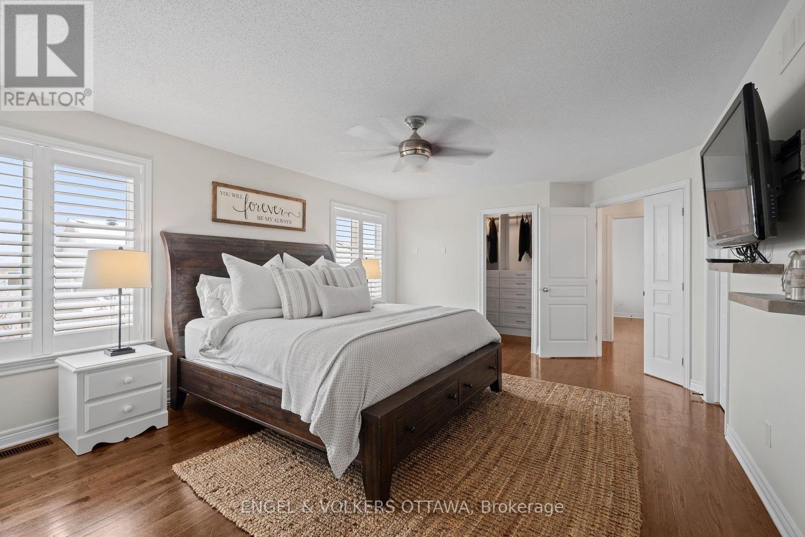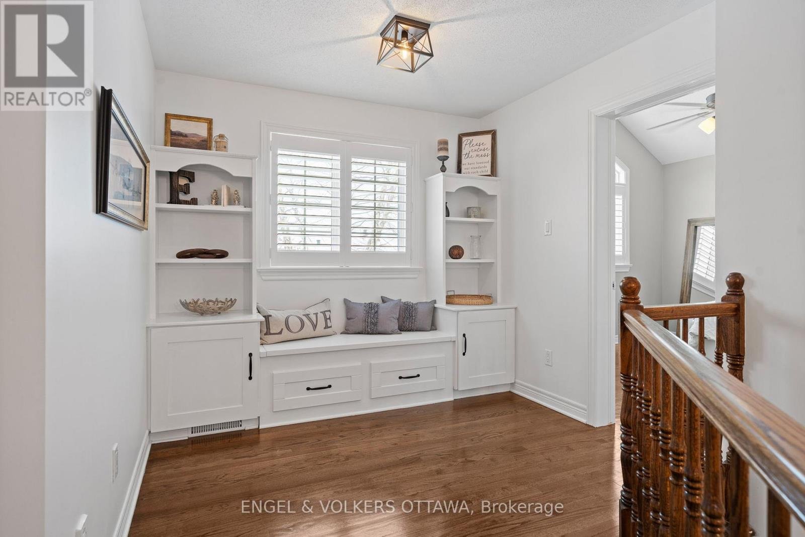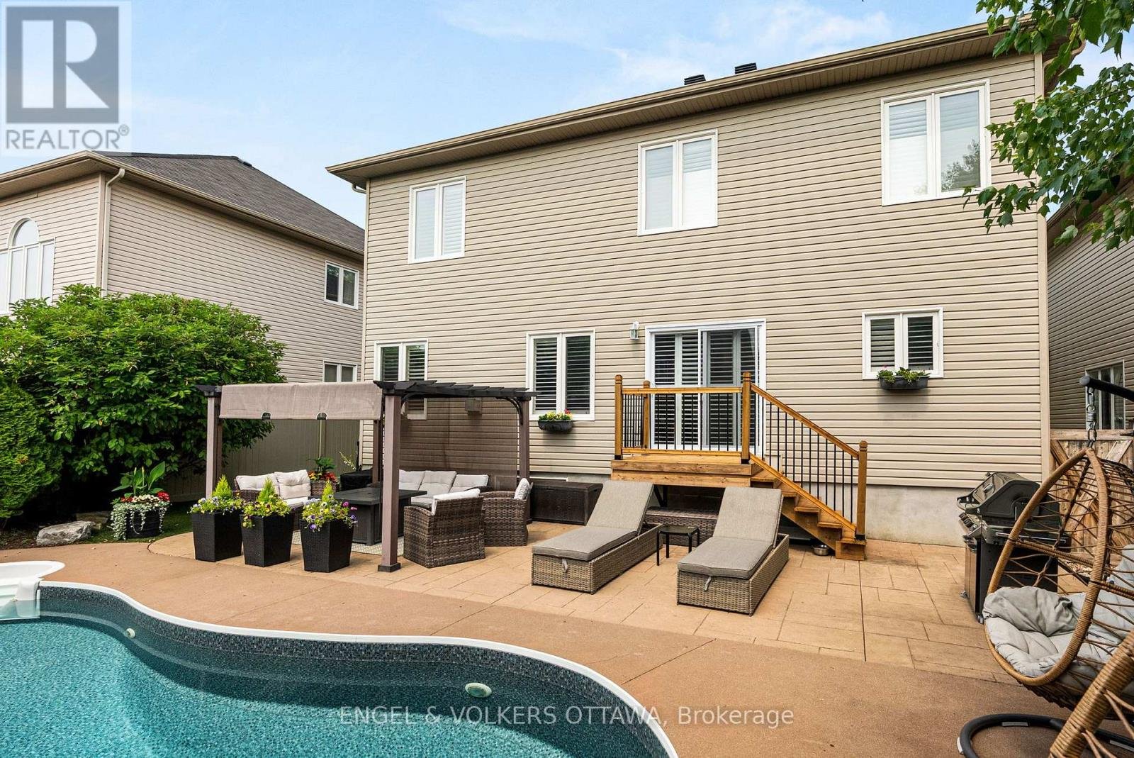 Situated on a quiet street in one of Stittsville's most established and family-oriented communities, this beautifully upgraded 4-bedroom home, offers the space, quality, and privacy that is genuinely hard to find. Located minutes from top-rated schools, Stittsville's main street, parks, recreation, and quick highway access, this neighbourhood delivers both lifestyle and long-term value. The full brick front sets the tone of craftsmanship and quality throughout the home. Step inside the welcoming foyer and notice the rich hardwood both on the main and upper levels, tying the home together with warmth and continuity. The layout is thoughtfully traditional with a dedicated main floor office and a formal family room open to the dining room, which gives this home a defined structure you will appreciate. The kitchen is well-proportioned featuring upgraded cabinetry, stainless steel appliances, granite counters, and a separate pantry. A spacious eat-in area has direct sightlines to the backyard oasis and into the main living area, where the gas fireplace anchors the room. Upstairs, four generously sized bedrooms offer flexibility for growing families, guests, or a second workspace. A primary retreat with 2 walk-in closets and an updated ensuite bath offering a separate soaker tub, glass shower, and double sinks. The fully finished basement expands the home considerably with a dedicated gym, movie, and games areas, making it a true extension of daily living, not just storage. The fully fenced backyard is beautifully landscaped, centred around the salt-water pool, and mature trees. The privacy of this outdoor space is rare in a neighbourhood setting. Enjoy minimal maintenance in the backyard; perfectly positioned with parks nearby for additional greenspace. This turn-key home features custom California shutters throughout, neutral paint colours, updated fixtures, and numerous upgrades. See attached feature sheet and upgrade sheet for more information.