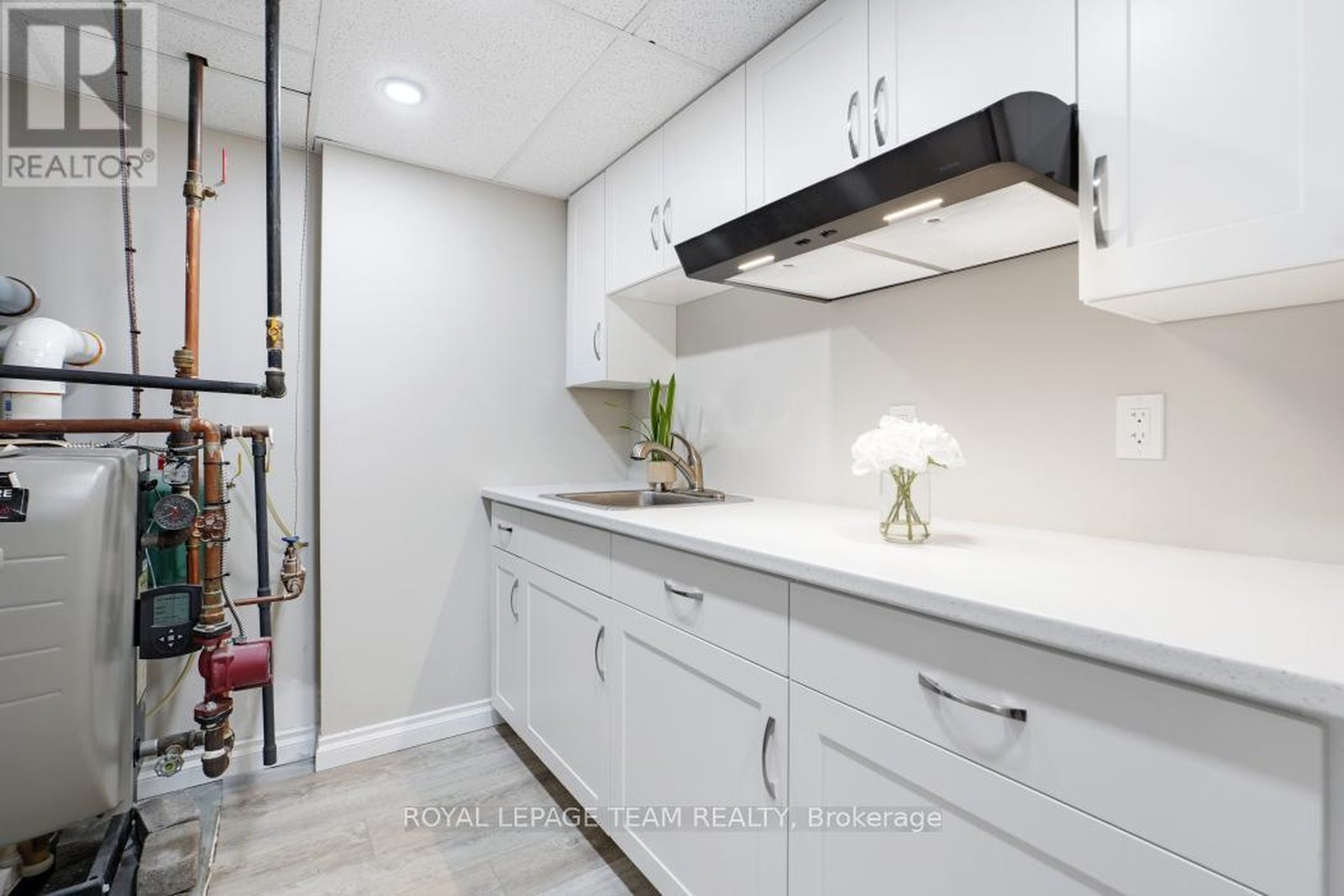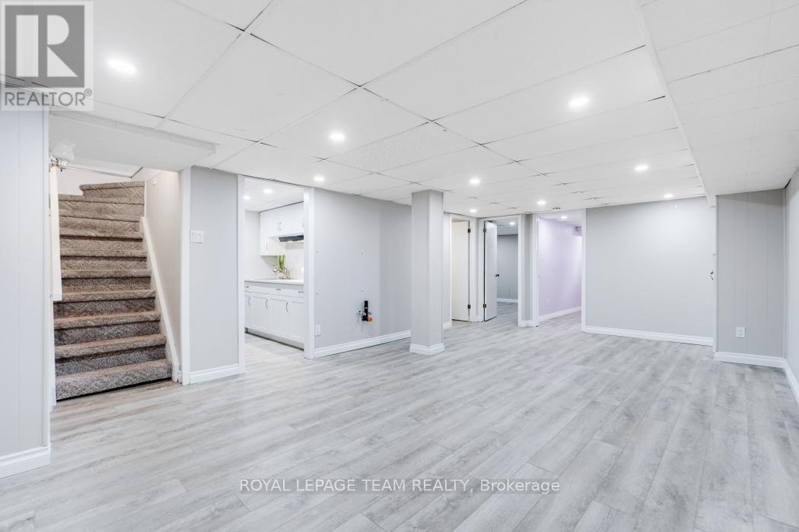 This impressive mid-century bungalow is situated on a generous 65 x 100-foot treed and landscaped lot in the centrally located and sought-after neighbourhood of Boarden Farm. Meticulously cared for by its original owner, the home seamlessly blends classic character with modern amenities. Offering 3+1 bedrooms and 2 bathrooms, this residence is ideally suited for an active family. The open-concept kitchen flows into a bright family room addition, featuring floor-to-ceiling windows and direct patio access to a substantial east-facing deck, perfect for outdoor dining and entertaining. The primary bedroom includes double large closets providing ample storage, while 2 (+1) additional spacious bedrooms offer flexibility and comfort. Other highlights include a main floor stacked laundry and a recently updated lower level with potential for development as a secondary dwelling unit. The exterior features professionally landscaped interlock pathways, an oversized carport, a storage shed, and an extended driveway; the fenced and hedged backyard ensures privacy and is ideal for outdoor activities. Home features a clean hydronic/boiler system fueled by natural gas and has central air conditioning. Conveniently located near the shops on Merivale Road, Merivale High School, and several of Ottawa's most reputable schools, recreation facilities, and parks, this property offers an exceptional living environment.