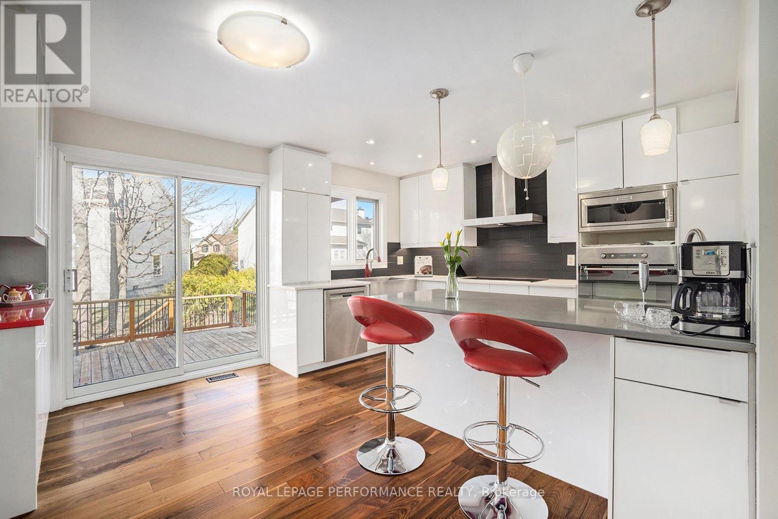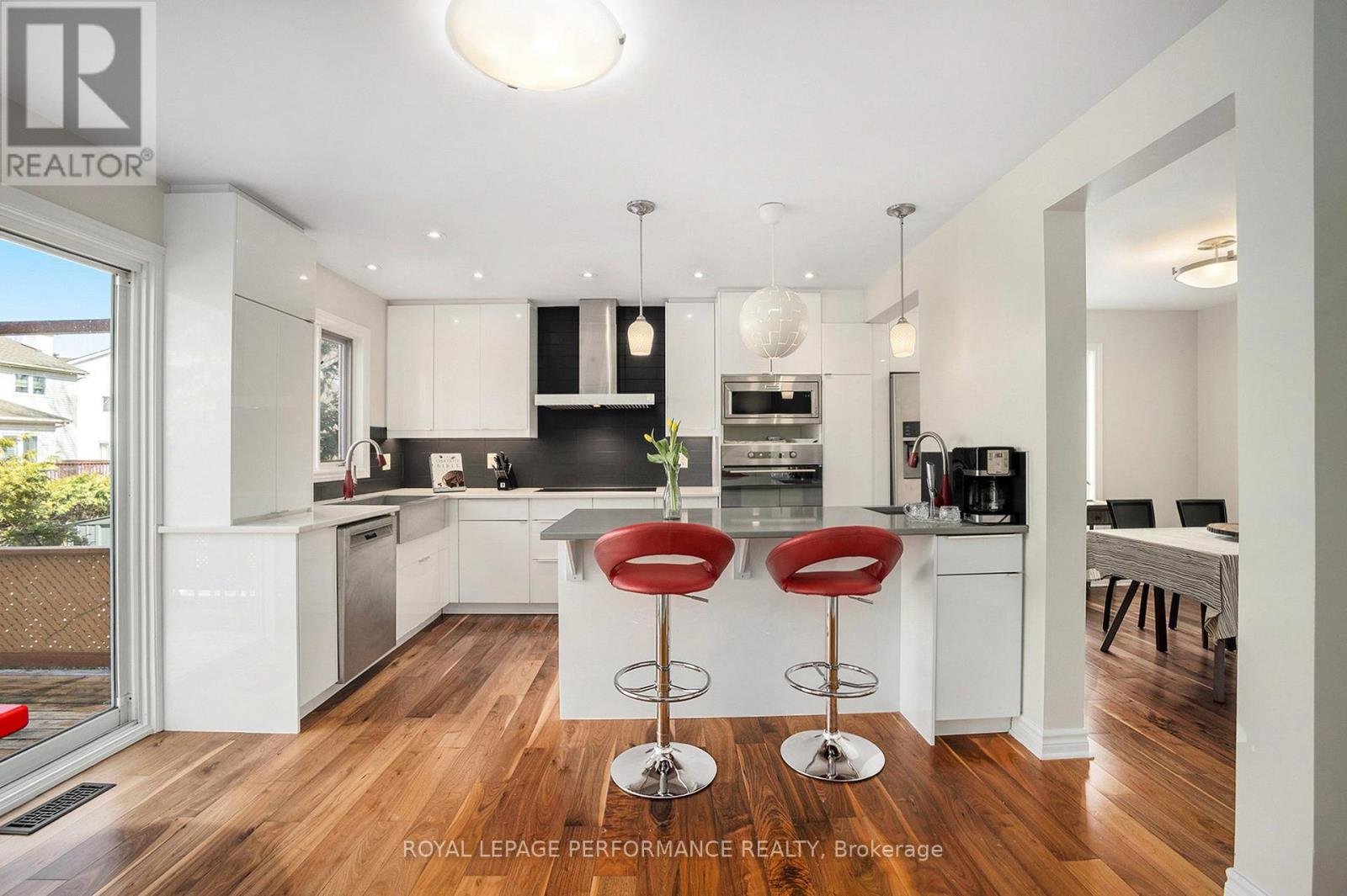 Welcome to this impeccably updated 4-bedroom, 4-bathroom two-storey residence, perfectly positioned in one of Kanata's most sought-after communities. From the moment you step into the inviting foyer, you are greeted by a warm blend of style and comfort. The main level features a seamless mix of hardwood and tile flooring, complemented by a formal living room and a spacious family room anchored by a cozy fireplace. At the heart of the home is a stunning custom kitchen ('14), designed in a timeless black-and-white palette and finished with quartz countertops, a newer cooktop ('25), prep sink, extended breakfast bar, pot lighting, and a designer backsplash. Thoughtfully laid out to balance openness and definition, it flows effortlessly into the dining area, ideal for both everyday living and entertaining. Patio doors lead to a beautiful cedar deck and a large, fully fenced backyard. The main floor is completed by a stylish powder room ('23) and a renovated laundry room ('23) with built-in shelving, a sink, and direct access to the double garage. Upstairs, new carpeting ('24) enhances four spacious bedrooms, including one with a walk-in closet and cheater access to a renovated 4-piece bathroom ('15). The primary suite offers a private retreat with a fireplace ('23) and a luxurious 5-piece ensuite ('14) featuring heated floors, a freestanding tub, glass shower, and dual vanities. The finished lower level adds a large recreation room, a sleek 3-piece bathroom, ample storage, pantry, and extra fridge. Freshly painted ('24), with a 45-year shingle roof ('14), furnace ('14), AC ('20), EV wiring, and 200-amp service. Located near parks, schools, South Highlands Trails, Richcraft Recreation Complex, dining, and Kanata's tech hub.