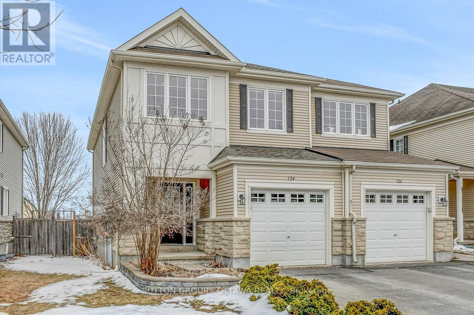 Beautiful end unit townhouse tucked away on a quiet private in Stonebridge, a rare offering with no rear neighbours. Set on an extra wide lot, this move in ready home offers great curb appeal, lovely landscaping, and a fully fenced backyard with no rear neighbours, well set up for outdoor enjoyment with both a wood deck and a separate patio area, along with a garden shed for added storage. Inside, the well designed layout offers over 2,000 square feet of finished living space, including 1,677 square feet above grade. The main floor features a kitchen with granite counters and a sunny breakfast nook, separate living and dining rooms, a convenient powder room, a walk in front hall closet, and inside access to the garage. Upstairs, the large primary bedroom features a four piece ensuite and two walk in closets, with two additional spacious bedrooms served by a full bath. The finished basement offers a comfortable family room with fireplace, a separate den ideal for a home office or guest space, and excellent storage. Durable flooring runs through the main and second levels, with carpet in the basement for comfort. Well maintained with thoughtful updates throughout, including roof shingles replaced in 2024. Close to the Minto Recreation Complex and just minutes to parks, schools, Stonebridge Golf Club, and a full range of nearby amenities. An ideal home for families or anyone seeking a quiet, low traffic setting in the heart of Stonebridge.