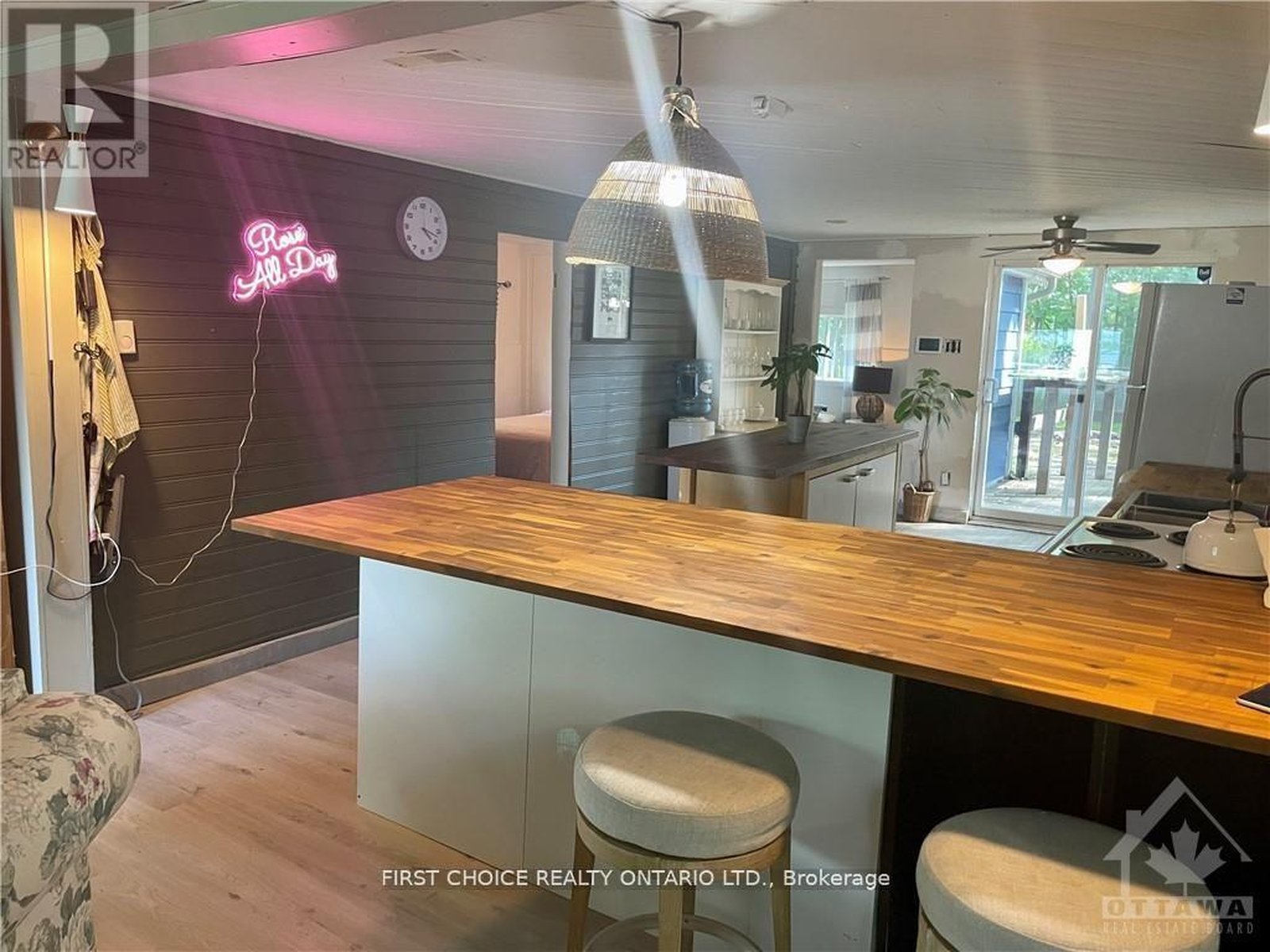 Waterfront Lifestyle Awaits! Welcome to one of the most charming bungalows in Constance Bay, where comfort, style, and lifestyle come together in this well maintained 2-bedroom, 1-bathroom open-concept home set on an impressive 75 ft x 125 ft lot in a sought-after waterfront community. From the moment you step inside, you're greeted by an abundance of natural light, a spacious front entrance, and a versatile den area perfect for a home office or cozy retreat. The open-concept design seamlessly connects the dining and living spaces, highlighted by a gas-burning fireplace capable of efficiently heating the home throughout the winter. The renovated kitchen features a stunning butcher block island, ample workspace, and a separate eating area with large patio doors leading to a generous private deck and backyard-ideal for entertaining or relaxing. Both bedrooms are bright and well-sized, and the home's smart, functional layout makes it feel more spacious than expected while remaining easy to maintain-perfect as a full-time residence, cottage, or investment property. Enjoy outdoor living with public water access directly across the street, along with the convenience of Bell Fibe internet, and a location just 20 minutes to Kanata, close to local restaurants, grocery stores, and the LCBO. Please note the property is tenant-occupied and requires a minimum of 24 hours' notice for all showings.