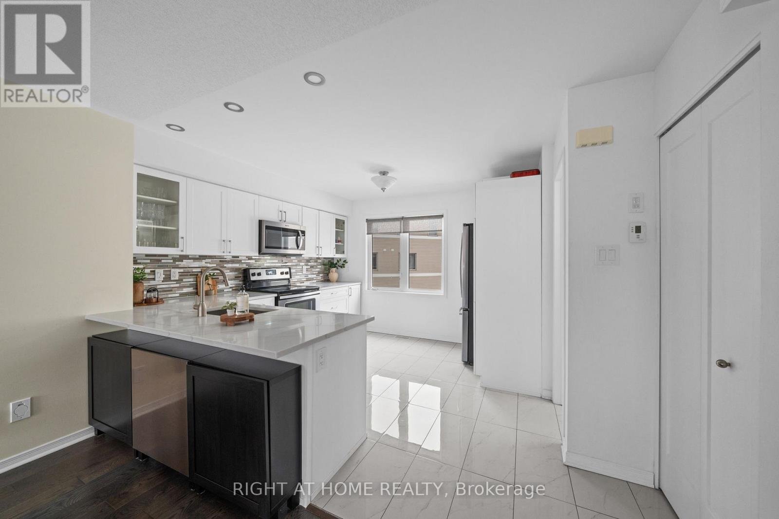 Your family will love this end-unit 3-storey home, featuring an open-concept kitchen, dining, and living area with a beautiful blend of ceramic and hardwood flooring. When it's time to unwind after a long day, the third floor offers two spacious bedrooms, each with its own ensuite. The first floor provides a flexible space that can serve as a third bedroom or family room. The fully finished basement adds even more versatility-perfect for an office, hobby room, or extra storage. This truly is a home you can make your own. Shopping, restaurants and coffee shops is just a five-minute walk away, and you'll enjoy plenty of nearby shopping and dining options. Updates include quartz countertops, hardwood flooring, ceramic tile, and more. A must-see home! Property taxes are estimated and should be verified with the City of Ottawa. Association fee ($86.00) covers snow plowing and street maintenance.