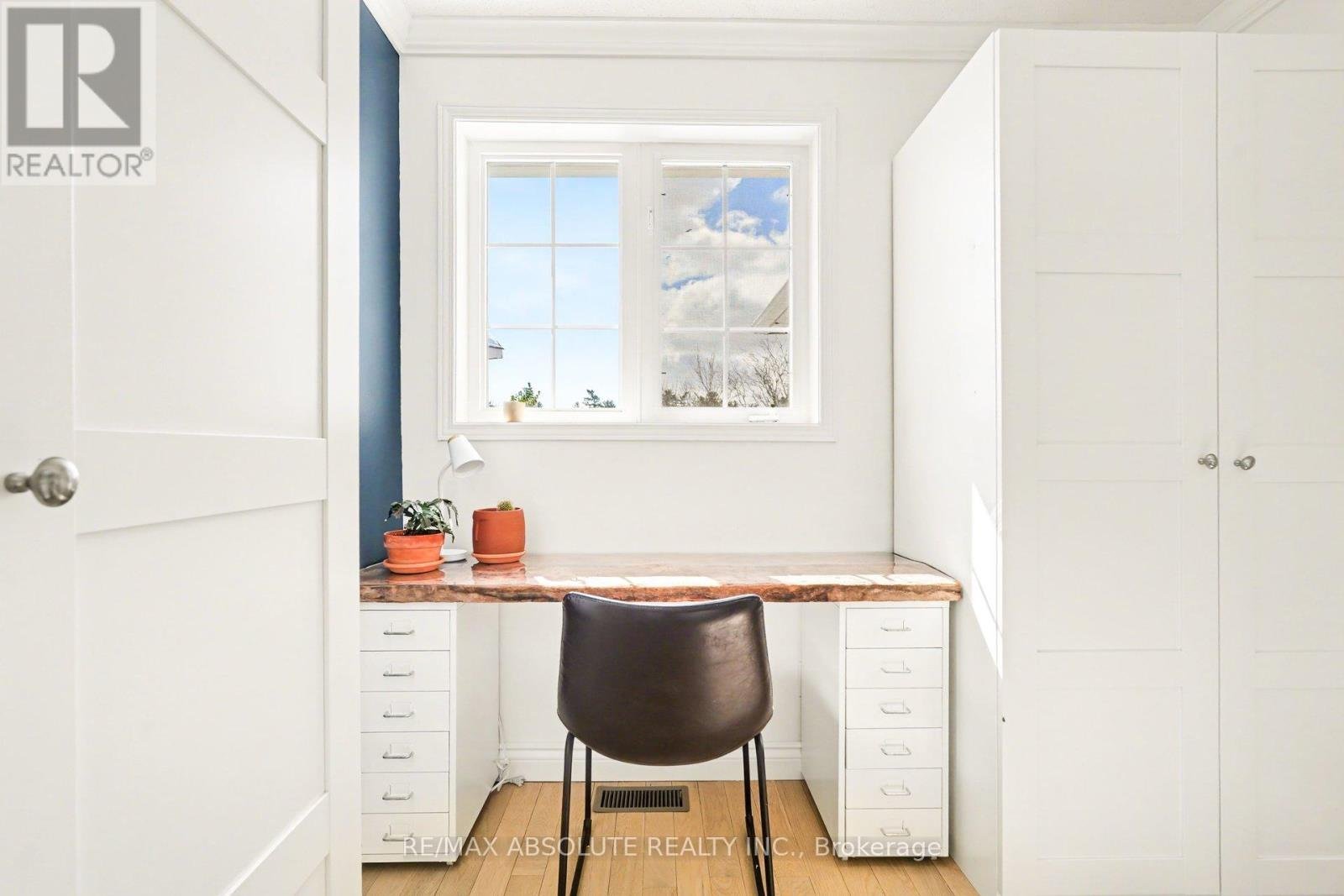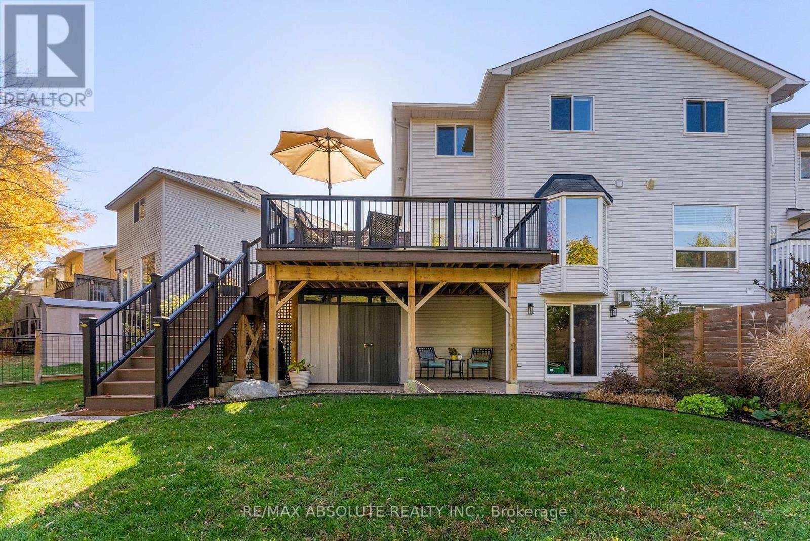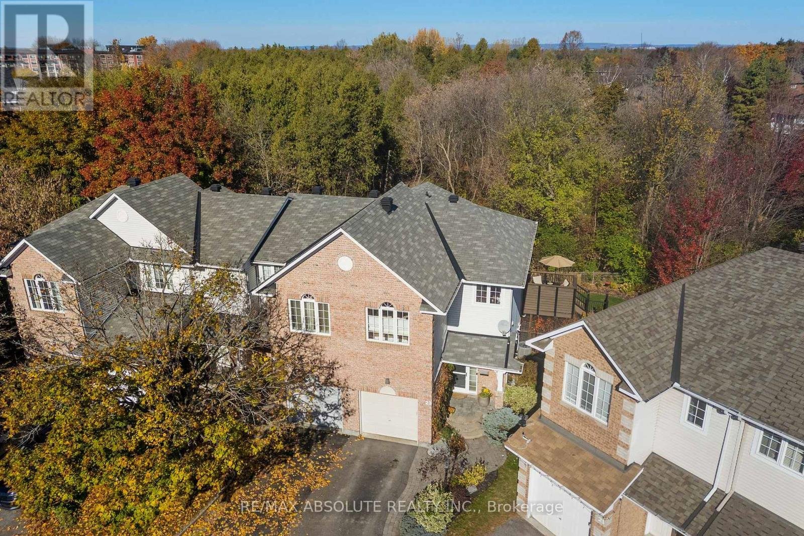 CANCELLED OPEN HOUSE April 12th!!! Welcome to 23 Riverbank Court-an exceptional Holitzner end-unit townhome set on a premium, fully fenced lot backing onto Poole Creek. This rare offering combines privacy, natural beauty, and extensive updates, all within walking distance to local amenities. Enjoy the outdoors from the spacious second-storey composite deck-an ideal setting to relax and take in the sights and sounds of nature. The beautifully landscaped yard provides a safe and secure space for children and pets to play. Inside, there are tasteful renovations throughout. The main and second levels feature bleached oak flooring, complemented by a hardwood staircase. The main floor boasts a stylish eat-in kitchen with quartz countertops, set against natural slate flooring. A full-length bay window in the breakfast nook frames peaceful, treed views. The dining area offers built-in banquette seating with convenient storage, maximizing both function and style. A welcoming living room and a updated powder room complete the main level. Upstairs, the sun-filled second floor features a primary retreat with a cathedral ceiling, walk-in closet, and a beautifully renovated ensuite. The spa-inspired bathroom includes a large low-threshold shower with rain shower head, ambient lighting, and custom built-ins. Two additional bedrooms offer tranquil views, including one with a Murphy bed. A versatile office or fourth bedroom adds flexibility for modern living. These rooms share a fully renovated main bathroom featuring a deep soaker tub with shower. The bright, walk-out lower level extends the living space with a cozy natural gas fireplace, a laundry/utility area, and storage room. Sliding doors lead to a covered patio, complete with an oversized storage shed. Located in a quiet, sought after cul-de-sac, this home is part of a friendly, established community. It truly offers the best of both worlds: everyday convenience and a private natural oasis in the heart of Stittsville.
