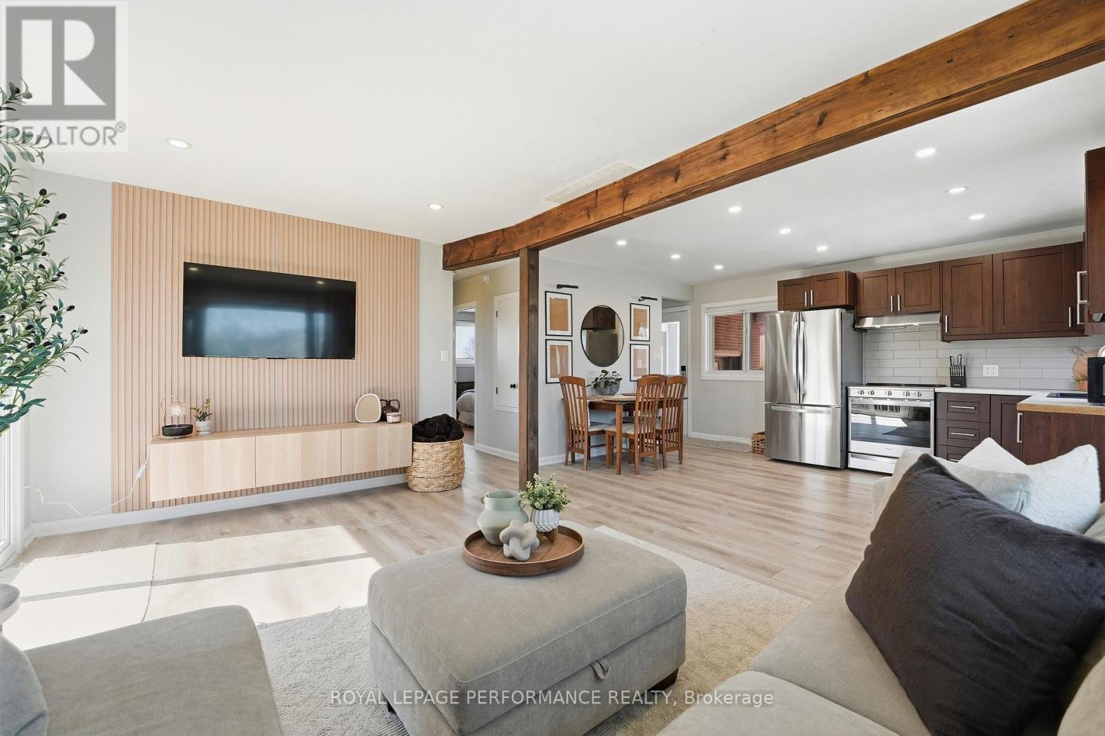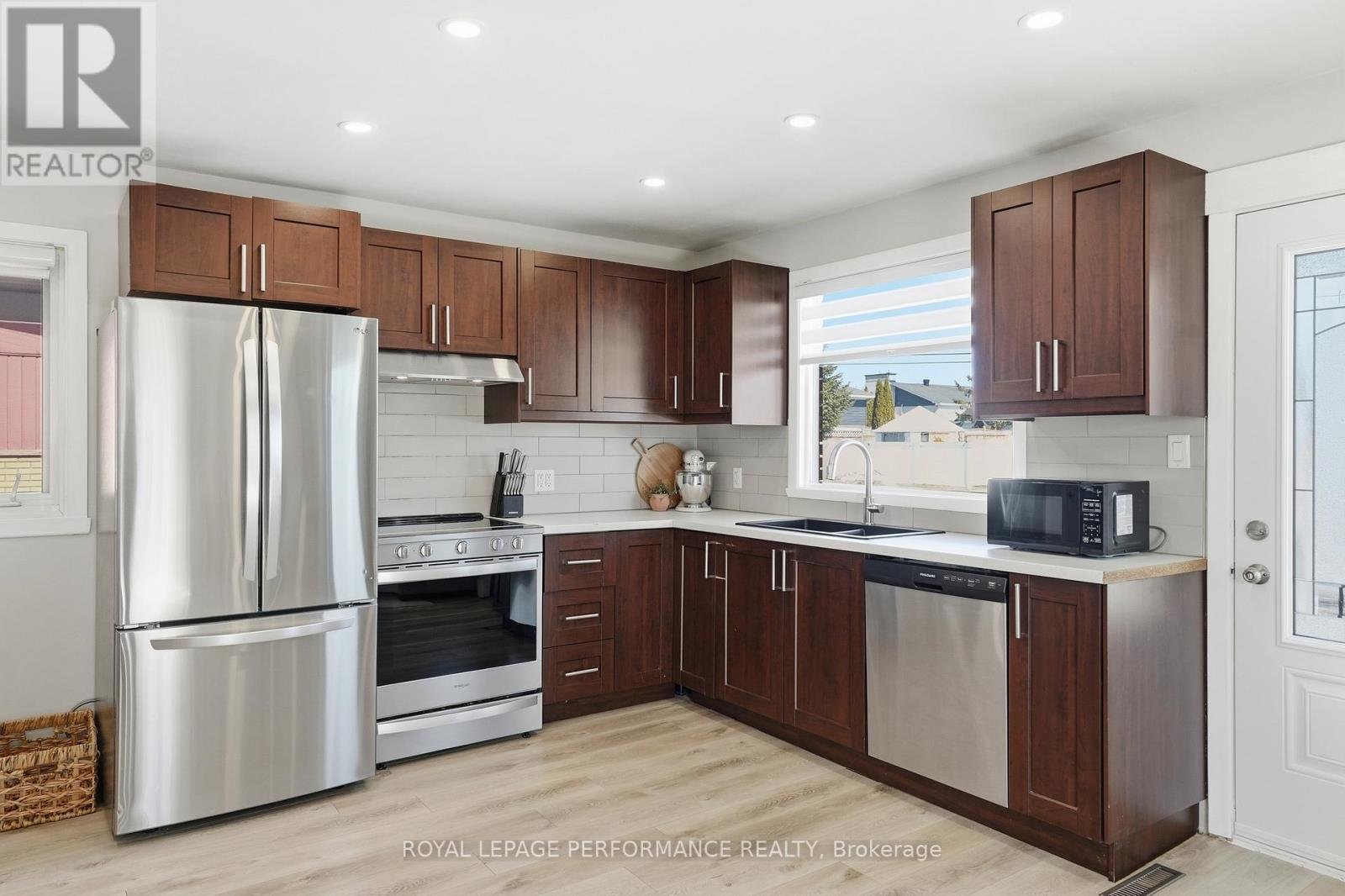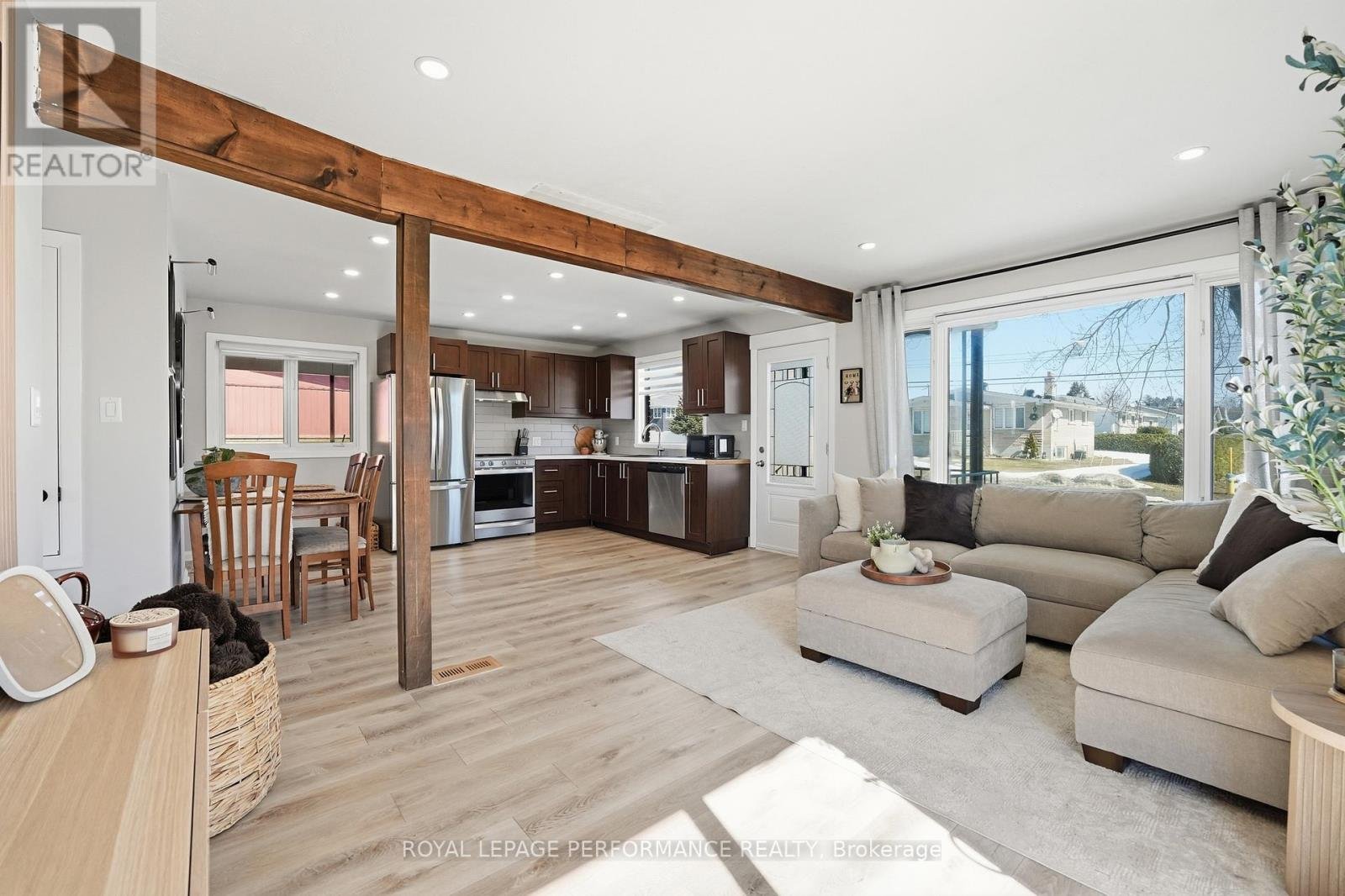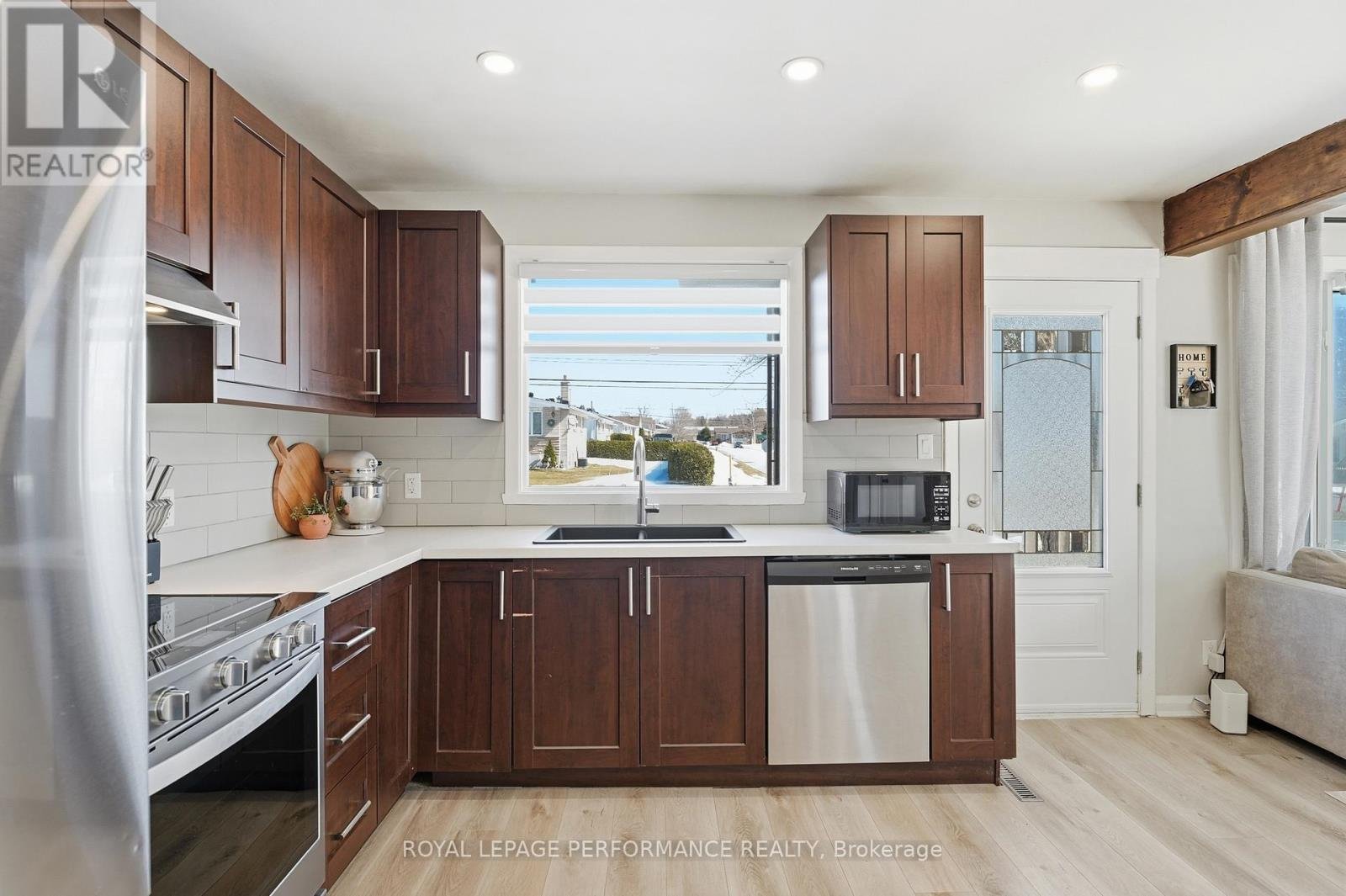This charming 2+1 bedrooms, 2 full bathrooms fully renovated bungalow offers timeless curb appeal with its classic full brick exterior, generous parking area, and the convenience of both a carport and attached oversized single-car garage with high clearance. The home sits on a large 74ftX102ft lot, and is ideally situated within walking distance to shopping on Laurier Street, steps from Laviolette Park, and close to schools. Step inside to a super bright and functional kitchen and living room area featuring pot lights and laminate flooring. Renovated eat-in kitchen with sleek subway tile backsplash, over the sink window and all stainless steel appliances included. The kitchen opens up to the large living room highlighted by accent TV wall and a patio door to the side yard. Down the hall, you'll find 2 well-sized bedrooms (with hardwood flooring) and an updated bathroom with tub/shower combo and quartz countertop. The fully finished basement extends your living space with a spacious recreation room with linear electric fireplace, flex space, third bedroom, cold storage, utility room with additional storage and a convenient renovated bathroom with custom walk-in shower. The side door to the house gives you direct access to the basement, provinding the perfect opportunity for an in-law suite or secondary dwelling unit. Outside, live better with your large west-exposed and fully-fenced-in yard with plenty of space to garden, entertain, and play. This home is a true gem and will fit your lifestyle whether you are a professional, family or retiree. Shingles (2023), Doors, basement windows and garage door (2023), Basement renovation (2024), Upstairs renovation (2025), Owned HWT, Updated electrical panel