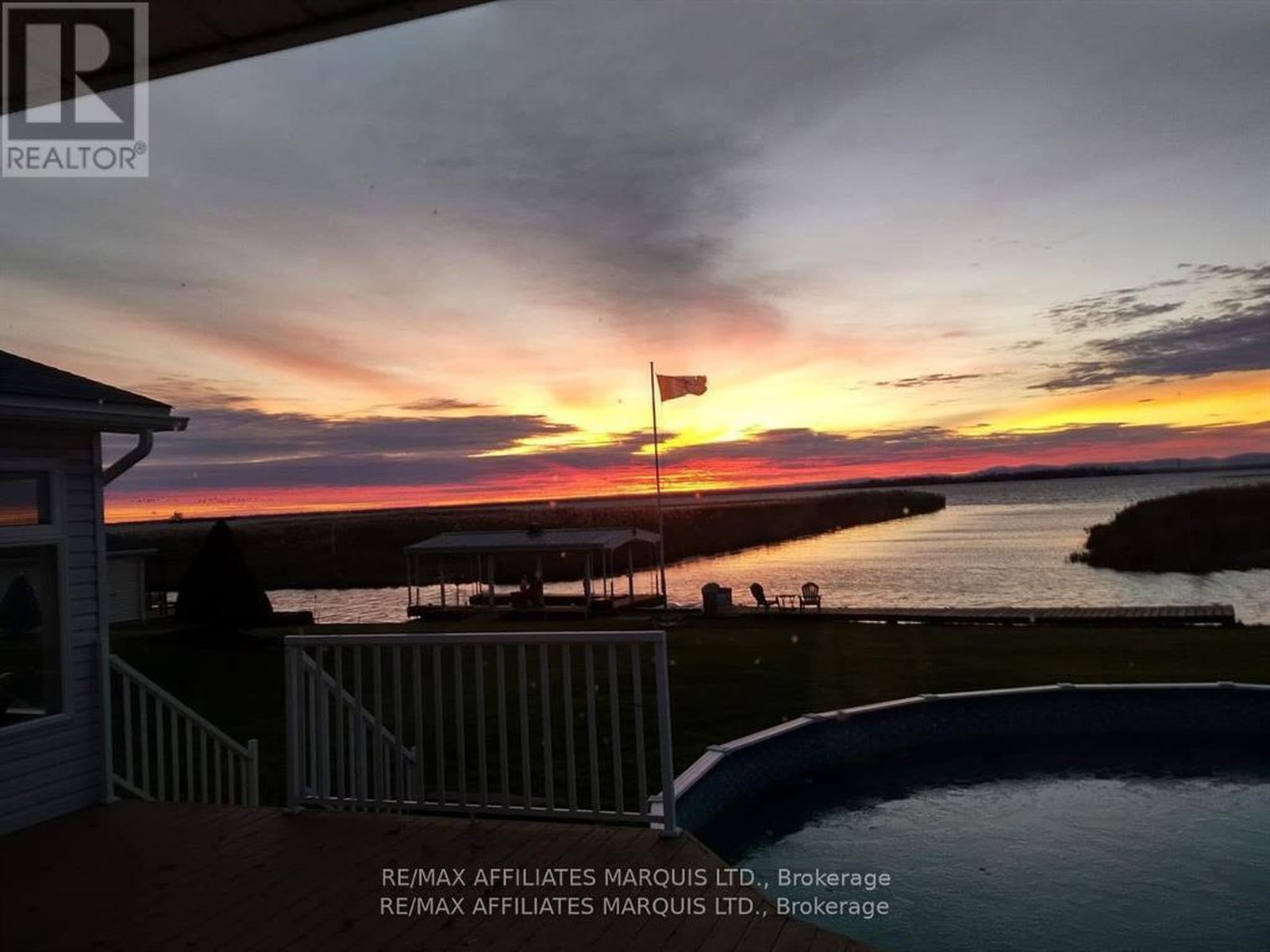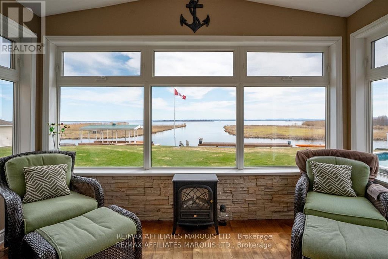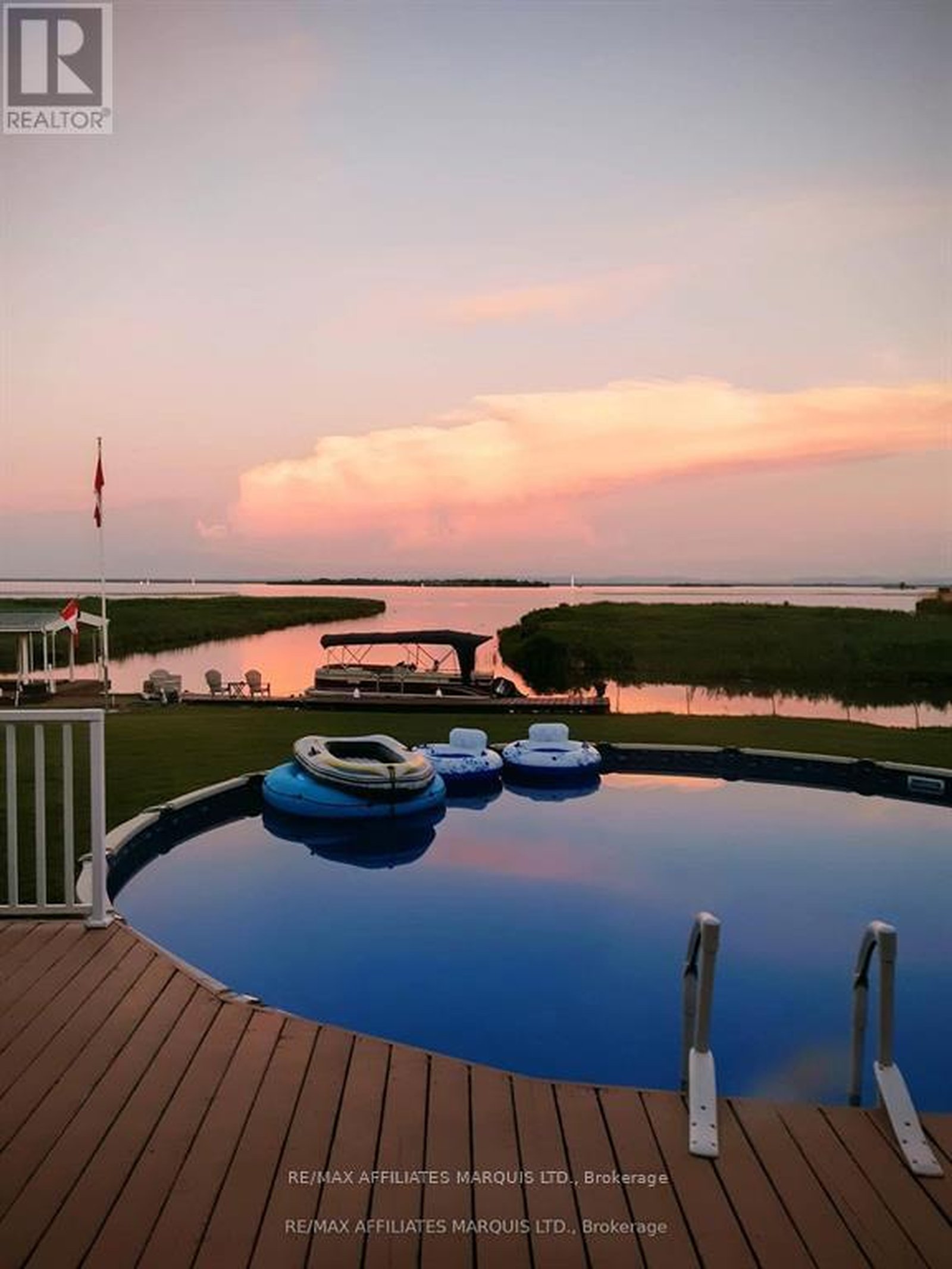 Tree Haven itself, is like a reserve of its own.. its very protected, there's wildlife, only local traffic and I can say first hand that its extremely peaceful and secluded from the noise of Cty Rd 2. Its a small neighborhood of approx 30 homes and its like its own little community. When you sit out, all you hear is birds chirping, while watching Herons, Cranes, Mallards and Geese as they perch on the little island infront of the house and then of course you get to see the ships pass by in the Chanel of the St Lawrence River. Its a fishermans dream location and only a 5-10 mins boat ride to the famous Leblancs Bay. Welcome to your very own waterfront retreat where every morning begins with breathtaking sunrises and uninterrupted views of the majestic Adirondack Mountains. This meticulously maintained 3-bedroom home is a rare gem, designed to capture the beauty of its surroundings from nearly every angle. The main floor features a spacious, well-appointed kitchen perfect for gatherings, a formal living room for cozy evenings, and a stunning 4 season sunroom where walls of windows frame the river like a piece of art. Vaulted ceilings and natural light enhance the airy, inviting atmosphere throughout. The master suite is privately perched on its own upper level, offering a tranquil escape complete with a luxurious ensuite featuring a freestanding tub and direct access to a massive second-storey balcony, an idyllic setting to sip your morning coffee while soaking in the views. Practical features include main floor laundry, an attached garage, and a versatile bonus room at the rear, ideal for a games room, man cave, or seamlessly integrated outdoor entertaining space. The above-ground pool invites summer fun, and the pile-driven dock makes waterfront living a breeze. With no basement to worry about, this home is low-maintenance and worry-free, truly the perfect blend of comfort, style and serenity.