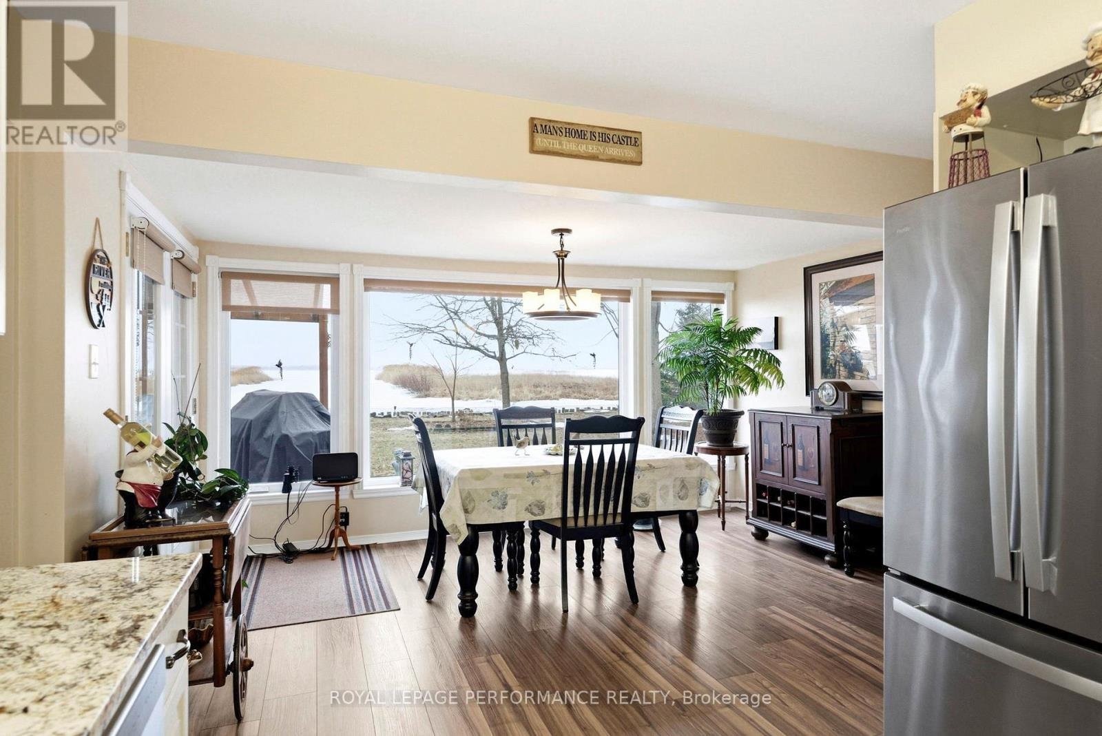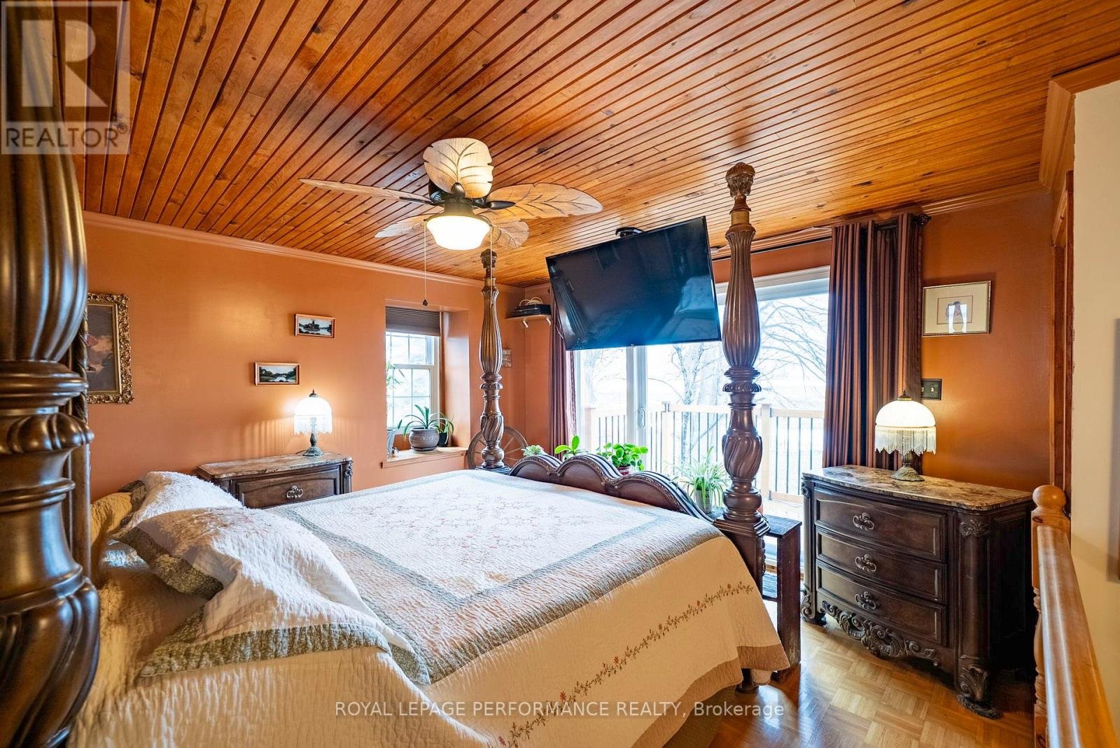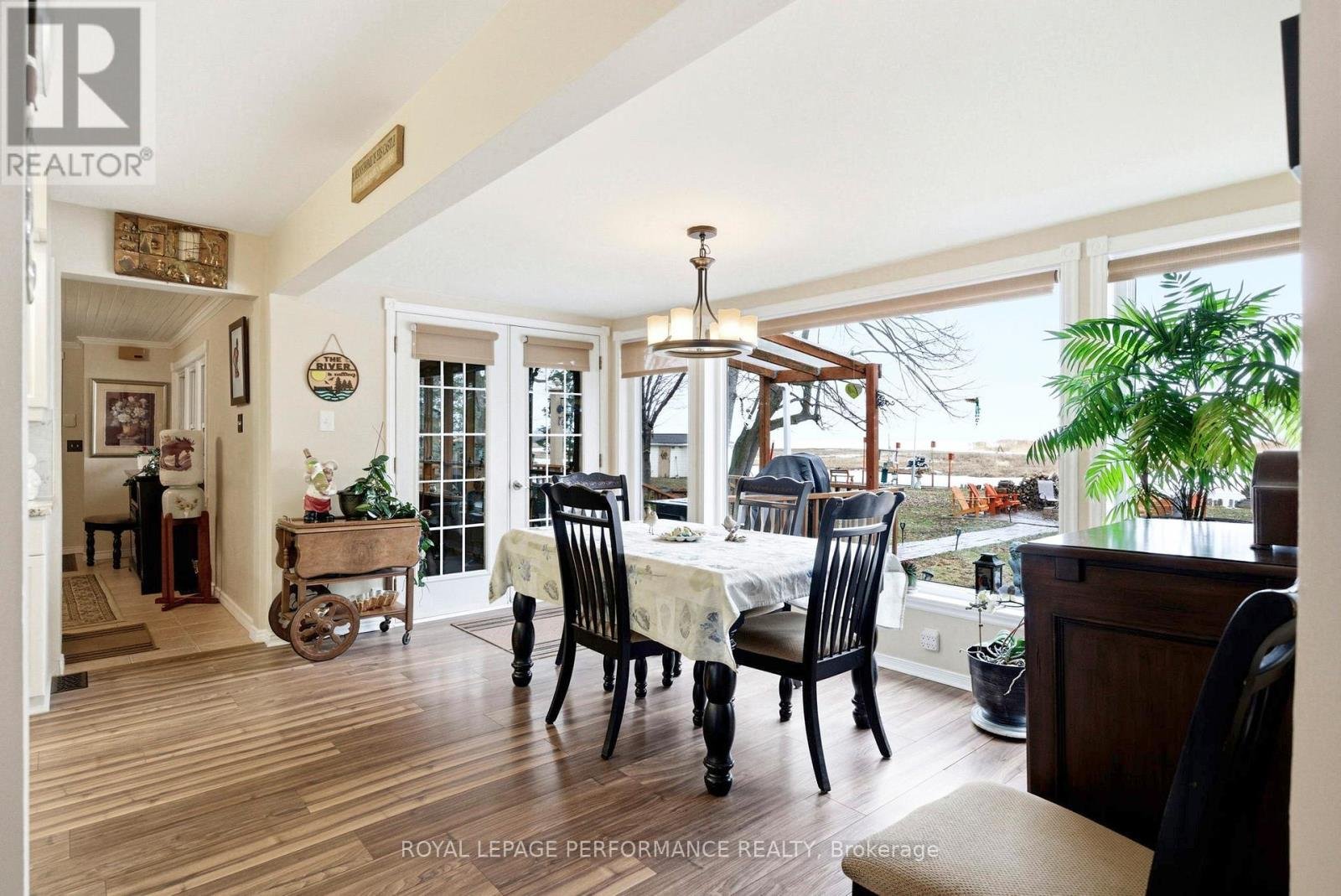 Welcome to your own slice of waterfront paradise, offering an impressive 180 ft of frontage along the majestic St. Lawrence River with breathtaking views stretching to the Adirondack Mountains. From picturesque sunrises to watching ships glide by, this property delivers a front-row seat to one of Ontario's most iconic waterways. A fisherman's or nature lovers playground. Set on a beautifully landscaped half-acre lot, this property is a balanced blend of tranquility and functionality. A quiet canal leads you to your private dock and boathouse, making it ideal for boating enthusiasts and those craving life on the water. The spacious living room and dining area are flooded with natural light thanks to southern exposure and anchored by a cozy propane fireplace, creating the perfect setting for both relaxing and entertaining. The gourmet kitchen with heated flooring features granite countertops and stainless steel appliances. The main level offers two well-appointed bedrooms, a 4pc bathroom, convenient main floor laundry, and a 2pc guest bath. Upstairs, escape to your private retreat in the primary suite, complete with a walk-in closet, 3pc ensuite, and a private balcony overlooking the river-your morning coffee will never be the same. Step outside and enjoy the best of outdoor living with a screened-in rear porch, plus evenings around the stone fire pit surrounded by nature and serenity. The property also features a double car garage, paved driveway with ample parking, a charming log workshop/potential bunkie or creative space, and three additional sheds for all your storage needs. Located just minutes from marinas, camping, and recreation, and offering a quick commute to Lancaster with easy access to Highway 401, this is waterfront living without compromise. A rare opportunity to own a riverfront property-where every day feels like a getaway. *Some photos have been virtually staged. *As per Seller direction allow 24 hour irrevocable on offers.