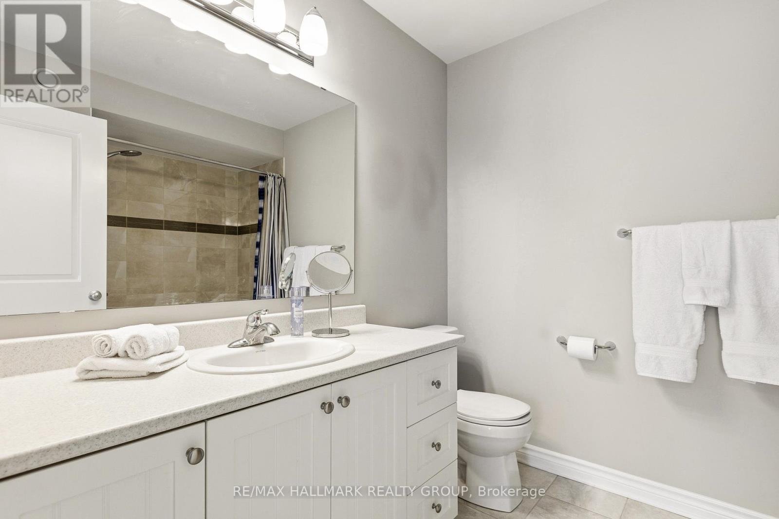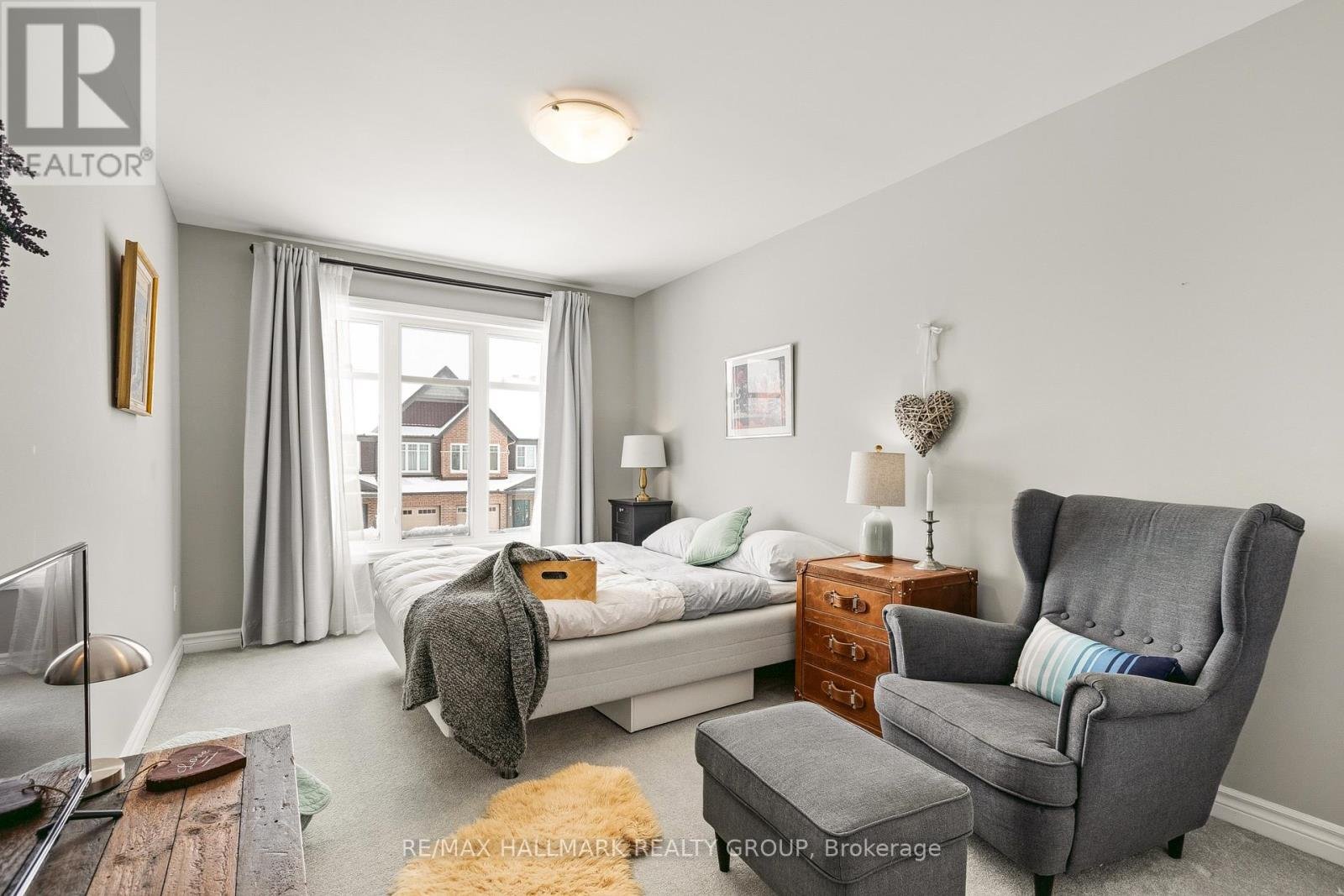 Beautifully upgraded end-unit townhome on a premium corner lot in the heart of Findlay Creek, offering over 2,200 sq ft of finished living space and exceptional privacy with green space beside the home. This modern, open-concept layout is filled with natural light thanks to additional end-unit windows and features high-end finishes throughout. The main floor showcases hardwood flooring, a Modern kitchen with quartz countertops, stainless steel appliances, and extensive cabinetry, flowing seamlessly into spacious living and dining areas ideal for everyday living and entertaining. Inside entry from the garage leads into a practical mudroom with closet space, perfect for keeping things organized year-round. Upstairs, you'll find three well-sized bedrooms including a large primary retreat with walk-in closet and a 5-piece ensuite featuring a soaker tub and separate shower, along with convenient second-floor laundry. The fully finished basement adds valuable living space with a cozy gas fireplace, ideal for a family room, home office, or media area. Enjoy a massive backyard rarely found in townhomes, along with the added curb appeal of full side brick-a premium builder upgrade. Located just steps to parks, top-rated schools, walking trails, shopping, and transit, this is a move-in ready home in one of Ottawa's most desirable family-friendly communities. Book your private showing today.