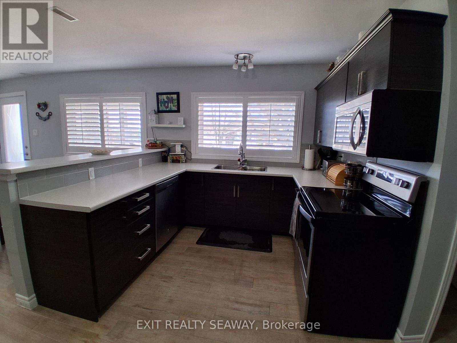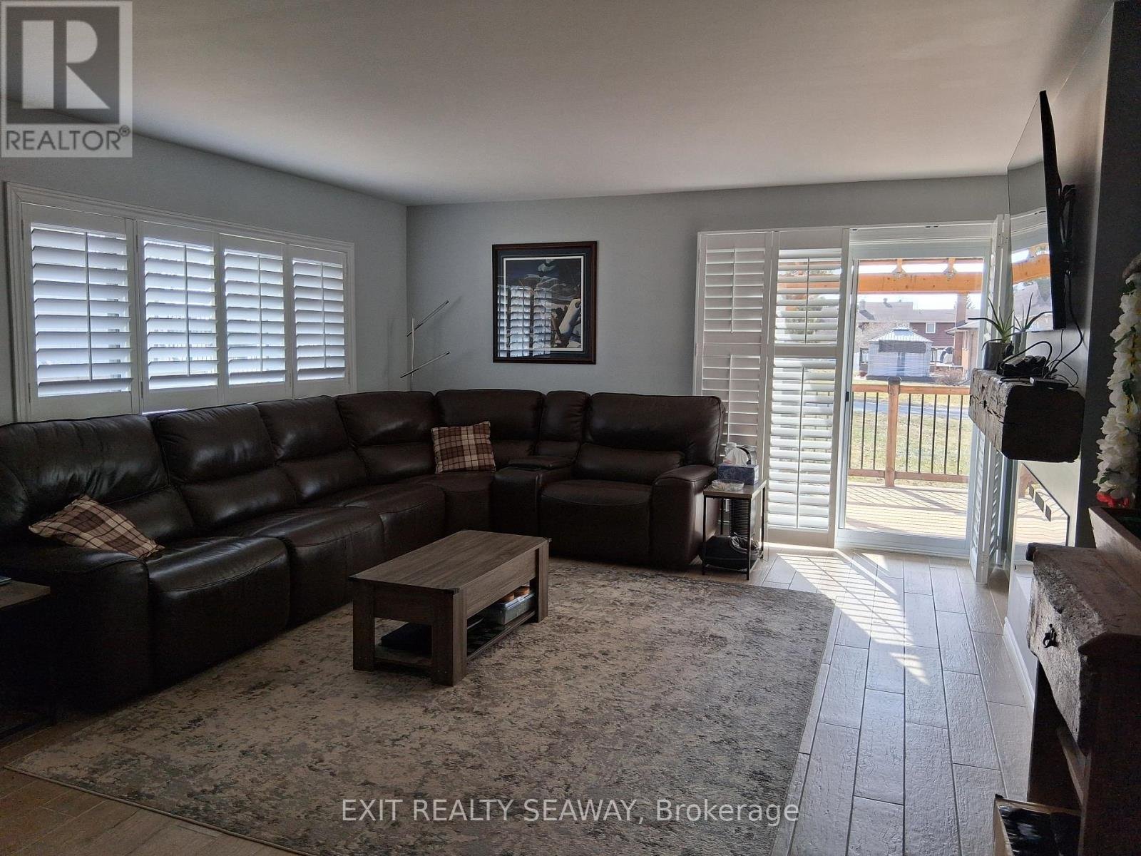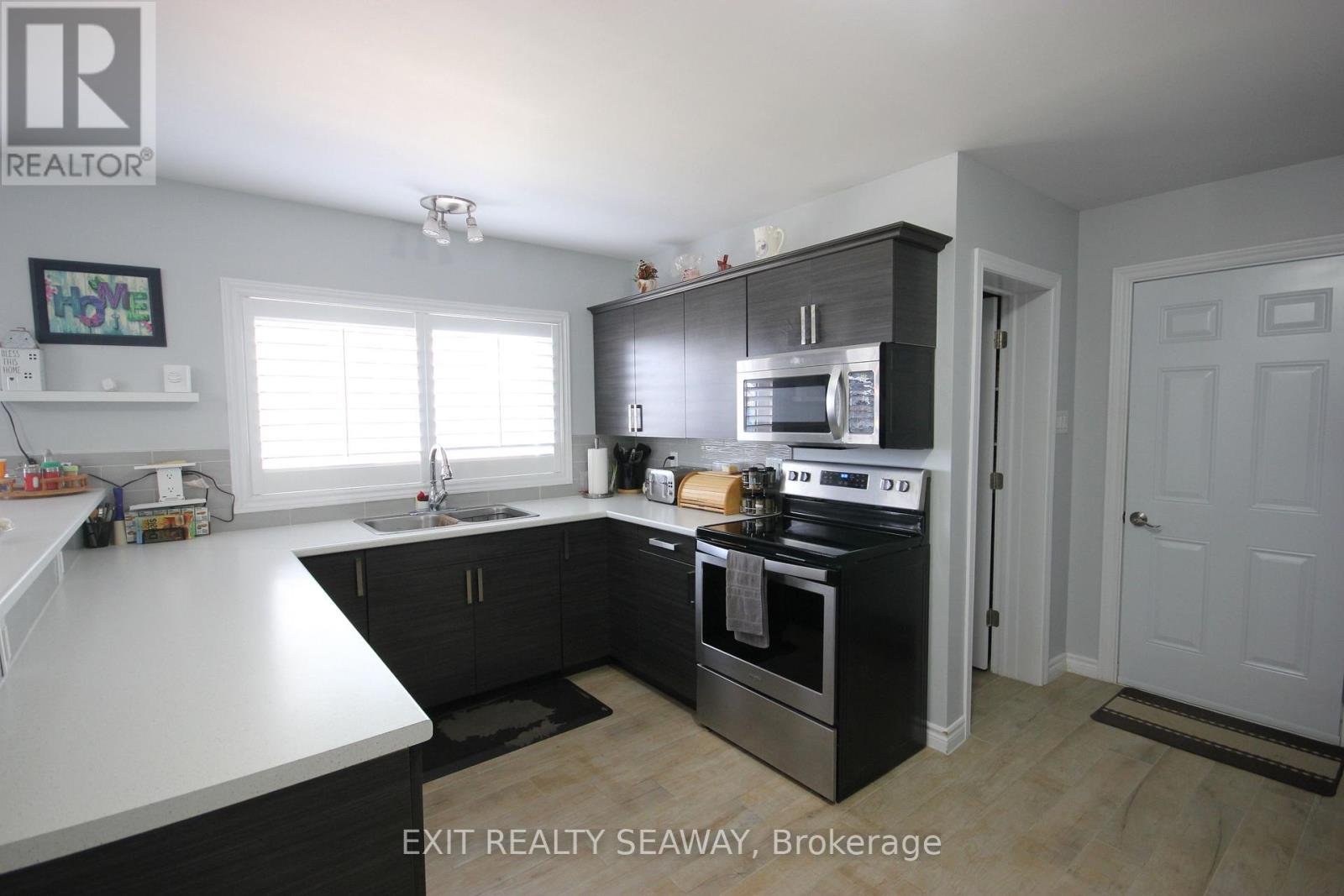 Welcome to this well-maintained 3-bedroom bungalow offering the ease and comfort of one-level living, ideally located backing onto the Cornwall Golf and Country Club 18-hole course, an excellent feature for golf enthusiasts and those who appreciate a desirable, established setting. This inviting home features an open-concept kitchen and dining area, perfect for both everyday living and entertaining. The bright living room is enhanced by an electric fireplace with a striking hand-hewn barn beam mantel, adding warmth and character, along with a patio door leading directly to the wrap-around deck for seamless indoor-outdoor living. The layout includes three bedrooms, with a guest room featuring a lovely corner window that fills the space with natural light. The primary bedroom offers a convenient 2-piece ensuite, while a full bathroom serves the remainder of the home. Wide hallways and main floor laundry add to the overall convenience and accessibility of this thoughtfully designed layout. Step outside to enjoy the wrap-around deck, ideal for relaxing or entertaining. The fenced backyard offers privacy, while mature trees on the property contribute to the home's overall charm and setting. An attached single garage and a driveway accommodating up to four vehicles provide ample parking. A new metal roof installed in October 2025 adds further value and peace of mind. This property presents a wonderful opportunity to enjoy low-maintenance living in a sought-after location with the added benefit of backing onto one of Cornwall's premier golf courses.