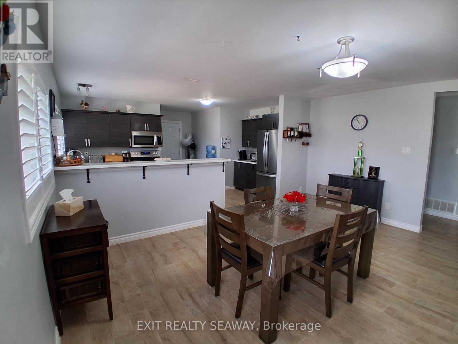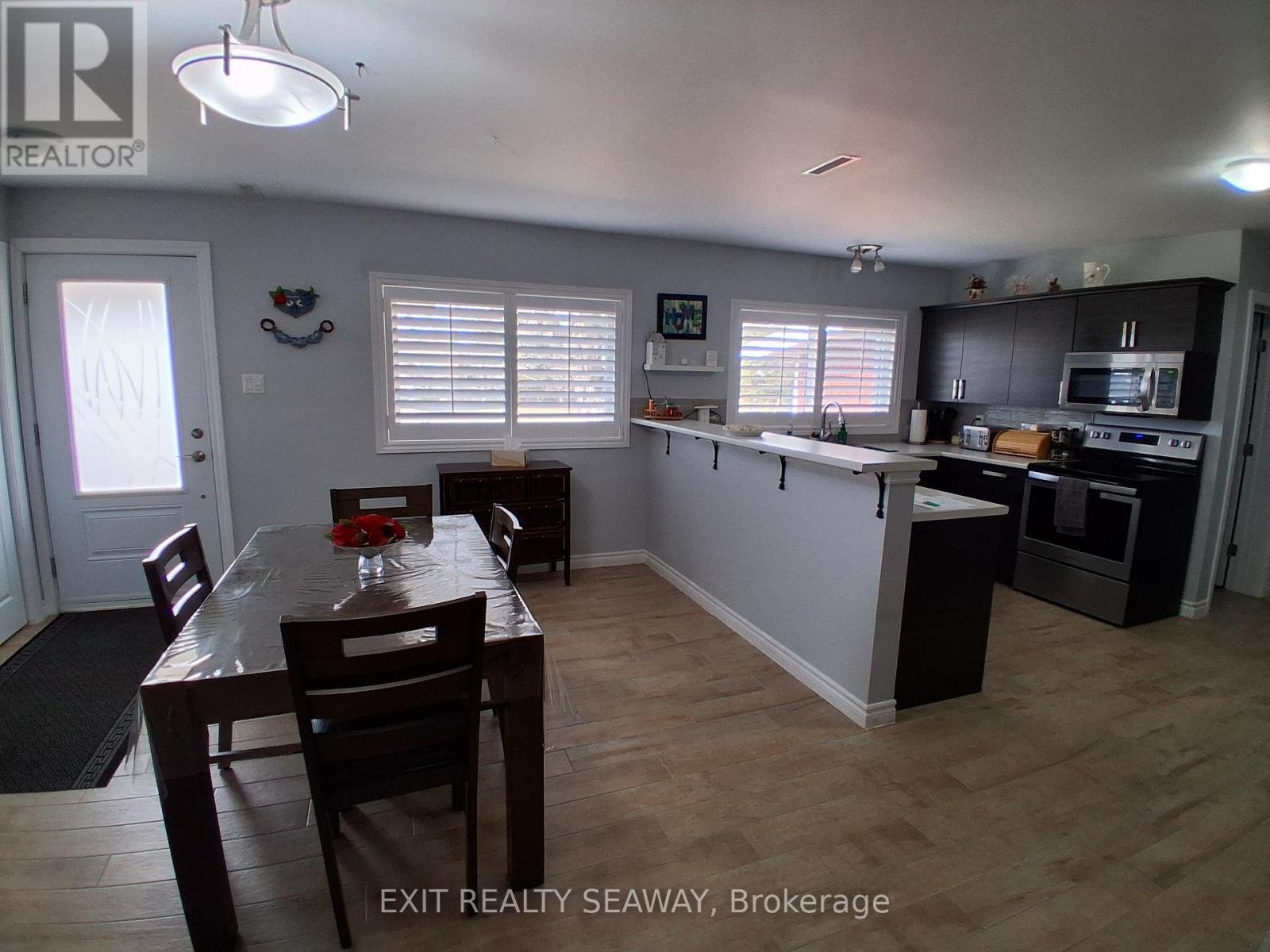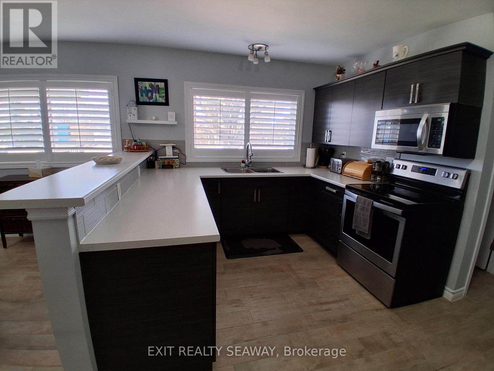 Welcome to this well-maintained 3-bedroom bungalow offering the ease and comfort of one-level living, ideally located backing onto the Cornwall Golf and Country Club 18-hole course, an excellent feature for golf enthusiasts and those who appreciate a desirable, established setting. This inviting home features an open-concept kitchen and dining area, perfect for both everyday living and entertaining. The bright living room is enhanced by an electric fireplace with a striking hand-hewn barn beam mantel, adding warmth and character, along with a patio door leading directly to the wrap-around deck for seamless indoor-outdoor living. The layout includes three bedrooms, with a guest room featuring a lovely corner window that fills the space with natural light. The primary bedroom offers a convenient 2-piece ensuite, while a full bathroom serves the remainder of the home. Wide hallways and main floor laundry add to the overall convenience and accessibility of this thoughtfully designed layout. Step outside to enjoy the wrap-around deck, ideal for relaxing or entertaining. The fenced backyard offers privacy, while mature trees on the property contribute to the home's overall charm and setting. An attached single garage and a driveway accommodating up to four vehicles provide ample parking. A new metal roof installed in October 2025 adds further value and peace of mind. This property presents a wonderful opportunity to enjoy low-maintenance living in a sought-after location with the added benefit of backing onto one of Cornwall's premier golf courses.