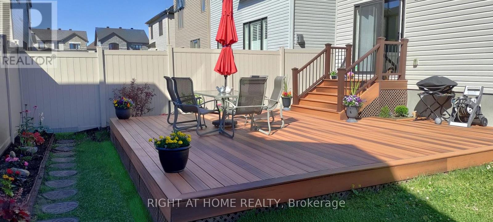 Meticulously maintained 3-bedroom, 3.5-bathroom Valecraft home ideally located in the popular community of Stittsville South, close to trails, parks, schools, and amenities. The welcoming main level features a spacious foyer with a large closet, garage inside entry, and a powder room. A bright dining area flows seamlessly into a versatile office/ den. The open-concept gourmet kitchen is offering a large island, breakfast nook, SS appliances, and abundant cabinetry. The spacious living room is filled with natural light and highlighted by cathedral ceilings and a cozy fireplace, creating a warm and inviting atmosphere. Upstairs, a beautiful staircase leads to the generous primary bedroom, complete with a walk-in closet and a modern en-suite bath. Two additional well-sized bedrooms, a stylish 4-piece family bathroom, and a convenient second-floor laundry room provide comfort and practicality for everyday living. The finished basement expands your living space with a large recreation room, a full 4th bathroom, and plenty of storage. Step outside to enjoy the private backyard featuring a large deck. Thoughtfully updated and move-in ready, this beautiful home offers the perfect blend of space, style, and location - an exceptional opportunity to enjoy comfortable family living.