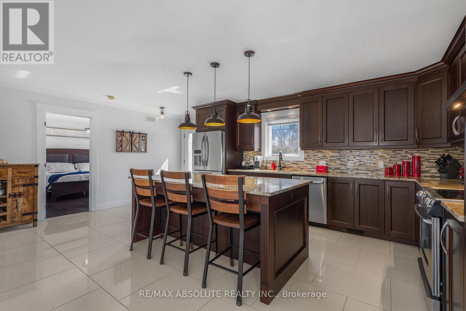 A beautifully maintained custom-built home offering over $100,000 in thoughtful upgrades over the past five years, designed for comfort and peace of mind. Set on a quiet road with easy access to Highway 174, this property offers the perfect blend of peaceful country living and convenient commuting-ideal for those looking to enjoy a more relaxed lifestyle without sacrificing accessibility. The main level features a bright, open-concept layout with rich hardwood floors and a warm, inviting atmosphere. The chef-inspired kitchen offers ceiling-height cabinetry, granite countertops, and a large island, perfect for hosting family or enjoying everyday meals with ease. Designed with practicality in mind, the main floor includes a spacious primary bedroom with a private ensuite and adjacent walk-in room, along with a second full bathroom that conveniently incorporates laundry-allowing for true main-floor living. The fully finished basement provides flexible additional space with two bedrooms, a full bathroom, and a large family room-ideal for visiting family, hobbies, or a comfortable guest setup, along with plenty of storage. Outside, enjoy a fully landscaped and private hedged backyard, complete with a screened and covered gazebo for relaxing or entertaining in comfort. The durable composite decking, metal roof, and backup generator all contribute to a low-maintenance, worry-free lifestyle. The oversized double garage is heated and features polished concrete floors, offering excellent space for vehicles, storage, or projects. A detached shed adds even more practical storage. A rare opportunity to enjoy easy living in a thoughtfully upgraded home, in a quiet and desirable setting.
