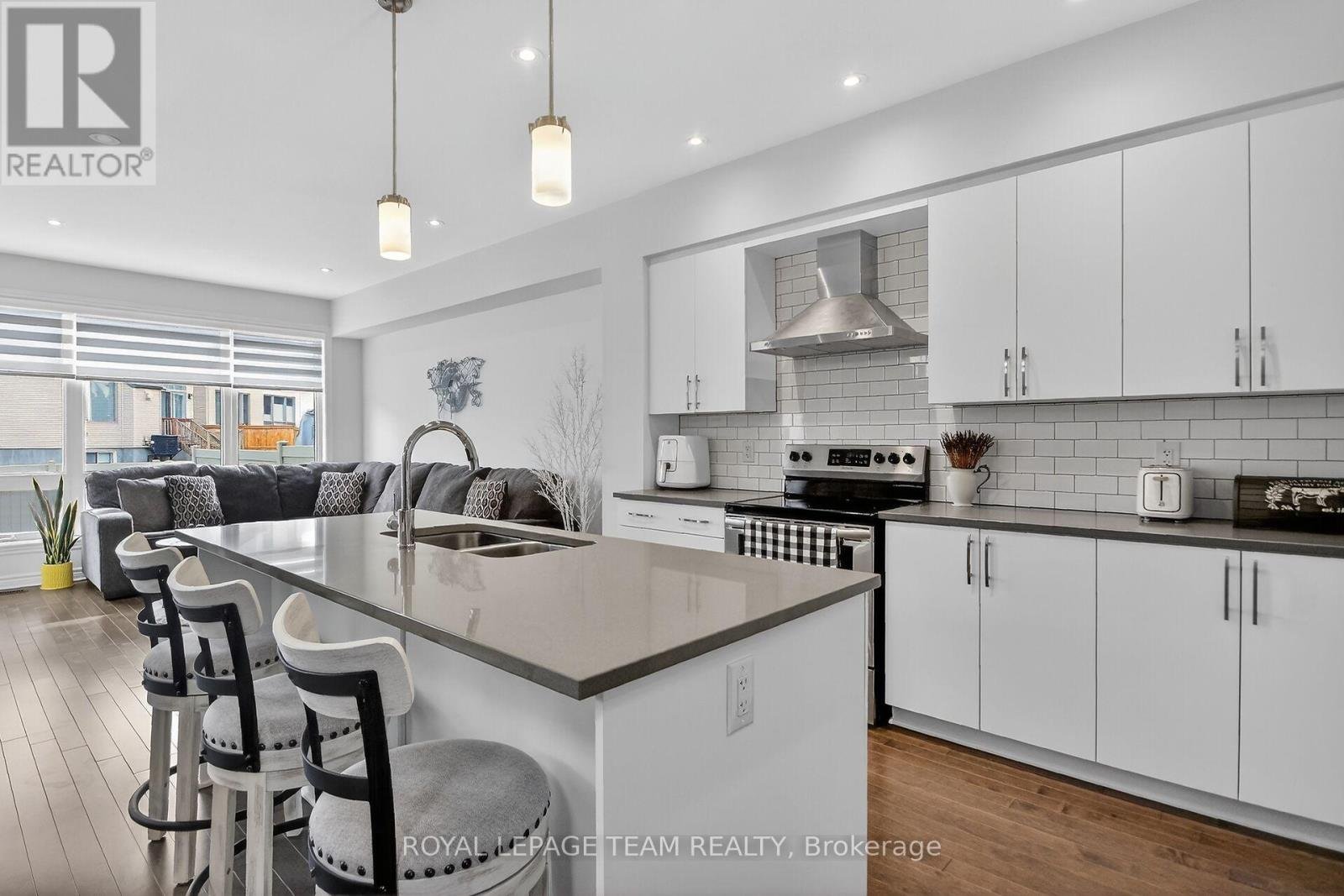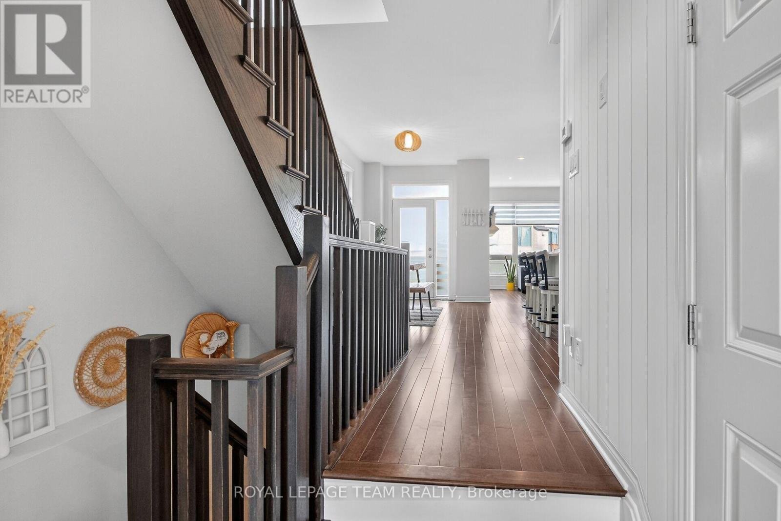 Beautifully maintained 3-bedroom townhome in sought-after Riverside South that shows like a new home, offering over $45,000 in upgrades and a premium lot backing onto a pie-shaped yard, providing added privacy. The main floor features 9 foot ceilings, a stunning kitchen with quartz countertops, a large island, ample counter space, generous cabinetry, and a spacious pantry, flowing into a bright dining area with a door leading to the large fully fenced backyard. The inviting living room is filled with natural light from large windows, features a beautiful gas fireplace, and includes custom blinds. A welcoming foyer with professionally done wood panel accent wall and convenient powder room complete this level. Upstairs, the spacious primary bedroom is filled with natural light and features a luxurious 5-piece ensuite with double sinks, stand alone shower, and a large soaker tub, along with a sizeable walk-in closet. Two additional well-sized bedrooms, a stylish main bathroom, and a conveniently located laundry room complete the upper level. The finished basement offers additional living space, bathroom rough in along with plenty of storage. Located close to parks, schools, shopping, recreation facilities, trails, the LRT, and the scenic Rideau River, as well as the airport. 24 hours irrevocable on all offers.