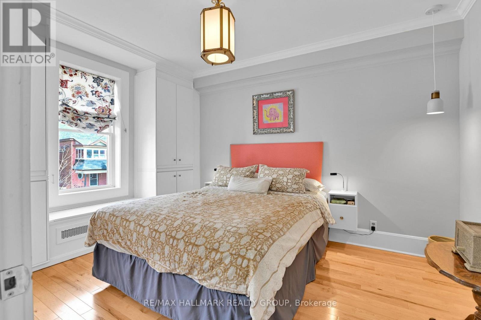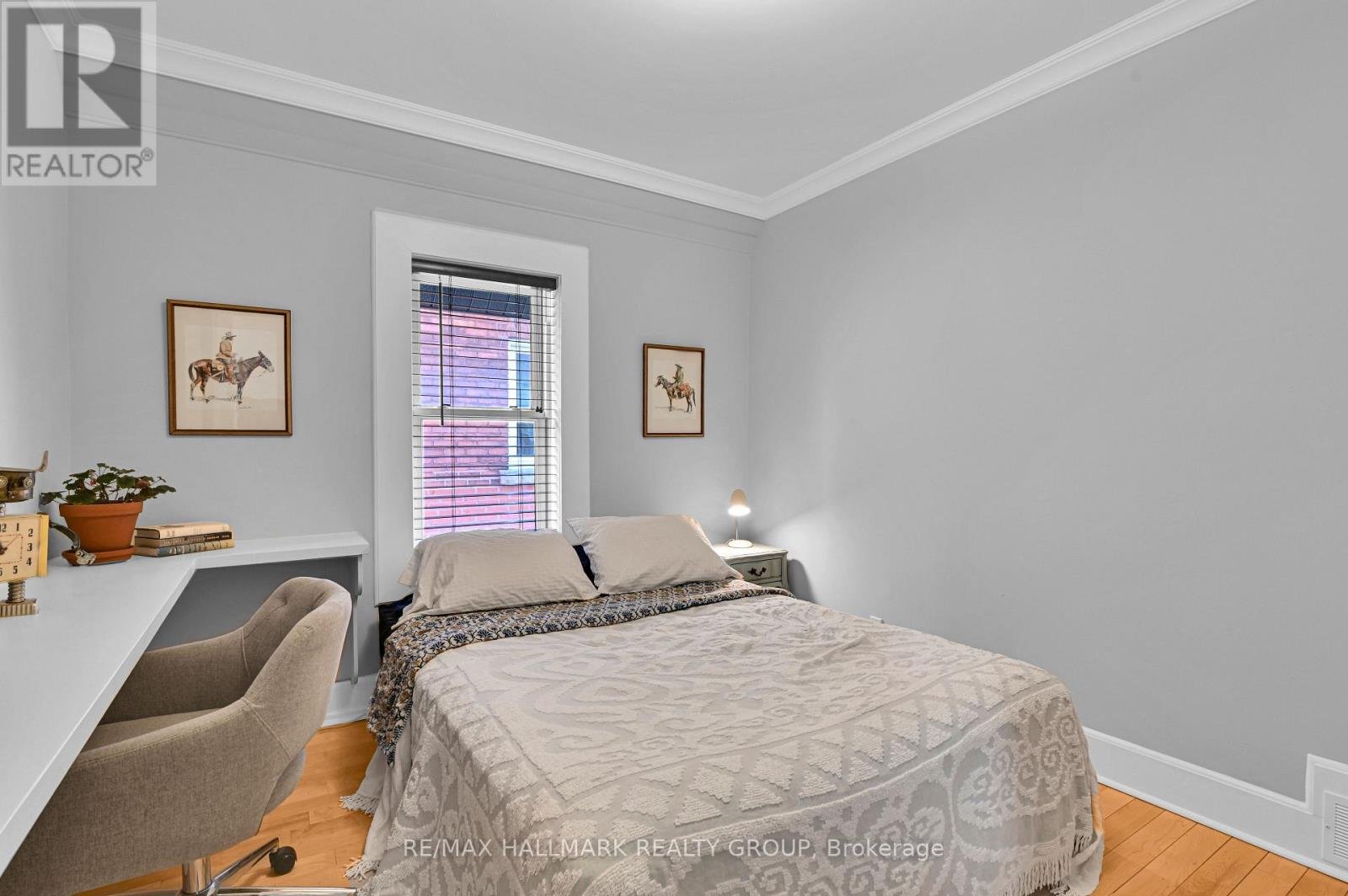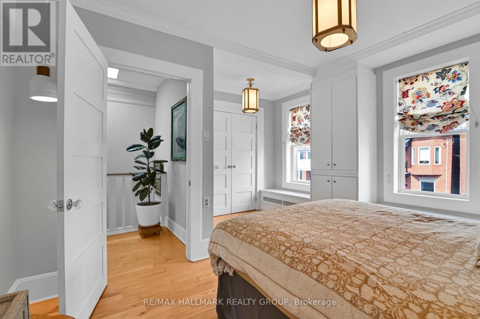 Ideally located in the heart of Ottawa, this charming two-storey home offers 3 bedrooms and 2 full bathrooms, blending timeless character with thoughtful upgrades in a turnkey package. Just steps to excellent schools, vibrant amenities, and scenic pathways, it delivers both lifestyle and convenience. Rich in classic detail, the interior features hardwood floors, high ceilings, elegant mouldings, and custom trim work throughout. The main floor offers separate living and dining rooms with beautiful, coved ceilings and extensive built-ins-perfect for books and curated pieces. The dining room is both stylish and functional, with built-in bench seating and shelving ideal for storing books, CDs, and albums. The eat-in kitchen is designed for everyday living and entertaining, featuring generous counter space, a pantry, two prep areas, and inviting built-in seating-perfect for gathering with family and friends. Off of the kitchen is the convenient laundry closet with full sized appliances + storage. Upstairs, three well-appointed bedrooms each include custom built-ins. The primary offers ample closet space, while the third bedroom features a Murphy bed, ideal for guests or a home office. A beautifully renovated full bathroom completes the level. The lower level adds versatility with a workshop/artist studio and a full bathroom, with potential to convert into a media room, gym, or guest suite. Outdoor living shines with a fully decked backyard, including a partially covered upper deck and a fenced lower area with lighting-perfect for entertaining, kids, or pets. A covered front verandah offers a welcoming place to relax. Additional highlights include rare two-car tandem parking, a lifetime metal roof, and meticulous upkeep throughout. A perfect blend of character, function, and modern comfort.