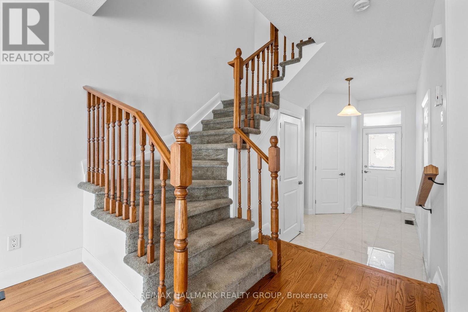 Welcome to 988 Lucille Way, a beautifully maintained 2 Bed plus loft, 2.5 Bath home tucked away on a quiet street in the highly desirable Notting Hill-Summerside community of Orleans. With its charming brick exterior, welcoming front porch, single-car garage, and private driveway, this home offers the perfect blend of comfort, style. Step inside to a bright foyer finished w/durable porcelain tile, a custom-built closet & a modern powder room. As you move further in, the home opens into a warm & functional living space, where rich hardwood floors flow throughout. Living room, anchored by a cozy fireplace, seamlessly connects to the dining area, creating an open layout that feels both spacious and welcoming. Fully renovated kitchen is thoughtfully designed for both function & style, featuring solid maple cabinetry, sleek quartz countertops, double sink & SS appliances. Additional wall cabinetry & enhanced lighting provide exceptional storage and workspace. Upstairs, new hardwood flooring continues throughout, adding a fresh & cohesive feel. Spacious primary bedroom offers a private retreat w/beautifully updated 3-pcs ensuite, complete with walk-in glass shower & elegant gold accents & walk-in closet. Second bedroom features a custom-built closet, while the main bathroom is finished with modern touch, incl a tub & matching gold accents. A standout feature of the upper level is the bright, airy loft filled with natural light throughout the day. With custom built-in shelving, this space is perfectly suited as a private home office. The fully fenced maintenance free backyard extends your living space outdoors, featuring a deck & gazebo. Located just minutes from shopping, Millennium Park & Ray Friel Recreation Complex, this home offers an exceptional lifestyle in a well-connected, family-friendly neighbourhood. Whether you're a young couple or a growing family, 988 Lucille Way delivers the space, storage, and thoughtful upgrades you've been looking for.