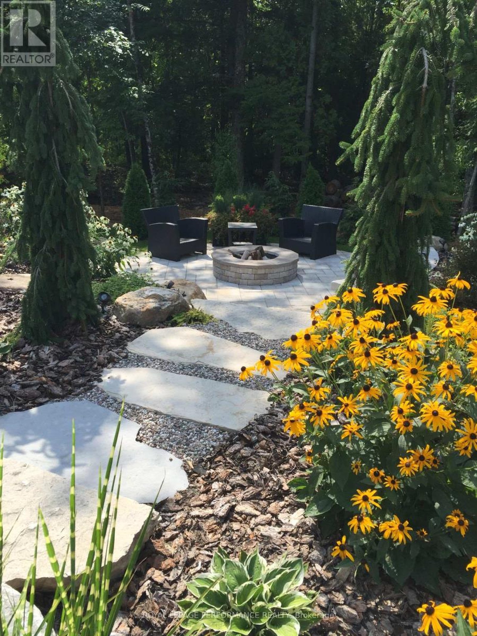 Welcome to this impeccable bungalow, ideally located in the area's most sought-after Heritage Estate. Set on a professionally landscaped lot, the property features curated flower beds throughout, inviting stone-framed fire pit area, and a peaceful natural setting. Exceptional privacy meets charm with a brick-covered porch-perfect for unwinding and taking in the surroundings. Inside, you'll find a bright and spacious open-concept layout featuring a formal dining area, expansive living room, and a stunning kitchen with additional eating area, cathedral ceilings and oversized windows that flood the home with natural light. The main floor offers three generously sized bedrooms, each with its own walk-in closet, along with a convenient mudroom and plenty of storage for everyday functionality. The property also features a double garage with durable resin flooring, combining practicality with a clean polished finish. The partially finished lower level provides a massive space on luxury vinyl flooring with endless potential-ideal for additional bedrooms, a family room, and a ready future bathroom. This property is like new and has been impeccably maintained inside and out. A perfect blend of luxury, comfort, space, and location-this home is truly a rare find. One visit will convince you.