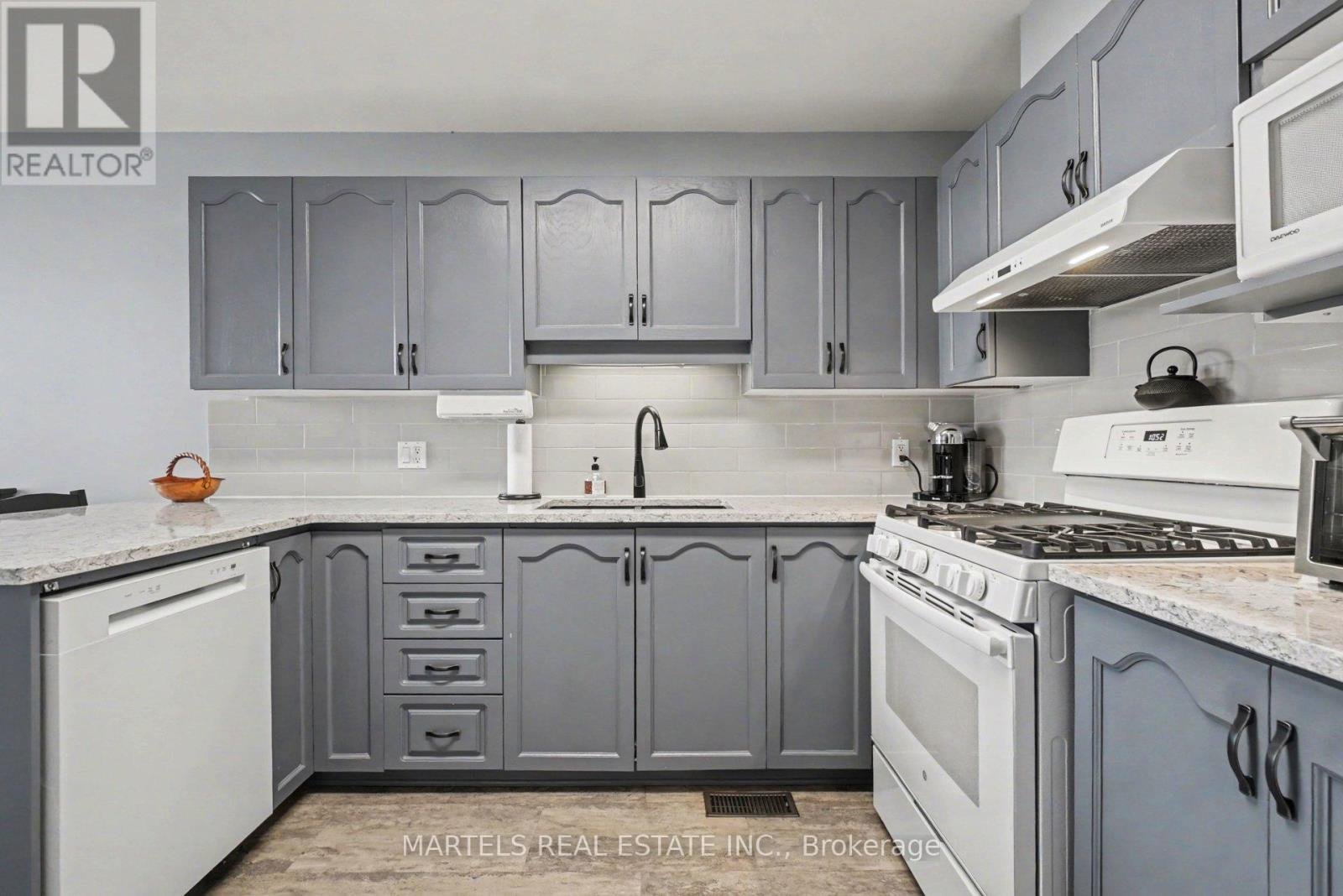 LOCATION! Welcome to sought-after Notting Hill, 1 of Orleans' most CONVENIENT family-oriented areas! Easy access to HWY 174, Innes Rd, transit, parks, schools, grocery stores, shopping & everyday services. Walk 9 mins to Millennium Plaza & Park on Trim Rd w/Sobeys, LCBO, cafés, restaurants, fitness centres, soccer/football fields... Steps to Provence Pk w/tennis & basketball crts, splash pad, gazebo & hockey fun off Scala. CURB APPEAL & UPGRADES GALORE! A FABULOUS END UNIT w/pizzazz, a sexy layout, lovely front porch w/metal railing, re-landscaped front & back, added trees for privacy/shade, perennial boxes, fenced yard, shed & recently redone 2-tier pressure-treated deck, great for BBQ & outdoor enjoyment. INSIDE! A revamped home from top to bottom w/pride of ownership evident throughout! Over 55K UPGRADES: NO CARPETS! Ceramic & hardwood flrs 1st & 2nd incl. stairs w/oak railing to upstairs new flrs, flat ceilings except 2 bds, decora switches, upgraded lights/fans, hi-eff toilets, neutral décor.. OPEN CONCEPT LR/DR w/soaring cathedral ceiling, palladium window, west exposure & abundant natural light. The well-appointed kitchen/eat-in area offers professionally painted cabinetry, quartz counters incl breakfast counter, undermount sink & tap, ceramic backsplash, new flr, all new appl's incl gas stove & patio drs to deck. Adjacent living rm with corner gas fplace & picture window. UPSTAIRS! Double doors lead to the primary bd w/walk-in closet & thoughtfully enhanced ensuite w/large shower w/glass drs. Good sized secondary bd/versatile loft w/window, a rare find, ideal for office or easily converted to 3rd bd + updated main bath. LOWER LEVEL! Recently completed in '25 w/French dr down to family rm, laminate flr, large window, laundry/storage - ideal retreat for kids or extra living. UPDATES:Roof & gar opener'18, fresh exterior paint'26, furnace & C/Air'19, kitchen & all baths'19-21, custom blinds '22, driveway resealed & lower level '25. Package avail.A GEM! TURN KE