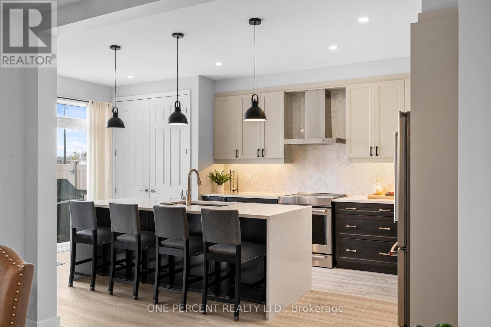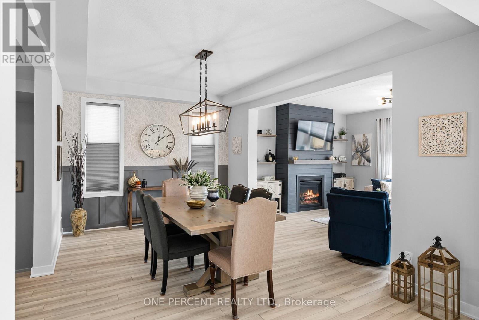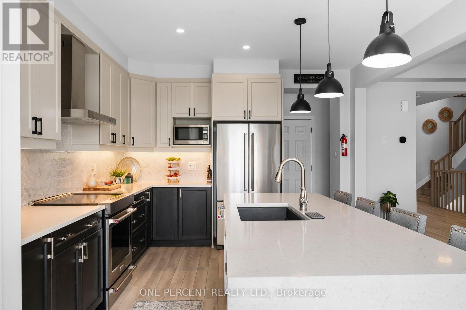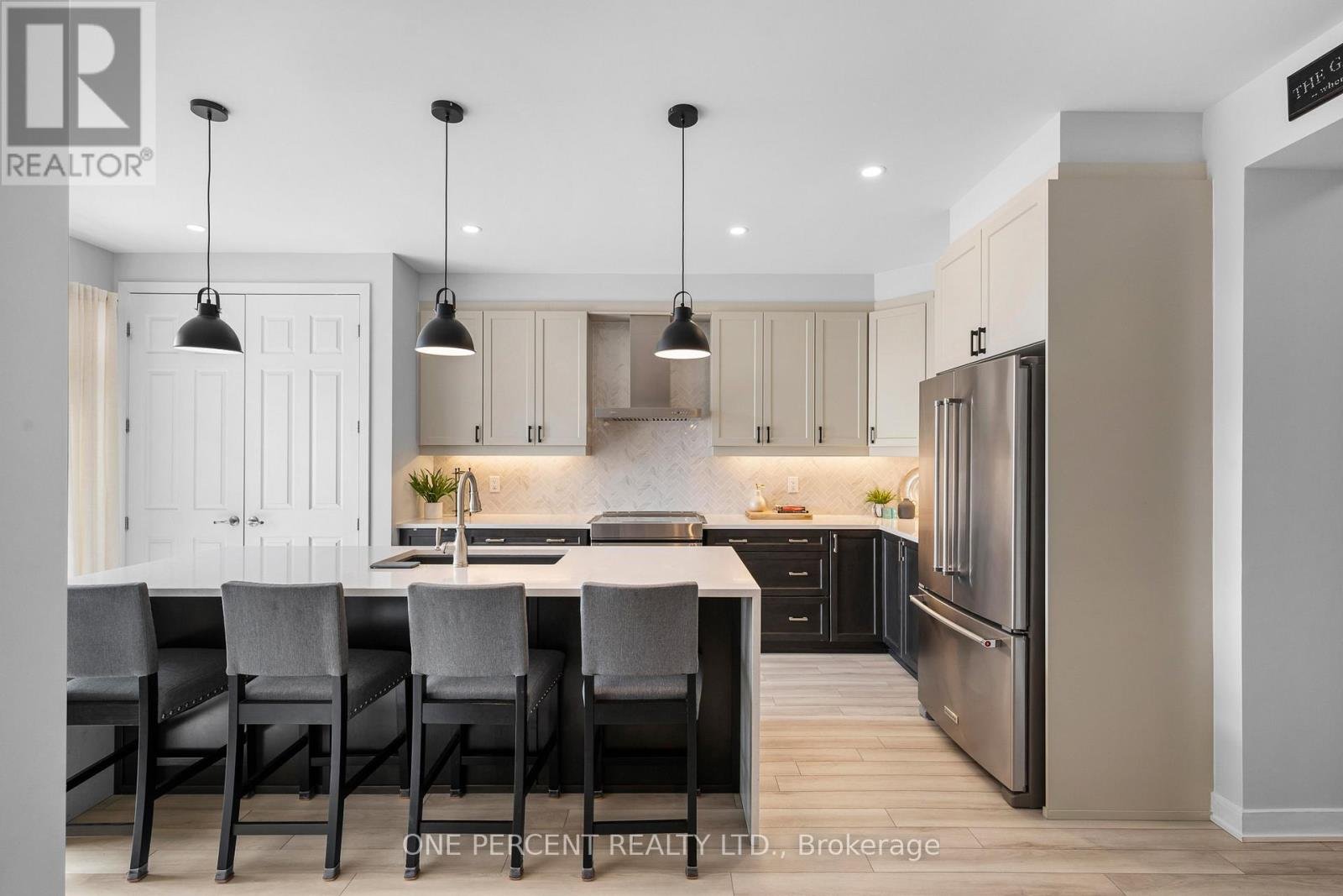 Finished like a showhome on a premium ravine lot with no rear neighbours, this Mattamy Sycamore delivers over 2,400 sq. ft. of above-grade living where no detail was overlooked. For families who want a home that turns heads and functions effortlessly, this one delivers: an open-concept layout, beautiful finishes, and the kind of style most people only see in magazines. The main floor flows naturally from a spacious dining room into a cozy living room with a stylish shiplap fireplace, abundant natural light, and in-ceiling speakers. The kitchen is a true focal point, built for those who value beauty as much as function: two-tone cabinetry, a waterfall island with a black granite sink and seating for four, a herringbone tile backsplash, quartz countertops, stainless steel appliances including an induction cooktop, and a double-door pantry. Oversized patio doors extend the space outdoors to a private, landscaped, fully fenced yard with a large interlock patio and gas BBQ hookup, made for entertaining. A vaulted loft with a built-in den gives the upper level a sense of space most homes this size simply don't have. The primary suite is a true retreat, with an oversized walk-in closet and a spa-inspired four-piece ensuite featuring double undermount sinks, quartz countertops, and a glass-enclosed shower. Two additional bedrooms, a well-appointed four-piece main bath, and an upper-level laundry room complete the floor. The fully finished basement extends the living space with a large rec room, a dedicated gym, a roughed-in bath, and plenty of storage. Set in Fox Run, just steps from the park, minutes to the golf course, groceries, and shops, and only a short drive to the new DND complex, this home offers Richmond's small-town charm with more everyday convenience than most buyers expect. Check out the virtual tour and book your private showing today.