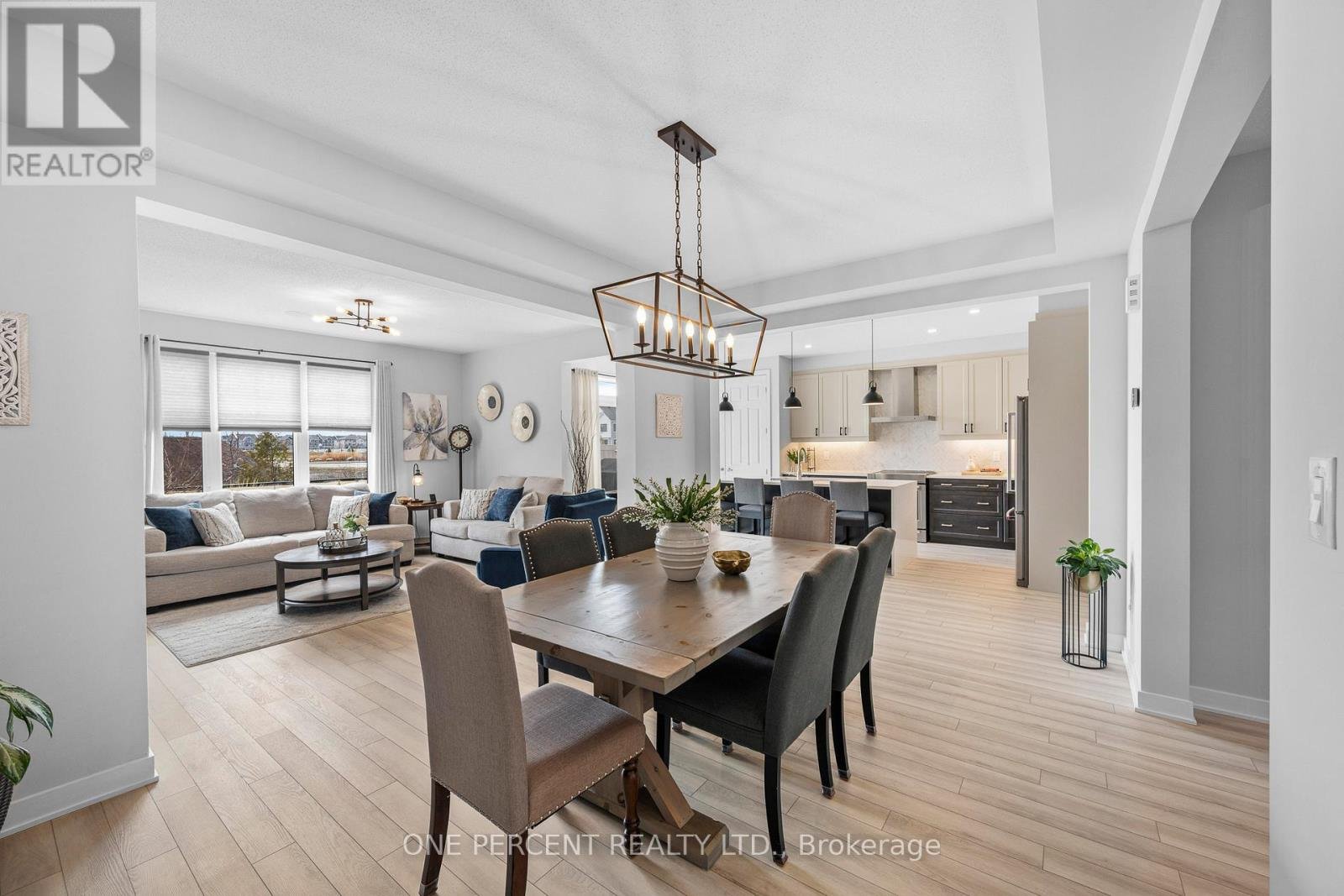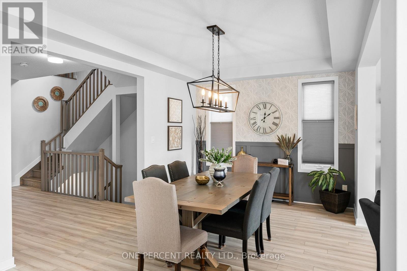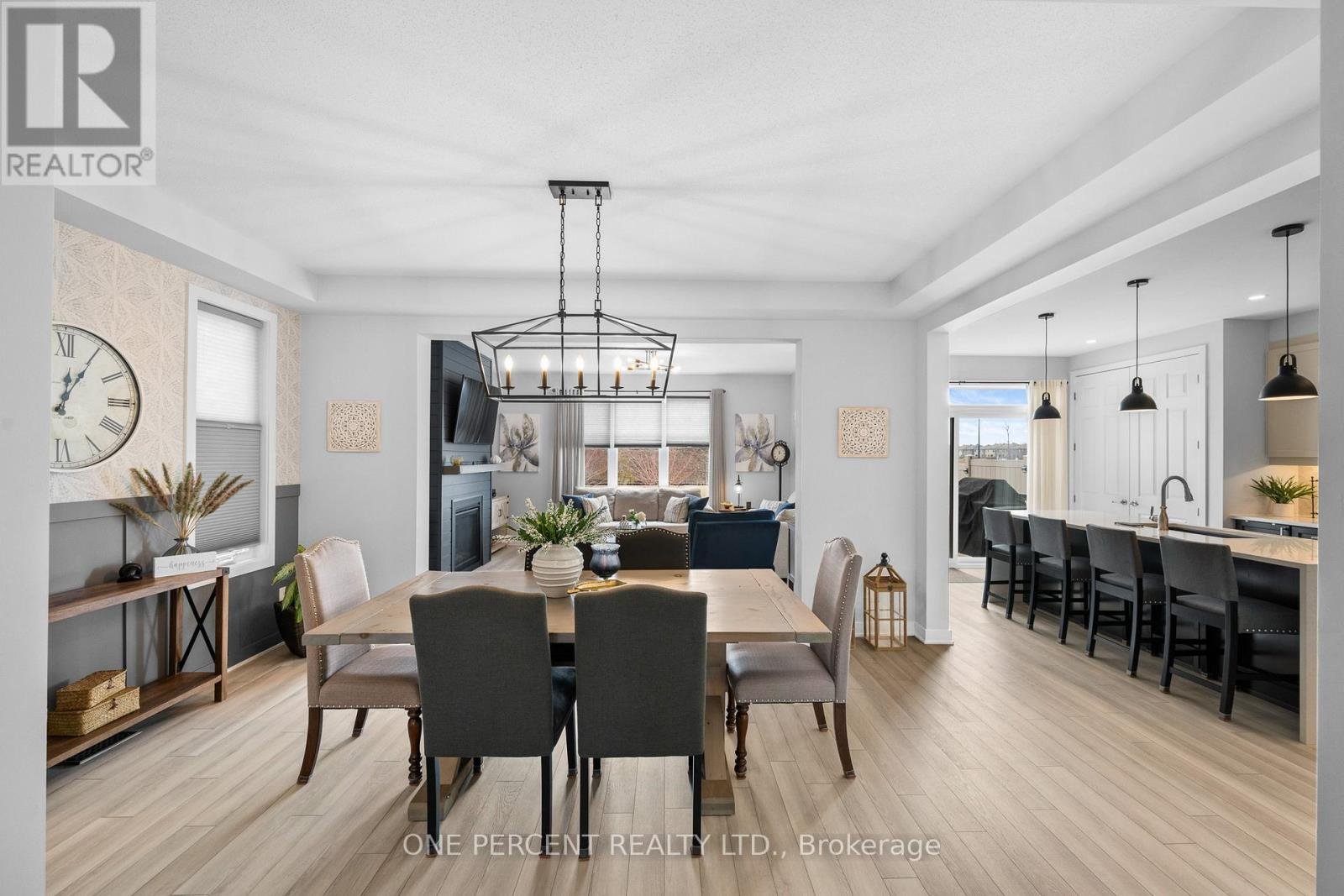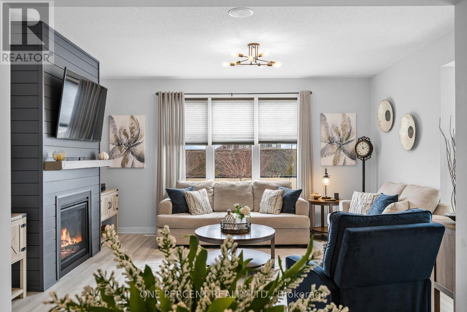 Finished like a showhome on a premium ravine lot with no rear neighbours, this Mattamy Sycamore delivers over 2,400 sq. ft. of above-grade living where no detail was overlooked. For families who want a home that turns heads and functions effortlessly, this one delivers: an open-concept layout, beautiful finishes, and the kind of style most people only see in magazines. The main floor flows naturally from a spacious dining room into a cozy living room with a stylish shiplap fireplace, abundant natural light, and in-ceiling speakers. The kitchen is a true focal point, built for those who value beauty as much as function: two-tone cabinetry, a waterfall island with a black granite sink and seating for four, a herringbone tile backsplash, quartz countertops, stainless steel appliances including an induction cooktop, and a double-door pantry. Oversized patio doors extend the space outdoors to a private, landscaped, fully fenced yard with a large interlock patio and gas BBQ hookup, made for entertaining. A vaulted loft with a built-in den gives the upper level a sense of space most homes this size simply don't have. The primary suite is a true retreat, with an oversized walk-in closet and a spa-inspired four-piece ensuite featuring double undermount sinks, quartz countertops, and a glass-enclosed shower. Two additional bedrooms, a well-appointed four-piece main bath, and an upper-level laundry room complete the floor. The fully finished basement extends the living space with a large rec room, a dedicated gym, a roughed-in bath, and plenty of storage. Set in Fox Run, just steps from the park, minutes to the golf course, groceries, and shops, and only a short drive to the new DND complex, this home offers Richmond's small-town charm with more everyday convenience than most buyers expect. Check out the virtual tour and book your private showing today.