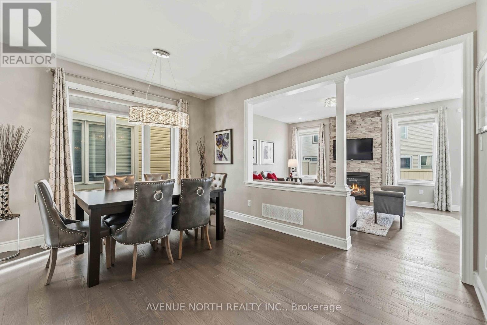 Welcome to this beautifully upgraded and well-maintained family home offering a perfect blend of style, functionality, and modern comfort. With great curb appeal, a double-car garage, and a thoughtfully designed layout, this home is move-in ready. Step inside to a bright and inviting foyer featuring a striking curved staircase and 9-foot ceilings on the main level. The open-concept layout showcases hardwood flooring and well-defined living spaces, including a formal dining area and a comfortable living room highlighted by a custom stone feature wall and cozy gas fireplace. Large windows throughout bring in an abundance of natural light. The kitchen is both stylish and functional, featuring white cabinetry, quartz countertops, stainless steel appliances, a modern backsplash, and a centre island with seating-ideal for everyday living and entertaining. The adjacent breakfast area overlooks the backyard. Upstairs, you'll find four bedrooms plus a versatile playroom, offering flexible space for family living, a media area, or a kids' zone. The primary bedroom provides a comfortable retreat, while the bathrooms are thoughtfully designed with quartz countertops and double vanities, offering both style and convenience. The main floor also includes a private office, perfect for working from home or quiet study. The unfinished basement offers excellent potential to customize additional living space to suit your needs. Located in a desirable, family-friendly neighborhood close to schools, parks, and amenities, this home offers a great balance of space, upgrades, and everyday practicality.