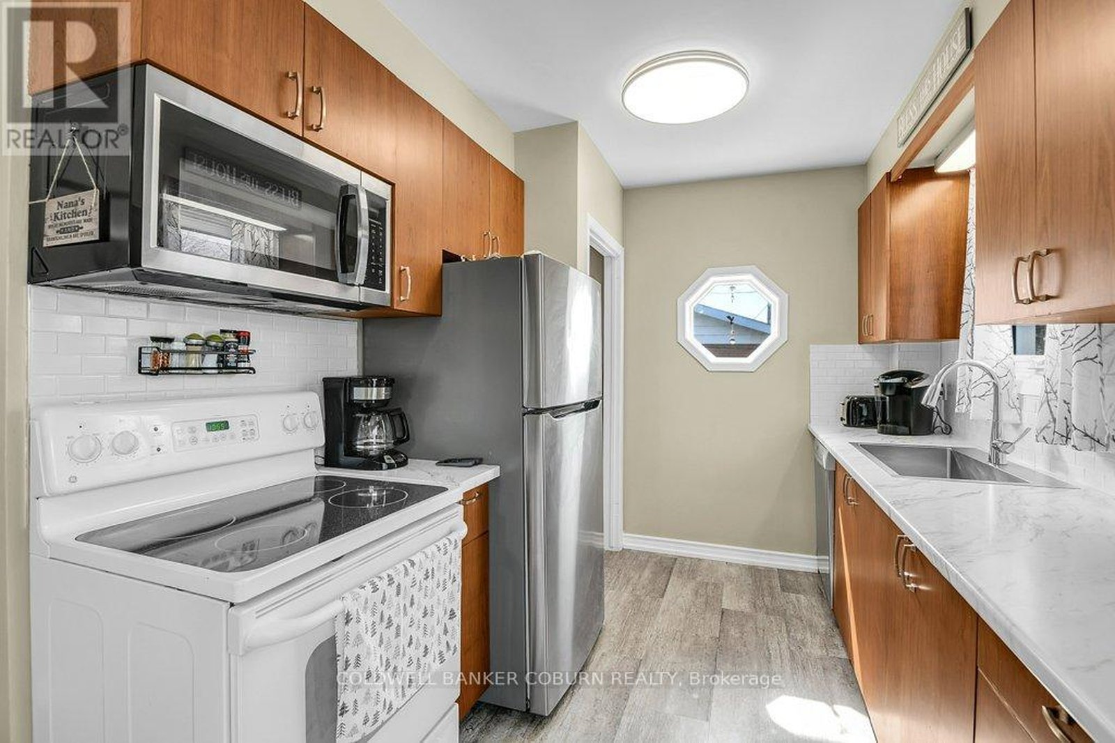 WELL-MAINTAINED ALL-BRICK BUNGALOW IN THE HEART OF MORRISBURG - This charming three-bedroom, two-bathroom bungalow is ideally located in the historic Seaway village of Morrisburg, just a short walk (approximately 500 yards) from the beautiful St. Lawrence River. Thoughtfully updated and move-in ready, the home features numerous recent upgrades, including a sewer lateral (2018), new main floor flooring (2022), and extensive 2024 improvements such as new windows, front door, metal roof, kitchen cabinets, dishwasher, and over-the-range microwave. A new furnace installed in 2025 adds further comfort and efficiency. Enjoy outdoor living on the spacious deck overlooking the garden-perfect for relaxing or entertaining. The property also offers abundant parking and an oversized single-car garage, ideal for vehicles, storage, or hobbies. Conveniently situated within easy walking or cycling distance to the St. Lawrence River, shopping, banks, restaurants, parks, a swimming beach, medical and dental clinics, golf, curling rink, arena, library, and the Upper Canada Playhouse. Experience the best of small-town living in this vibrant waterfront community, known for its friendly atmosphere, scenic surroundings, and relaxed pace-an exceptional place to call home. A virtual tour, additional interior photographs, aerial drone imagery, and detailed floor plans are available online.