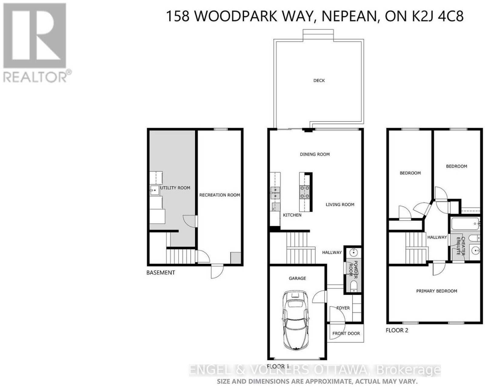 Sitting on a quiet street in the heart of Barrhaven, this beautifully maintained home is ready to welcome your family. Bright and thoughtfully designed, the main level features an open-concept living and dining area with an airy layout that makes everyday living and entertaining effortless. A convenient powder room adds function, while the spacious kitchen offers generous counter space, ample cabinetry and a seamless walk-out to the back deck. With no rear neighbours, the private and fully fenced backyard is ideal for summer barbecues, playtime with kids or pets, or simply relaxing outdoors.Upstairs, discover three bright bedrooms, including a generous primary suite with a cheater ensuite. The finished basement expands your living space with a sweeping recroom that can easily transform into a playroom, home office or movie room. Perfectly situated near parks, playgrounds, quality schools and all of Barrhaven's amenities, 158 Woodpark Way offers exceptional value and a true sense of community. Whether you're a growing family or a first-time buyer, this inviting home delivers a family-friendly setting with the convenience of shops, transit and everyday essentials just moments away.