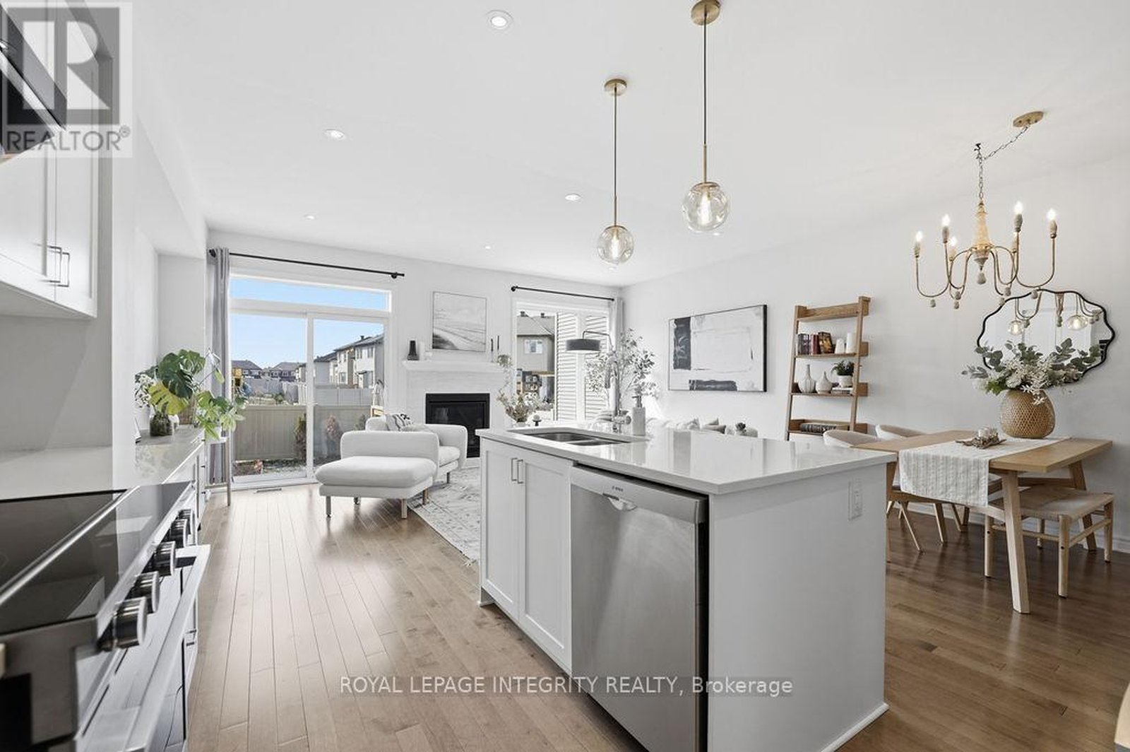 Experience modern luxury in the heart of Riverside South with this impeccably designed Richcraft Grafton home. A masterclass in contemporary open-concept architecture, this residence offers a seamless blend of sophistication and ease. The interior radiates a remarkably bright and airy ambiance, courtesy of its south-facing orientation and oversized windows that flood the living spaces with natural light year-round. Premium hardwoods grace the main floor, leading you to the heart of the home: a chefs kitchen where high-end aesthetics meet daily functionality, it boasts premium SS appliances including expansive hood fan, a hidden walk-in pantry, stunning quartz countertops, and an abundance of cabinetry. The central island, illuminated by elegant gold globe pendants, serves as the perfect hub for culinary creativity, evening appetizers, or morning coffee. This space flows effortlessly into a grand living area anchored by a chic tiled accent fireplace and a dedicated dining zone featuring a designer retro chandelier-providing the perfect backdrop for both quiet relaxation and formal hosting. The upper level is equally impressive, featuring an expansive primary suite complete with a spa-like ensuite bath. Two additional generous bedrooms share a main bathroom, while the second-floor laundry adds practicality to daily life. The living space extends further into a large, sun-drenched finished basement, offering a versatile layout perfect for a home office, personal gym, or media room. Outside, the private South-facing backyard is a rare gem. It features a spacious deck, an interlocking patio, and the premium luxury of No Direct Rear Neighbors --an idyllic setting for upscale entertaining and peaceful summer nights. Perfectly situated just minutes from the Stage 2 LRT, brand-new elementary schools, Riverside South Secondary, lush community parks, and diverse shopping, this home balances high-end finishes with an unbeatable location for those seeking style and convenience.