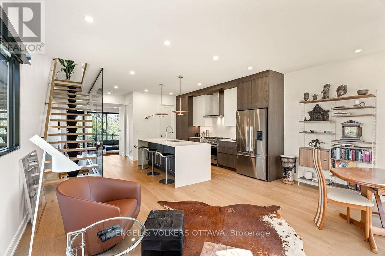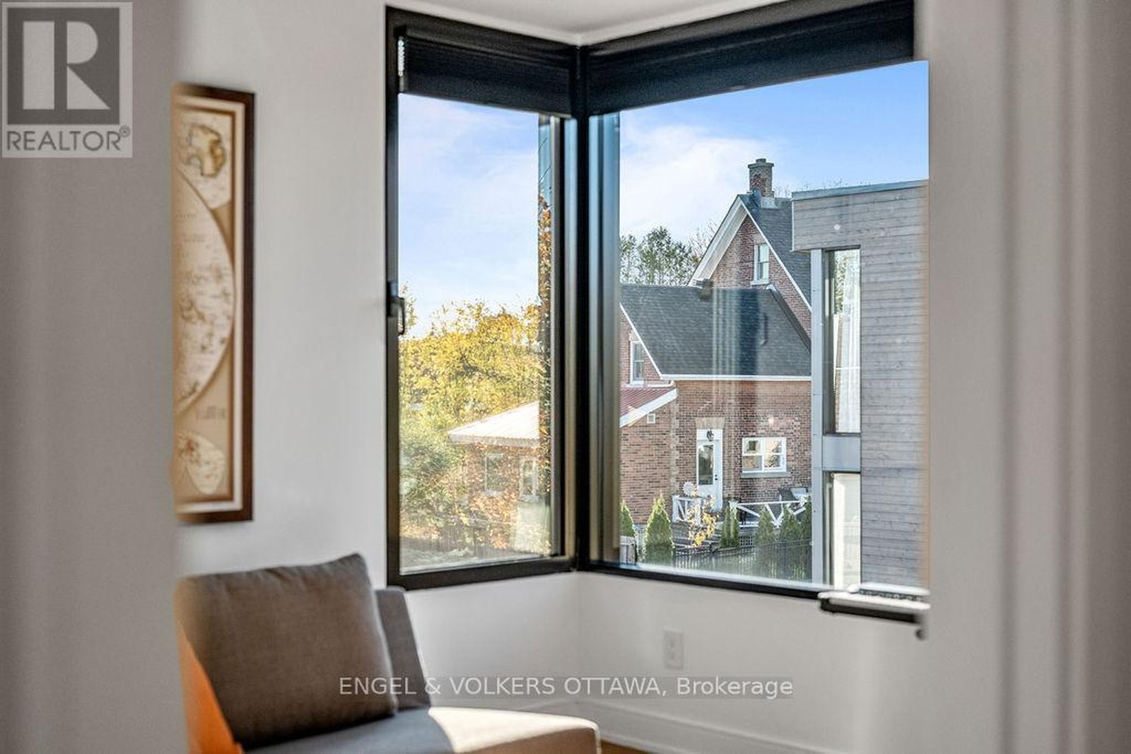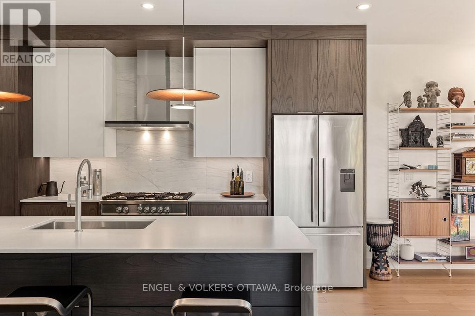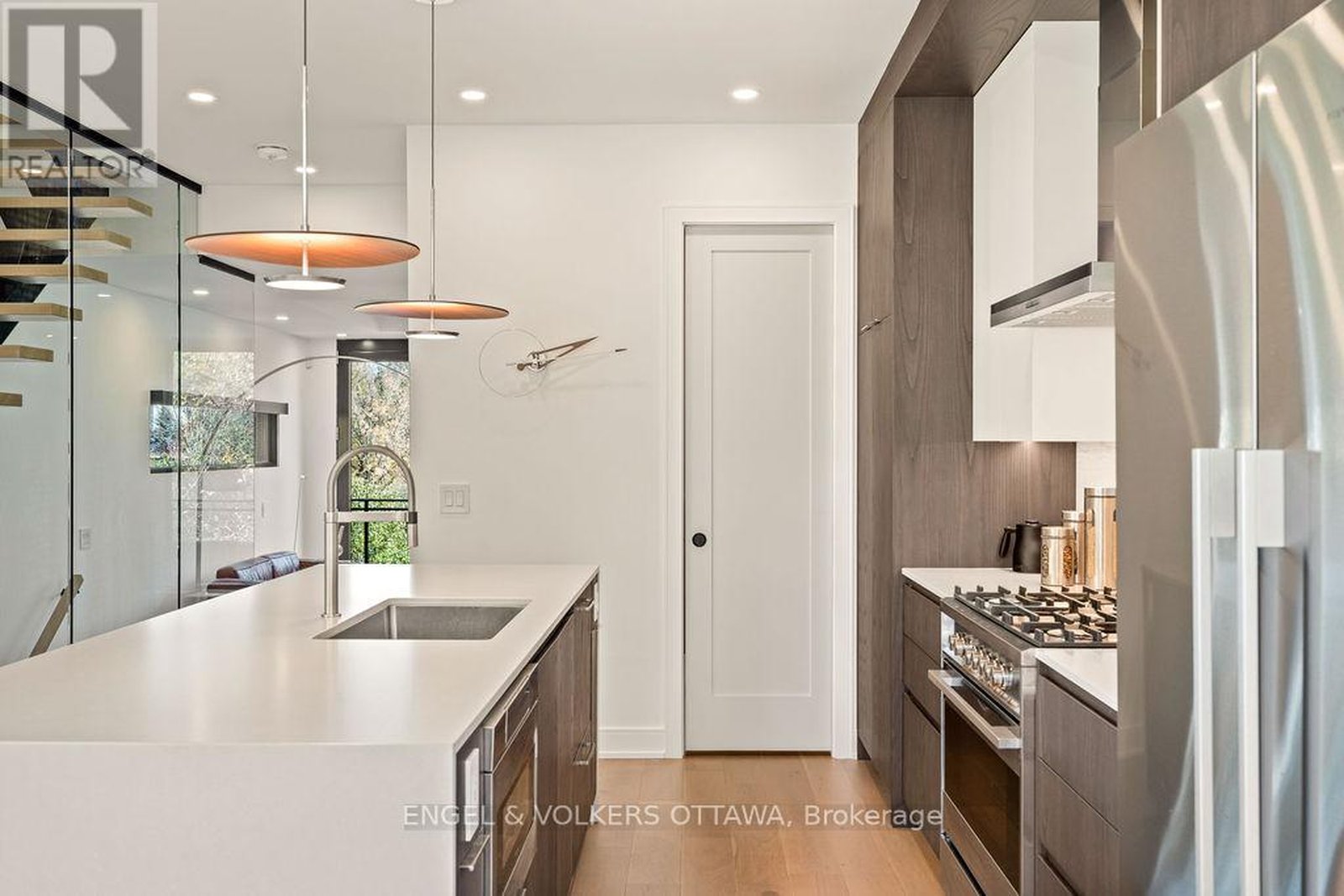 Welcome home to this excquisite residence in a private enclave of just seven luxury homes, moments to Dow's Lake, Little Italy, Civic Hospital and CarletonU. The only home in the community featuring an extended private driveway and back deck, as well as incredible additional custom windows offering rare, unobstructed views of the Experimental Farm and the Rideau Canal. Winner of a GOHBA award for interior design, this 3-bedroom, 4-bathroom home showcases over 2,400 sq. ft. of thoughtfully curated living space. The main level is perfect for entertaining in style, featuring a chef's kitchen with a waterfall quartz island, custom cabinetry, gas range, walk-in pantry with sink, and designer finishes. Two elegant living areas with upgraded gas fireplaces and a sleek powder room complete the space. Amazing views from every room and private balcony off the back living room with a natural gas BBQ hook-up. Upstairs, the serene primary suite impresses with expansive windows and a spa-inspired ensuite with a soaker tub, expanded two-person glass shower, double vanity, and bidet. Two additional bedrooms, a full bath, and a laundry closet with a sink and custom cabinetry provide flexibility for guests or a home office. Ground level features a spacious foyer and a versatile area currently used as a gym, easily adaptable as a family room or office, along with a convenient powder room. Upgraded stringer staircase with open glass panels adds a striking architectural element while preserving the home's airy, contemporary feel. An extended lower back deck provides direct access to a beautifully landscaped backyard - offering a peaceful retreat surrounded by nature. Visit the website for full list of upgrades. Monthly association fee of $403 covers snow removal, maintenance and repairs of the private road.