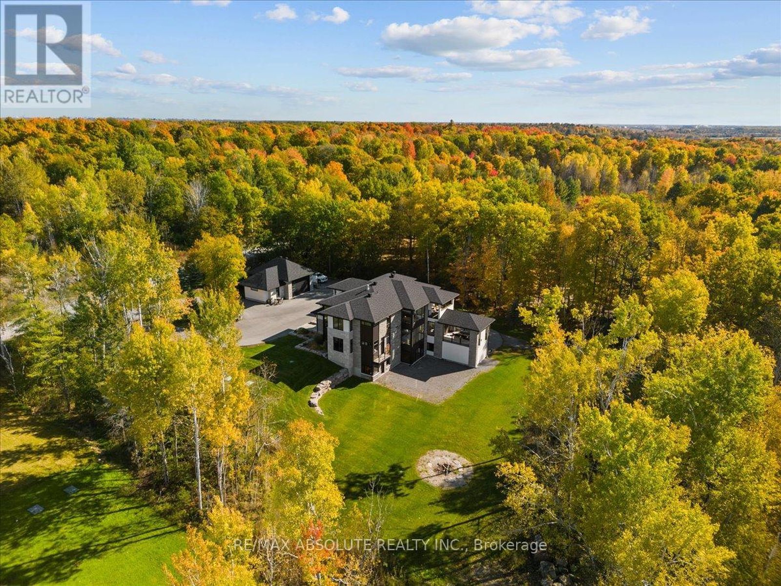 BREATHTAKING private family retreat awaits! This is the ideal urban escape situated on over 2 acres in one of Ottawa's most beautiful estate communities! The circular PAVED driveway guides you towards a residence that demands attention! Strategically situated, professional landscaped, stone & stucco surround PLUS the gorgeous mature trees provide a memorable first tranquil impression! In floor heat can be found in the separate garage- an enthusiasts dream! Spanning approximately 7000 square feet of finished space, this home represents the pinnacle of modern luxury! The thoughtful floor plan offers meticulous craftsmanship, floor to ceiling windows, a 2 story GREAT room, 10 foot ceilings on the main & 9 on the upper & lower level & 8"oak hardwood. The Deslaurier kitchen was designed for both style & function, it offers TOP of the line Chef's appliances, everything on your DREAM WISH list & more INCLUDING the most amazing walk in pantry you have seen! The oversized patio doors allow for seamless indoor/outdoor living & guide you to the AMAZING outdoor living area! The 2 sided fireplace allows dining to become an experience in the formal dining room! PLENTY of enviable designs throughout including the mudroom & laundry room (2 washer & 2 dryers)! This home offers 2 primaries- 1 on the main & one of the 2nd! 5 bedrooms, 4 ensuites PLUS 2 powder rooms & a MAIN floor office! The glass used within the home enhances the feeling of spaciousness throughout especially on the staircase & the landing! The 2nd floor primary retreat offers a fireplace, private balcony, INCREDIBLE walk in closet & a SUPER LUX 5 piece ensuite. ALL baths offer heated floors. The FULLY finished WALKOUT lower level is an absolute masterpiece with OVER 2000 SF of finished space, glass walls in the gym & the large open area is SURE to impress! 200 amp, 20Kw Generator, Top of the line water filtration system, auto lighting & window blind system controlled through the Lutron app. NO expense spared!