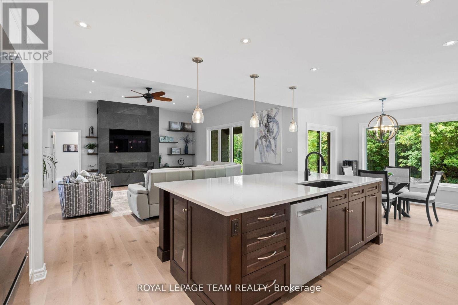 Start the car! This fully renovated executive bungalow, proudly offered by the original owner, is a rare opportunity in the prestigious community of Sunset Lakes in Greely. Featuring 3+2 bedrooms and 3.5 bathrooms, this home seamlessly blends luxury, comfort, and functionality. Stunning curb appeal welcomes you with new interlock stonework and a charming entrance. Inside, the great room impresses with a floor-to-ceiling slate fireplace, flowing effortlessly into the open-concept kitchen, complete with abundant cabinetry, double sink, large island, and cleverly designed hidden storage. Perfect for both entertaining and everyday living, the space extends into a formal dining area and bright breakfast nook. The main level offers three spacious bedrooms and beautifully redesigned bathrooms, including a primary suite with a spa-inspired ensuite and heated floors. The finished lower level delivers exceptional versatility with a large recreation room, gas fireplace, games area featuring a Brunswick pool table, and two generous bedrooms, one with its own ensuite. A sizable home gym (easily converted to a 6th bedroom, complete with a window) adds even more flexibility. Car enthusiasts will love the oversized garage with durable polyaspartic flooring, stronger than epoxy-and full slatwall organization. Outdoors, enjoy a covered composite deck, extended sun deck, Arctic Spa hot tub, and beautifully landscaped grounds with an underground sprinkler system. Living in Sunset Lakes means embracing a true lifestyle, with access to tennis courts, sandy beach, nature trails, playground, basketball court, water skiing, a saltwater pool, and scenic lakes. This is more than a home, it's your next chapter in a vibrant, active community. Don't miss your chance to experience the best of Greely living!