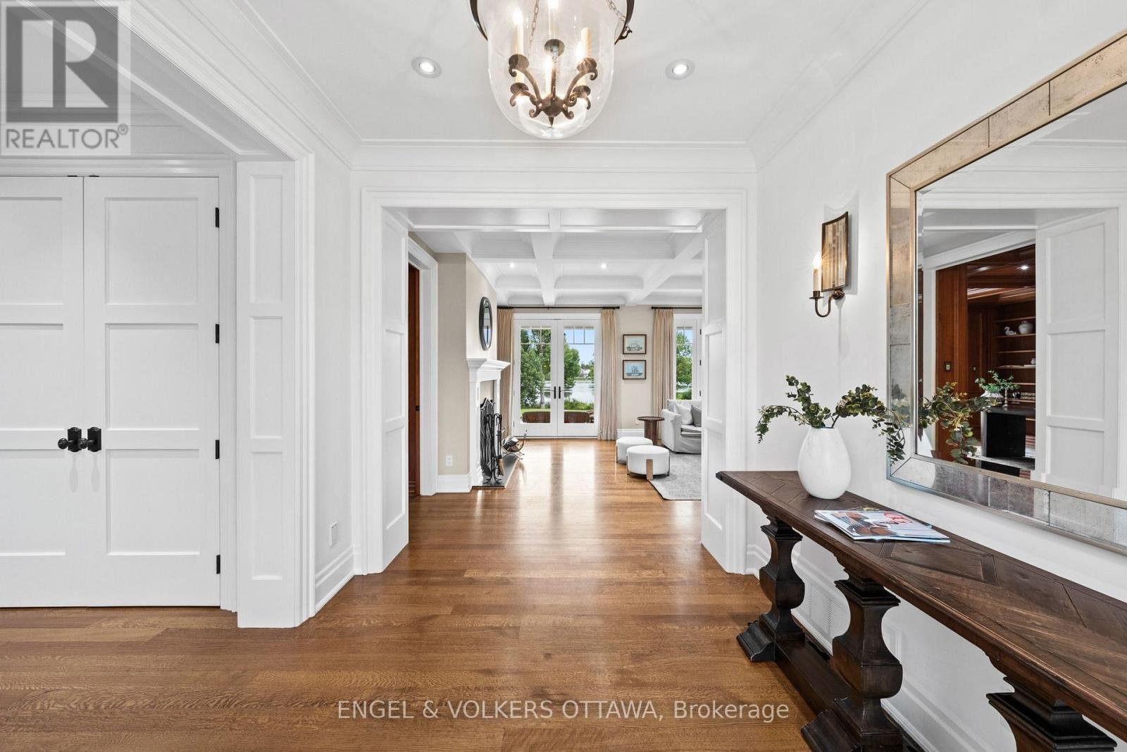 Designed by Jim Parsons and crafted by multi-award-winning Terra Nova, this Cape Cod-inspired residence captures the enduring elegance of the Hamptons. Nestled on 3.17 acres of meticulously landscaped grounds by Gerald Wheeler, the property offers direct Rideau River access, a private dock, and a resort-style in-ground pool, all just steps from the prestigious Rideau View Golf Club.Inside, exquisite craftsmanship is evident at every turn-from the custom Irpinia kitchen with marble countertops and full-height book-matched backsplash, to the Parliament-inspired office and a main-level primary suite designed for comfort and style. Featuring 4 bedrooms, 6 bathrooms, and sweeping panoramic river views, this home seamlessly blends architecture, landscape, and luxury into a cohesive legacy property.6029 Rideau Valley Dr. N is more than a home-, it's a refined residence where every detail has been perfected, offering a lifestyle of unmatched elegance and timeless appeal.