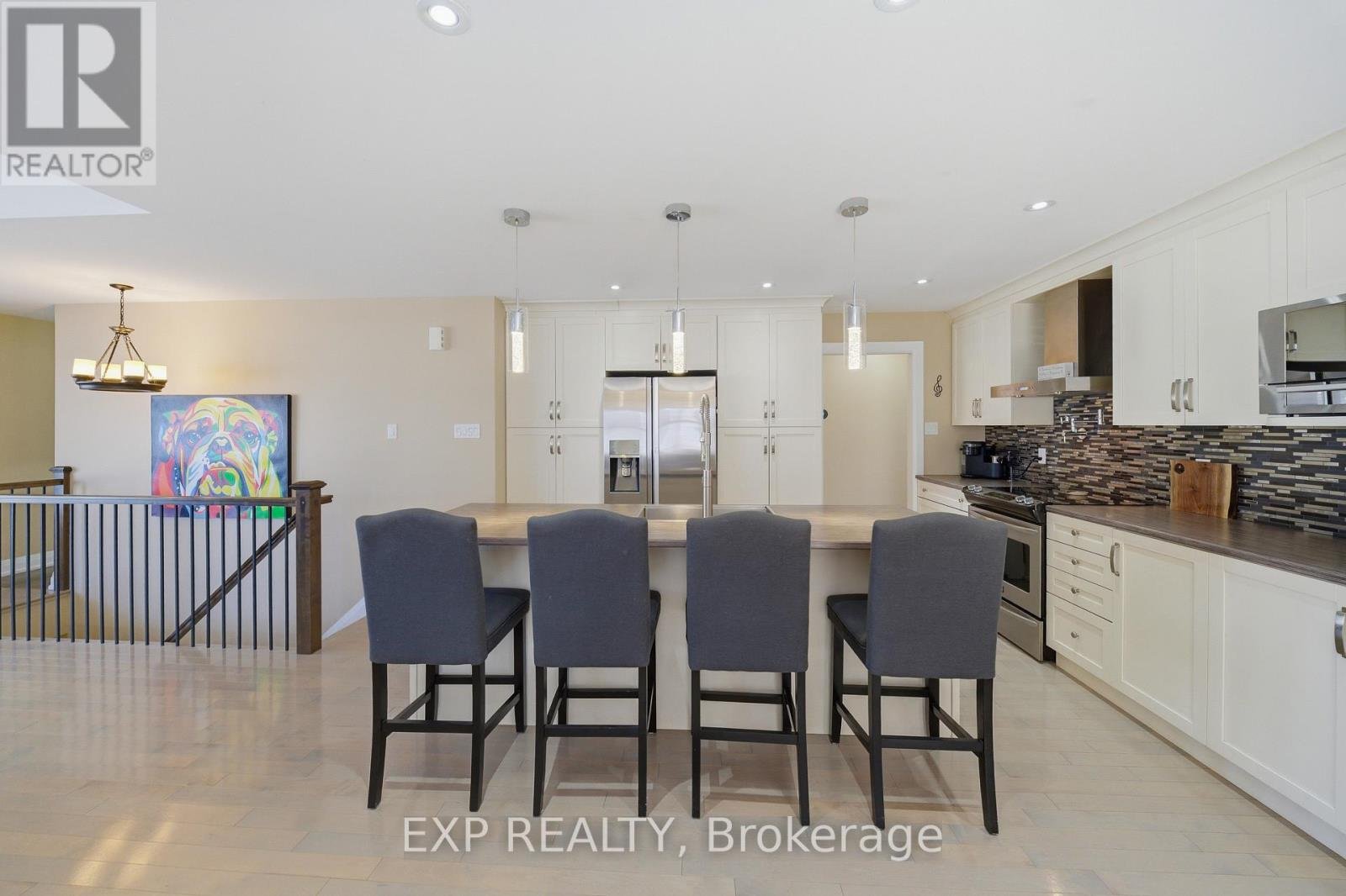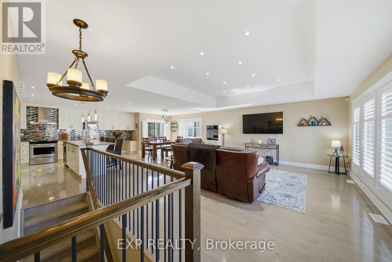 Whether you're upsizing or downsizing, 4 Provost offers the perfect balance of space.This beautifully maintained 5-bedroom, 4-bathroom bungalow is designed to adapt to any lifestyle. Step inside to a bright, functional layout featuring generous living and dining areas, enhanced by hardwood flooring, pot lights throughout, and custom-fitted blinds.The kitchen is both stylish and practical, complete with extended cabinetry, pot filler and stainless steel appliances - perfect for everyday living and entertaining.Tucked away for privacy, the main level offers three well-sized bedrooms and two full bathrooms, creating an ideal family-friendly layout.The fully finished lower level expands your living space with two additional bedrooms, two spacious recreation areas, and a 4-piece bathroom - perfect for extended family, guests, or multigenerational living.Enjoy year-round comfort and convenience with a double car heated garage with built-in shelving, along with the added peace of mind of a generator.Set on a rare pie-shaped lot, this home offers exceptional outdoor living with a finished deck, gazebo, landscaped backyard with fire pit, hot tub wiring (hot tub excluded) and a storage shed - perfect for relaxing or entertaining.