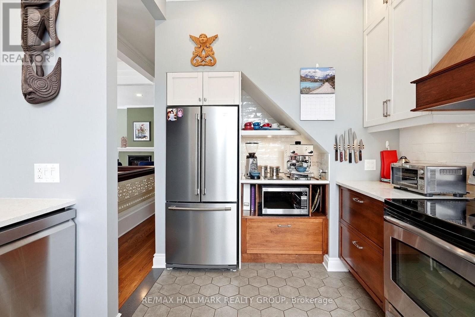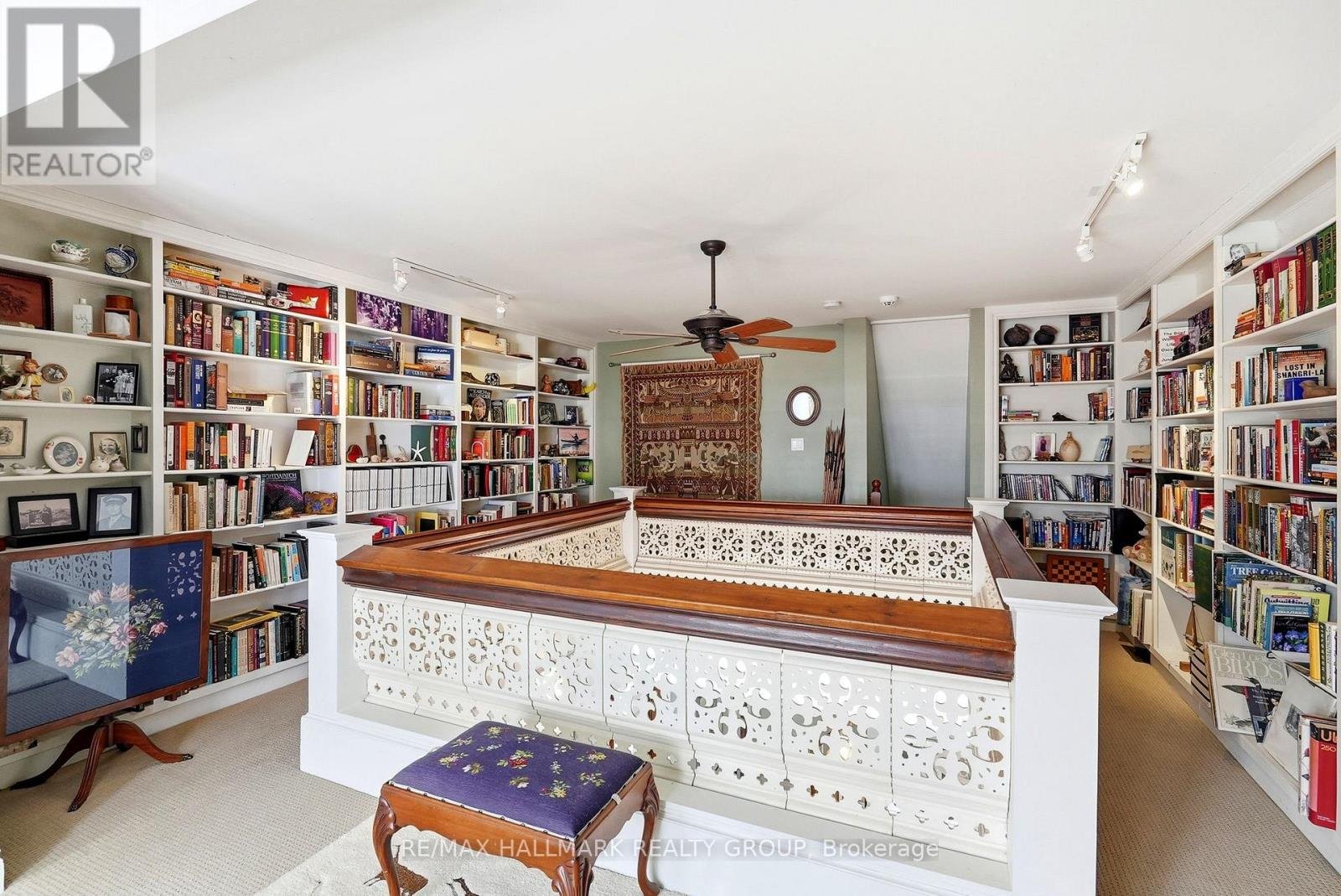One of the most unique homes in the city, offering spectacular views of Britannia Bay (aka Lac Deschenes) and the Ottawa River, with breathtaking sunsets enjoyed year-round. The open concept design is built around architectural elements, including cast iron panels and oak doors, bannisters and newel posts originally from St. Andrew's Church. Lovingly maintained by long-term owners, this exceptional residence blends modern comfort with timeless architectural character across four expansive levels designed for both everyday living and entertaining. The main level features well-appointed sleeping quarters including a spacious primary suite complete with a private ensuite and two walk-in closets, an additional bedroom, and a beautifully renovated full bathroom. The true highlight of the home is the open-concept second floor; an extraordinary space with 9+ ft ceilings, crown moldings, and stunning hardwood floors. Nearly floor-to-ceiling cedar-framed wraparound windows capture west, north, and east exposures, filling the home with natural light and showcasing the surrounding views. The custom-built kitchen offers quartz countertops, maple cabinetry, a diner-style bar, and stainless-steel appliances. A sitting area with a cast iron fireplace, versatile den or third bedroom, and powder room complete this level, while historic cast iron panels wrap around the stairwell, adding architectural charm. The third level library with rotunda provides a special retreat; ideal as a reading room, studio, or workspace. The fully finished basement includes a spacious recreation room, 3-piece bathroom, additional den, and laundry room, offering flexible living space for family or guests. An oversized garage with loft storage completes this remarkable home. Step outside to enjoy year-round recreation - run, hike, ski, or kitesurf - and walk to nearby amenities. A rare opportunity to own a one-of-a-kind property in an unbeatable waterfront setting. 12 hours irrevocable.